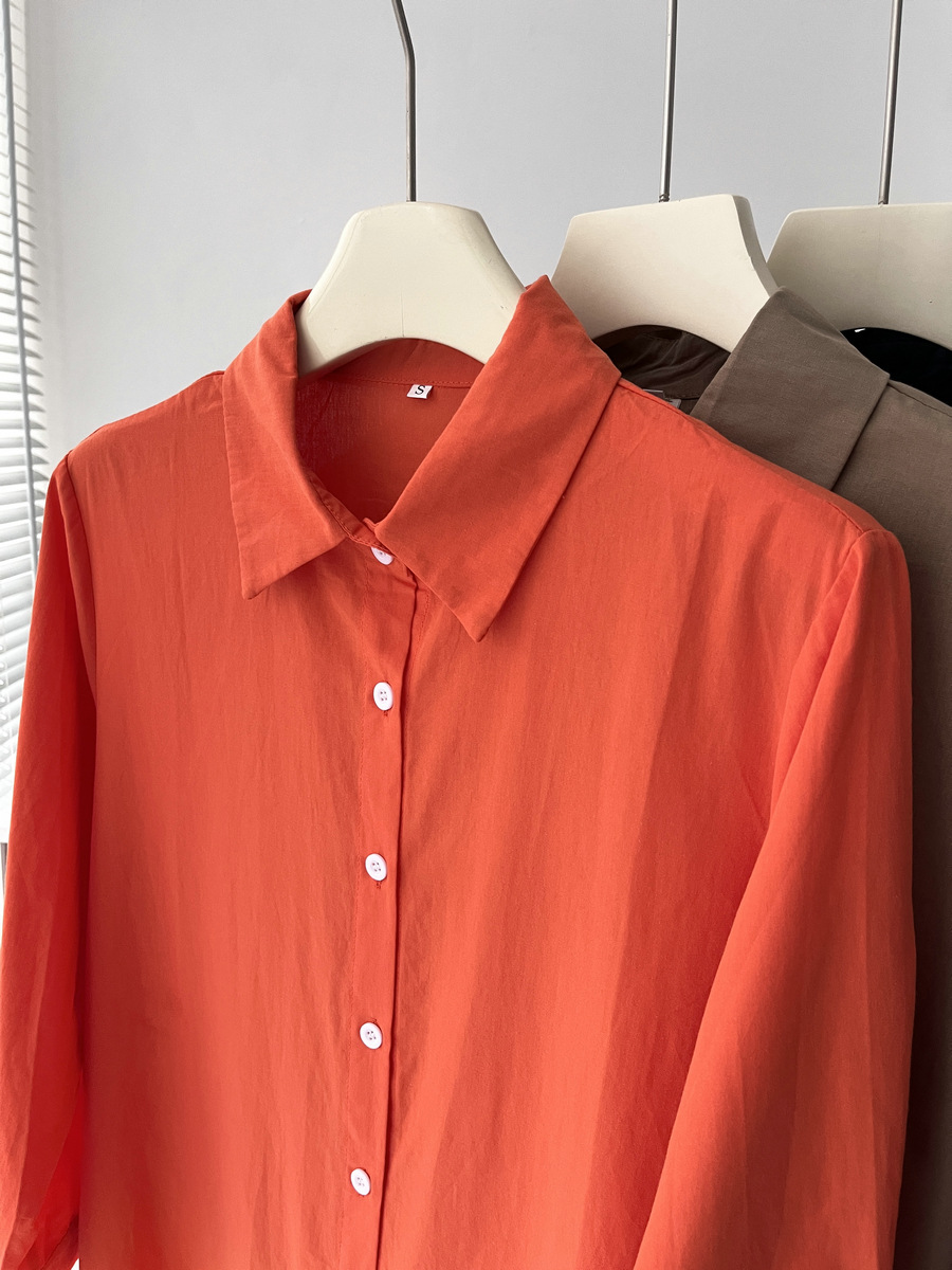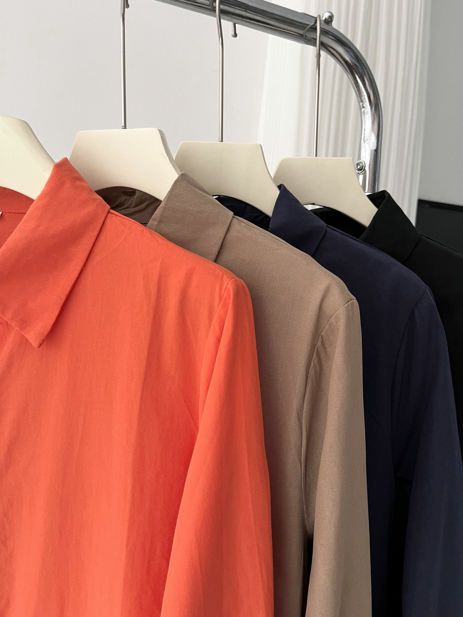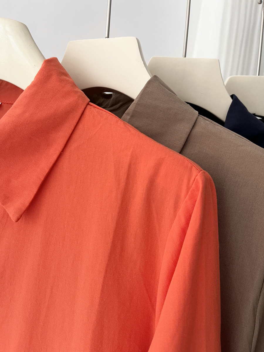 2024 봄, 가을 새로운 스타일 면 및 린넨 통근 스타일 솔리드 컬러 심플 라펠 긴팔 루즈 카디건 셔츠 드레스스토어 가기