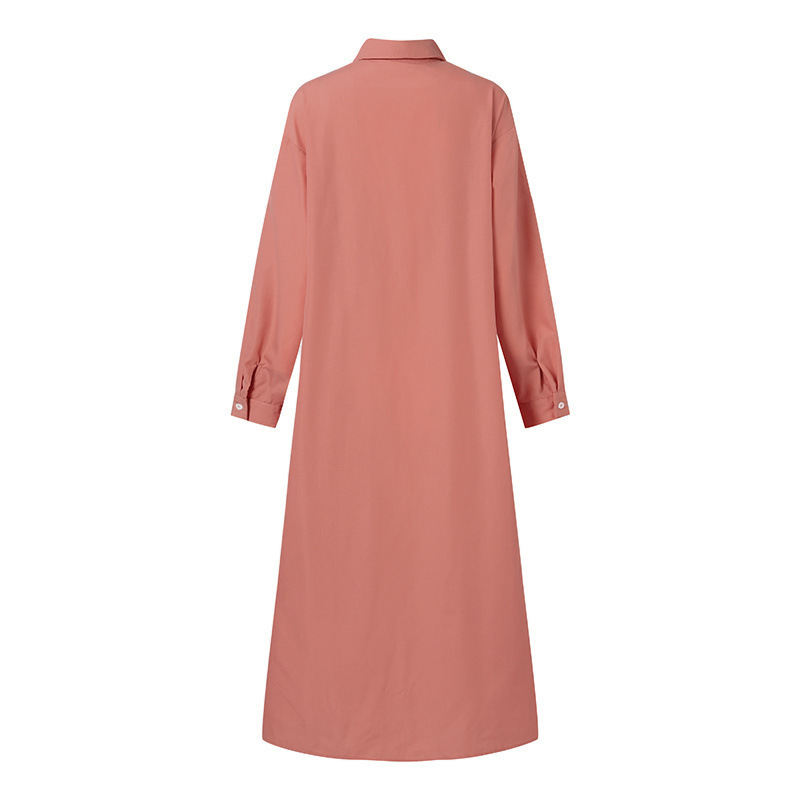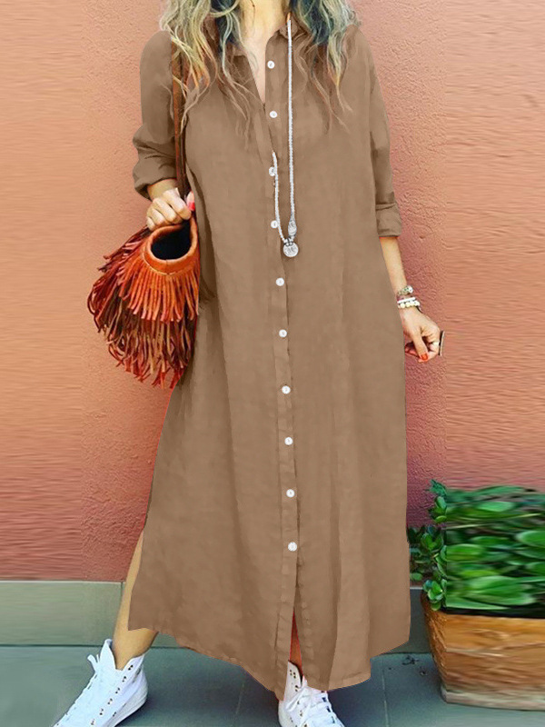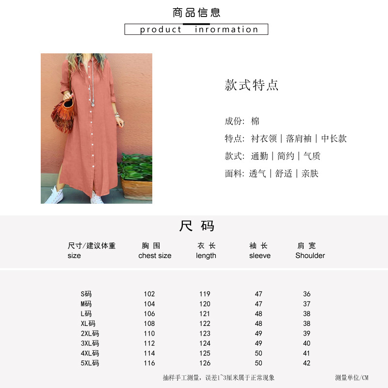 2024 봄, 가을 새로운 스타일 면 및 린넨 통근 스타일 솔리드 컬러 심플 라펠 긴팔 루즈 카디건 셔츠 드레스