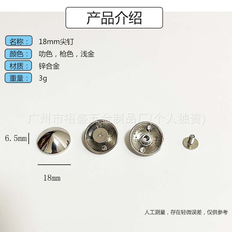 공장 직접 18mm 뾰족한 버섯 네일 수하물 하드웨어 의류 신발 금속 액세서리 원추형 뾰족한 손톱스토어 가기