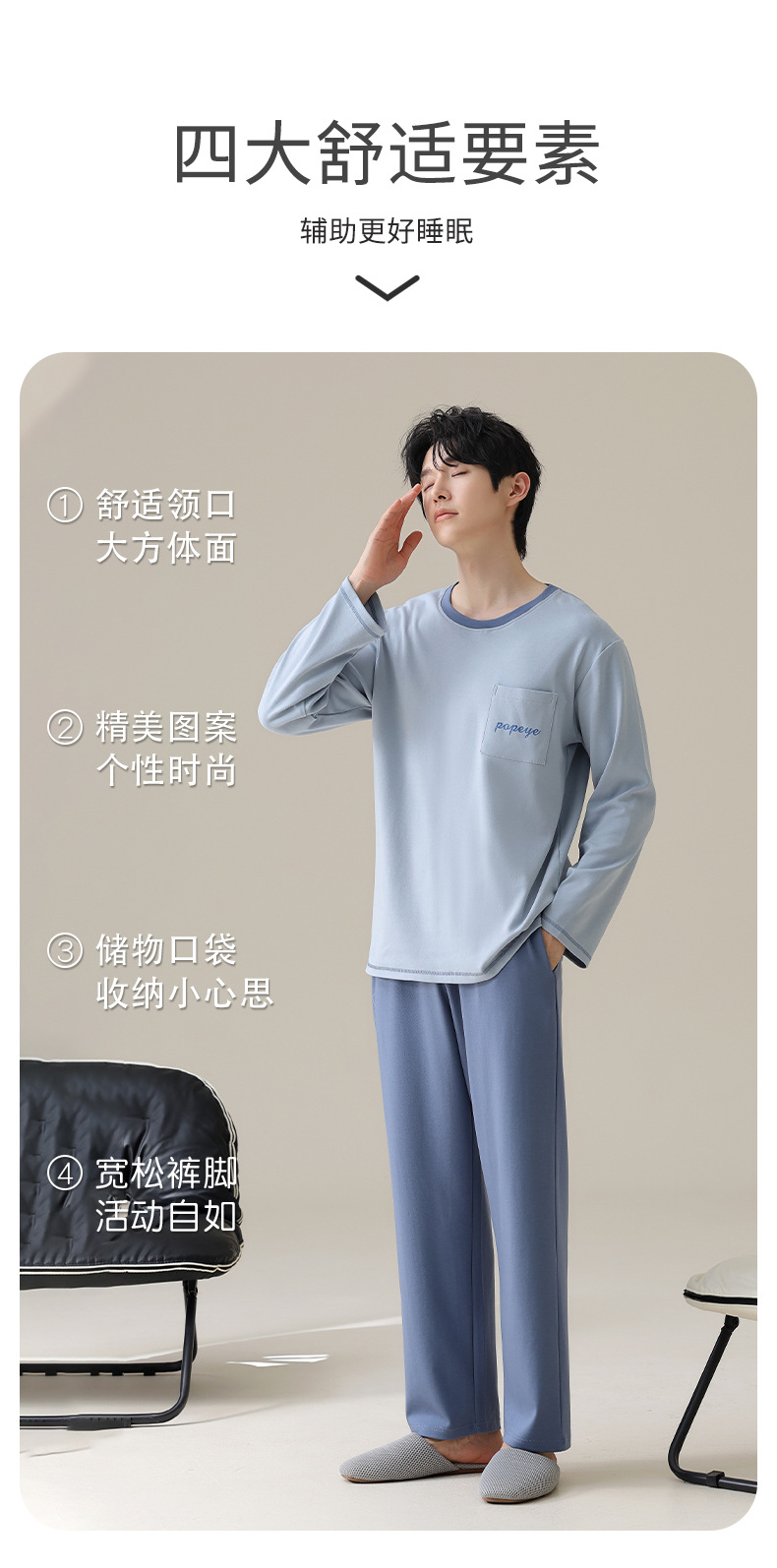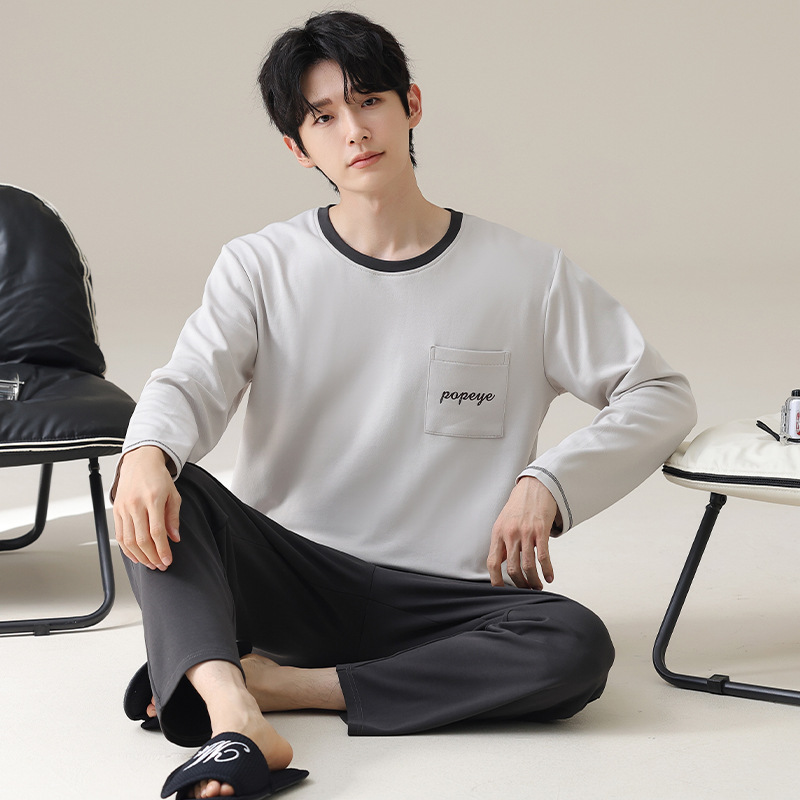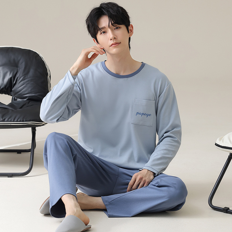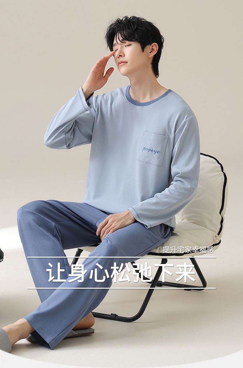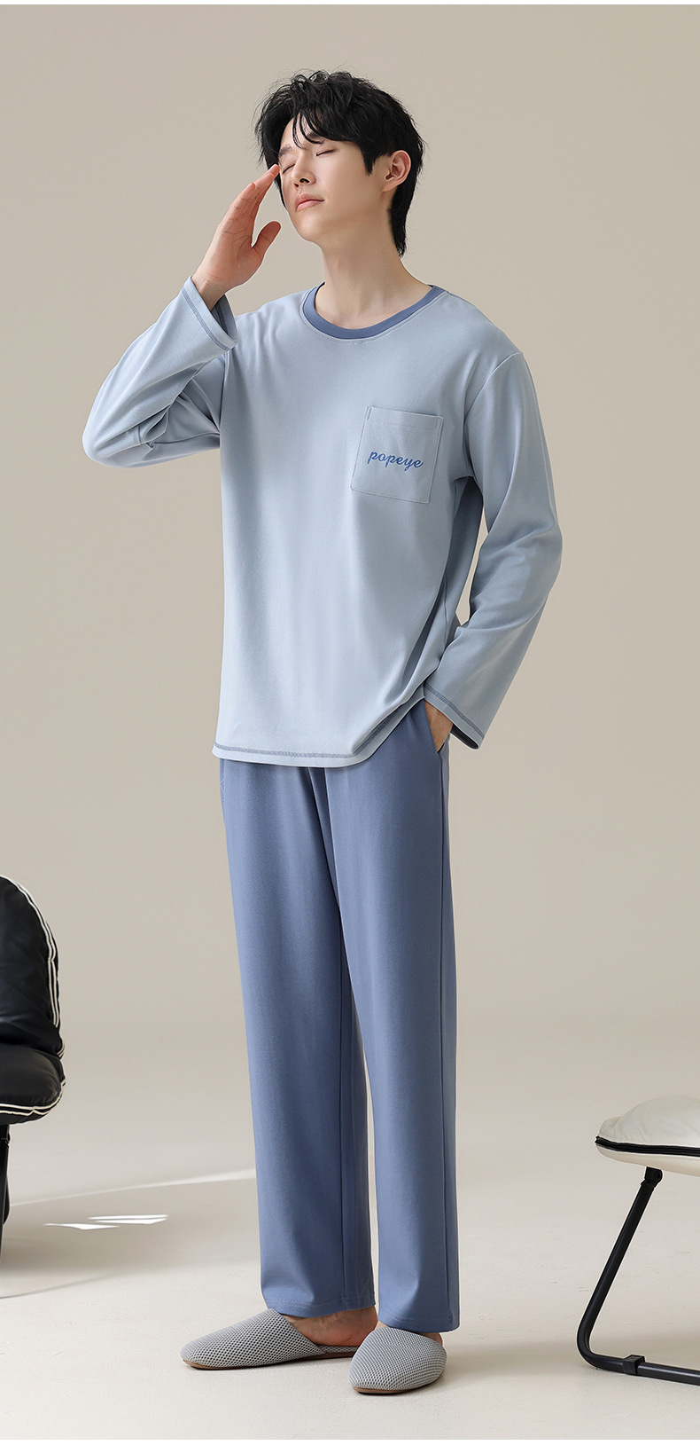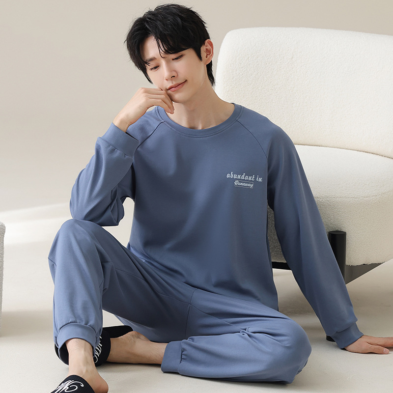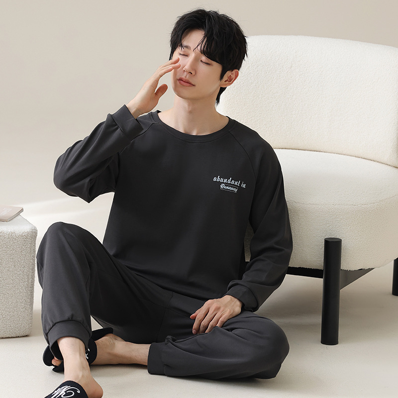 남성용 잠옷, 순면 긴팔 정장, 2025년 신상 남성용 루즈하고 편안한 풀오버 홈복, 야외에서 착용 가능스토어 가기