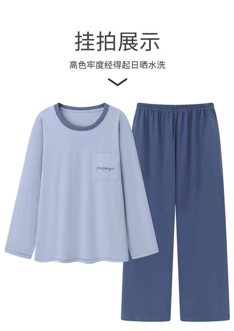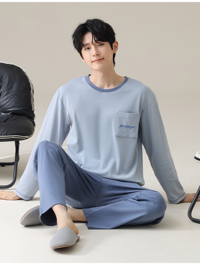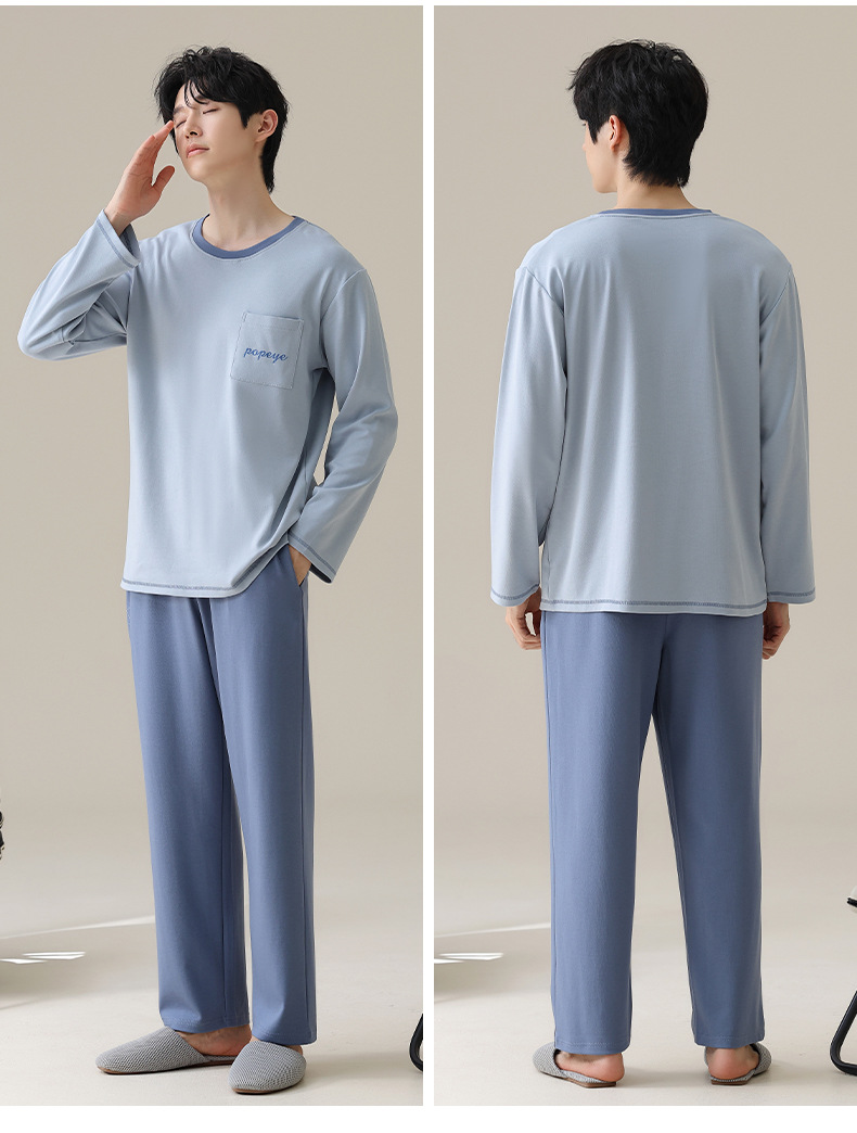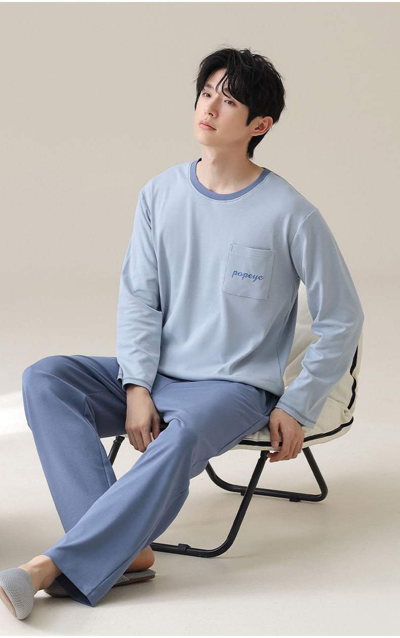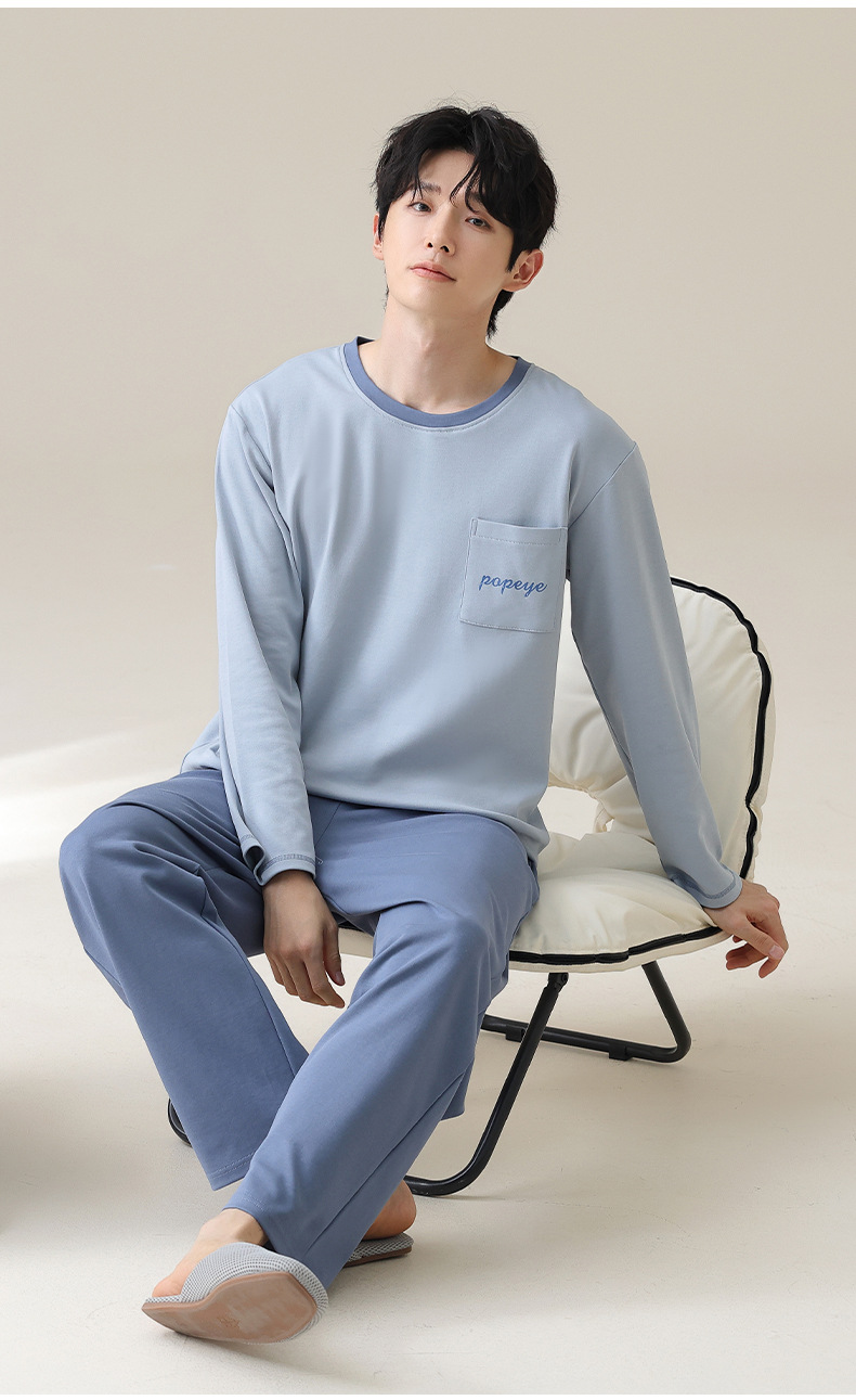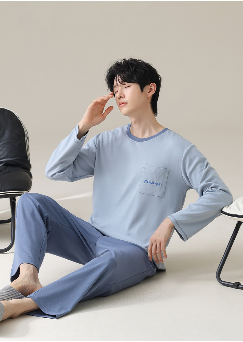 남성용 잠옷, 순면 긴팔 정장, 2025년 신상 남성용 루즈하고 편안한 풀오버 홈복, 야외에서 착용 가능스토어 가기