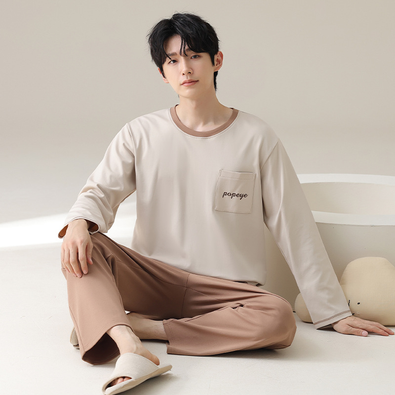 남성용 잠옷, 순면 긴팔 정장, 2025년 신상 남성용 루즈하고 편안한 풀오버 홈복, 야외에서 착용 가능