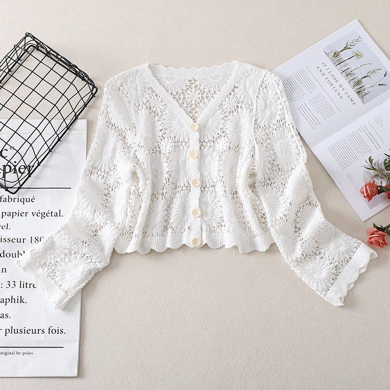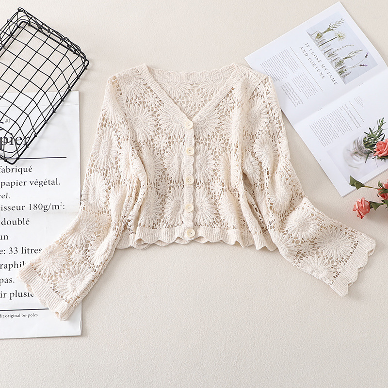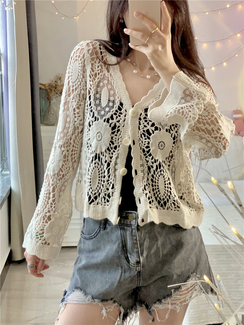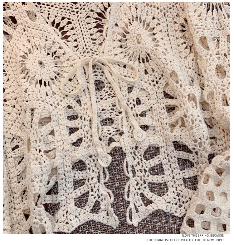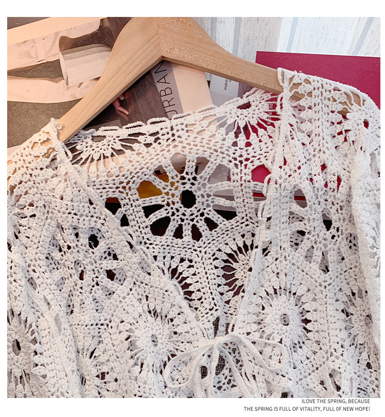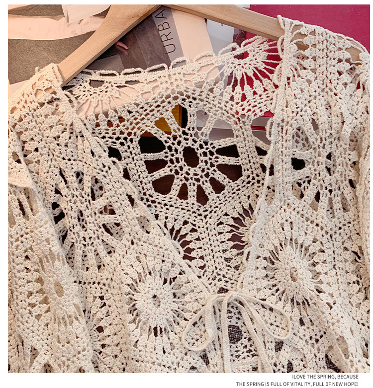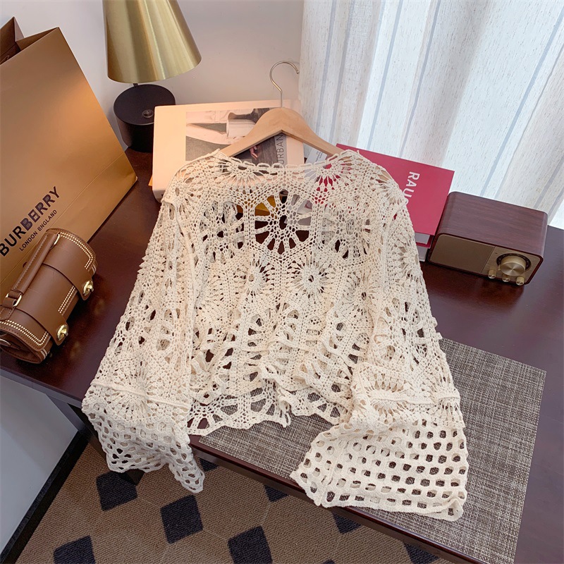 2025 여름 얇은 스웨터 여성 자수 중공 긴팔 비치웨어 여성 탑 재킷 외부 다용도스토어 가기