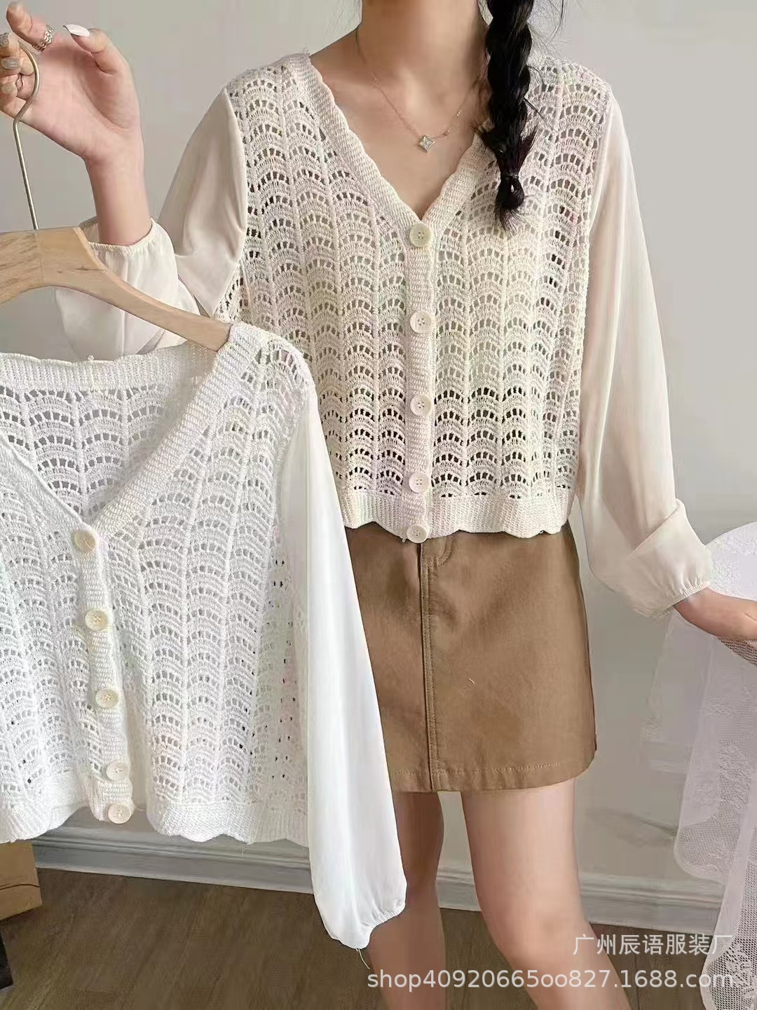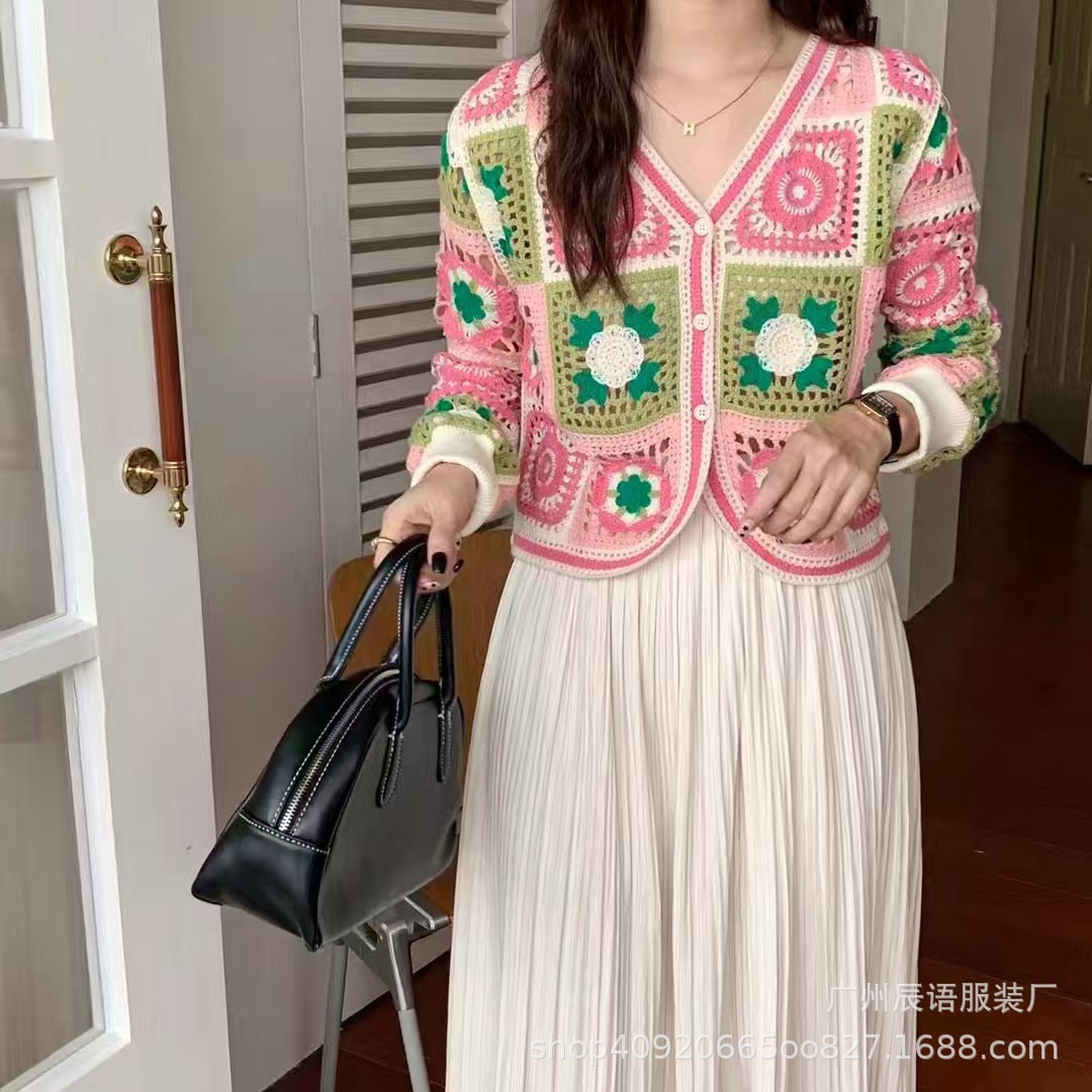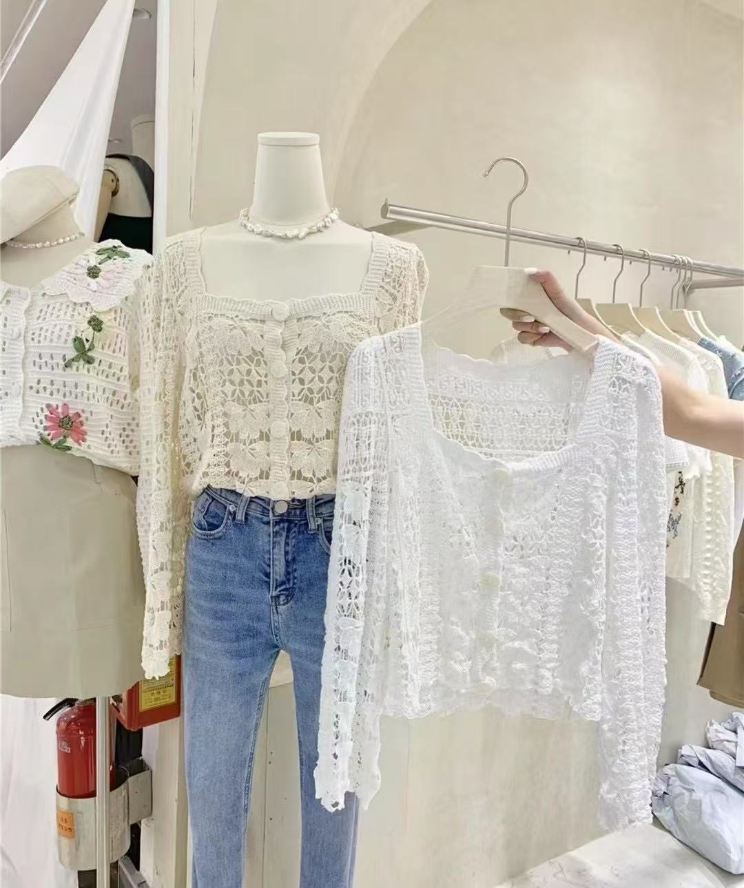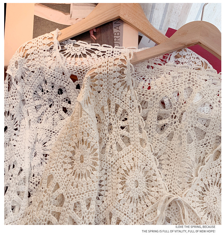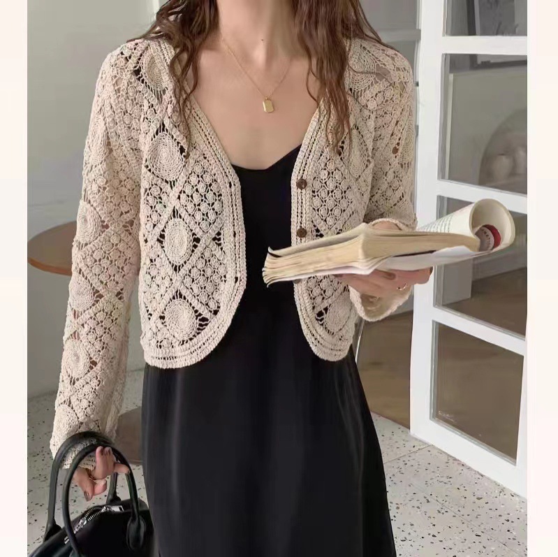 2025 여름 얇은 스웨터 여성 자수 중공 긴팔 비치웨어 여성 탑 재킷 외부 다용도스토어 가기
