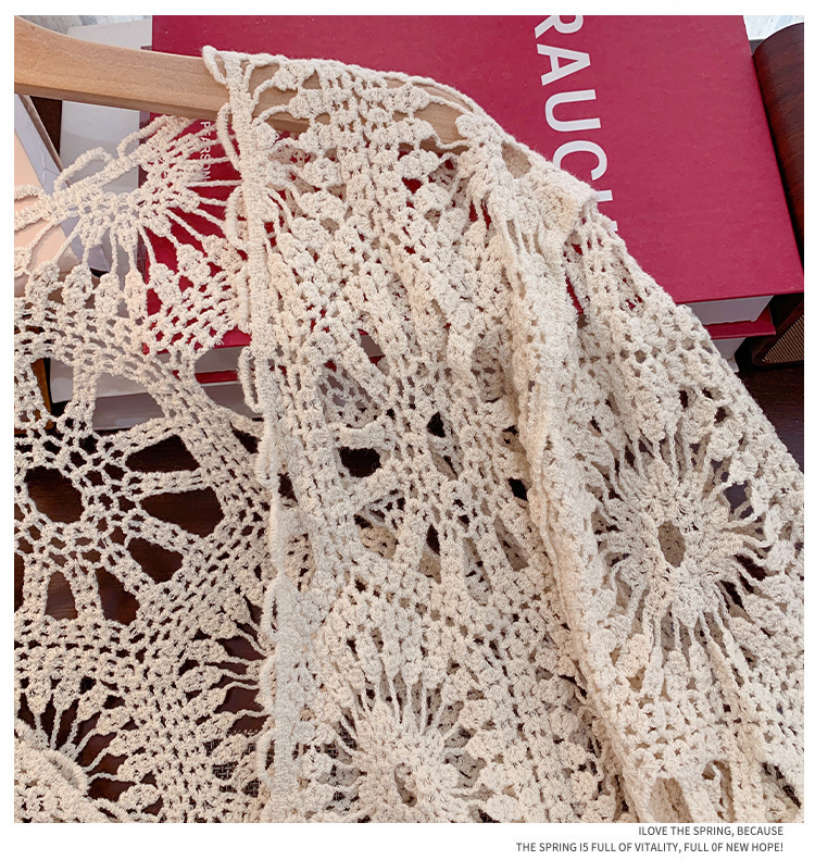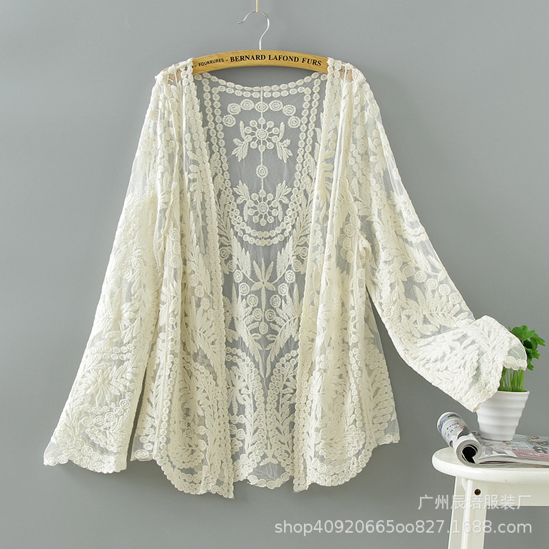 2025 여름 얇은 스웨터 여성 자수 중공 긴팔 비치웨어 여성 탑 재킷 외부 다용도