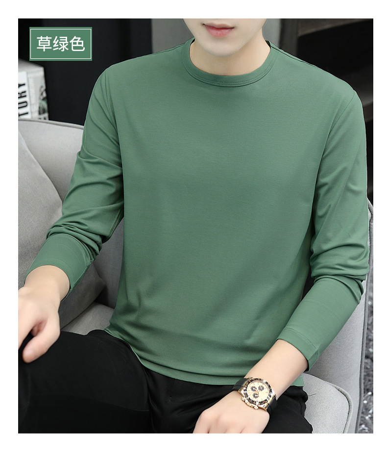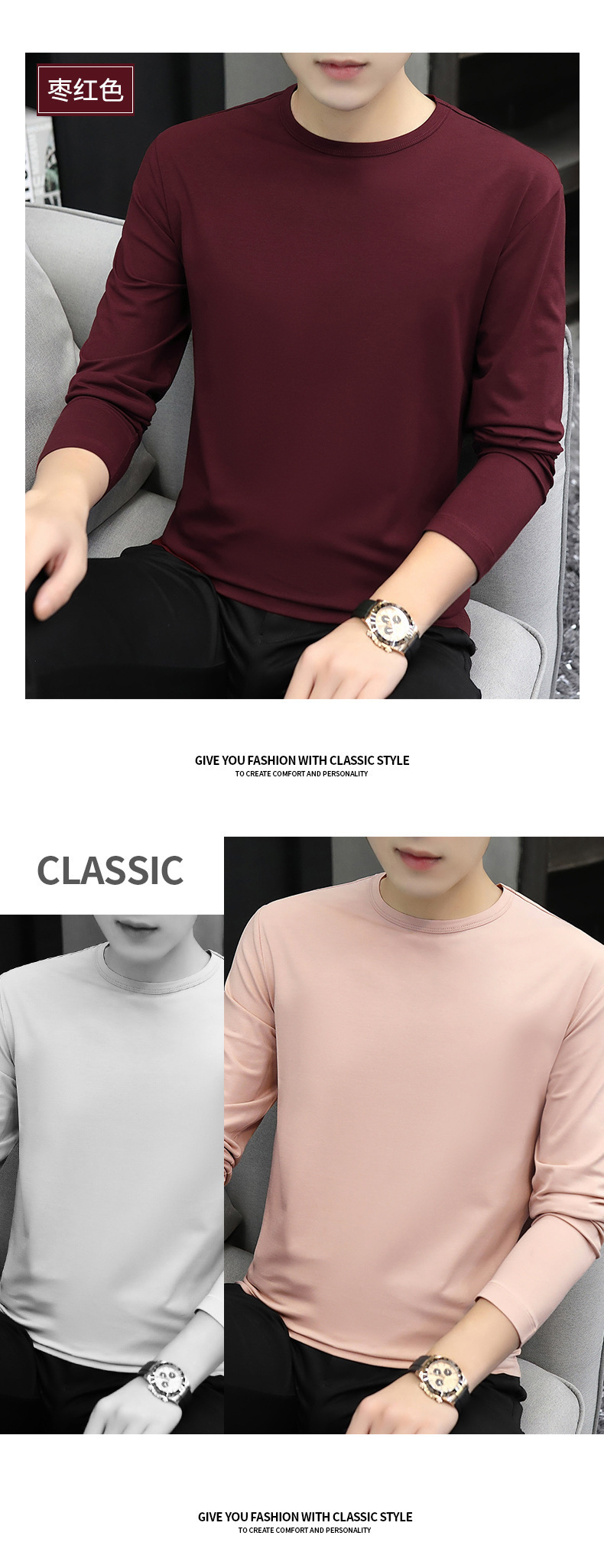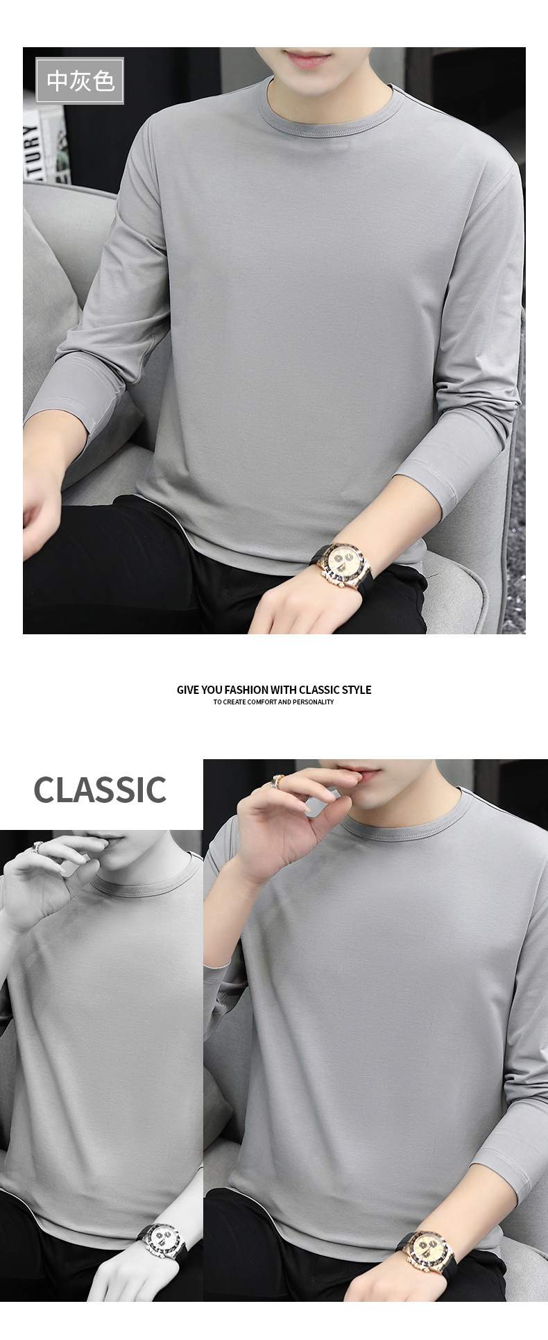 가을 새 흰색 긴팔 티셔츠 남성 봄과 가을 새로운 내부 재킷 단색 기본 셔츠 스웨터 가을 옷스토어 가기