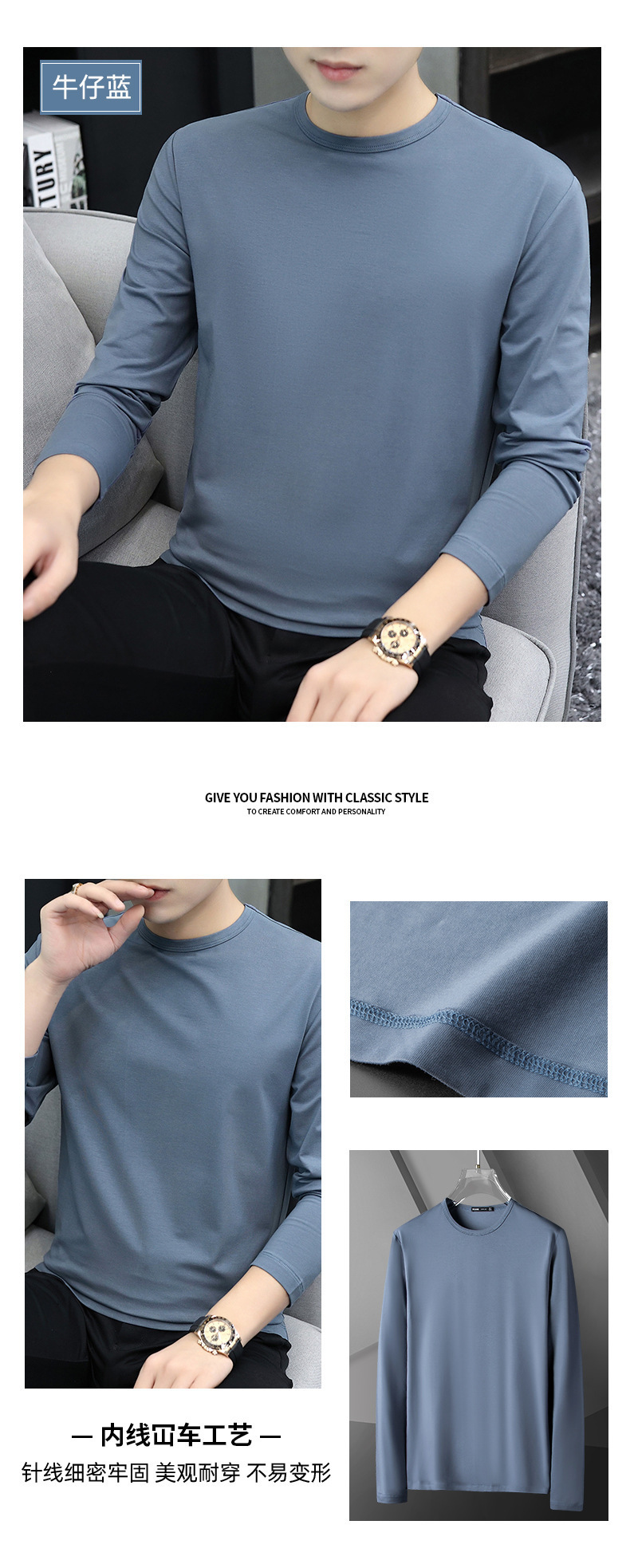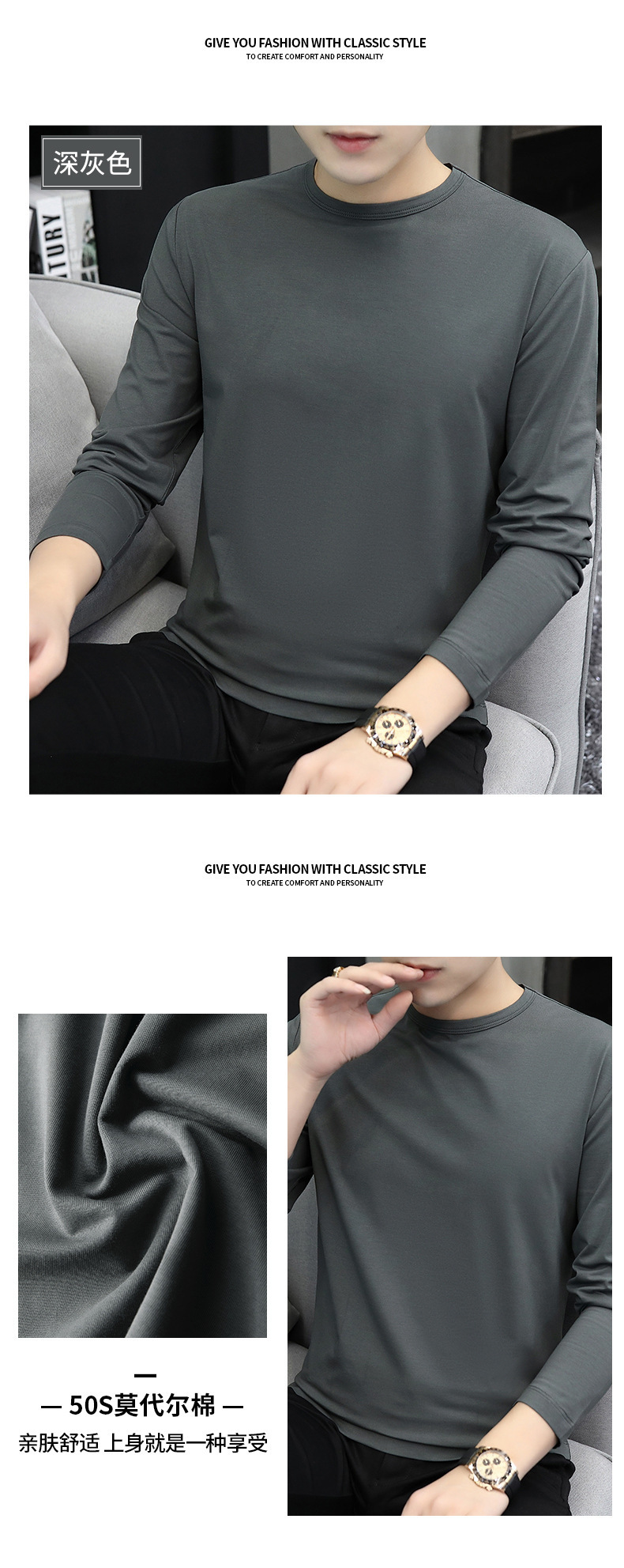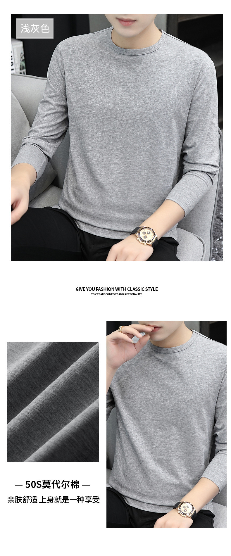 가을 새 흰색 긴팔 티셔츠 남성 봄과 가을 새로운 내부 재킷 단색 기본 셔츠 스웨터 가을 옷스토어 가기