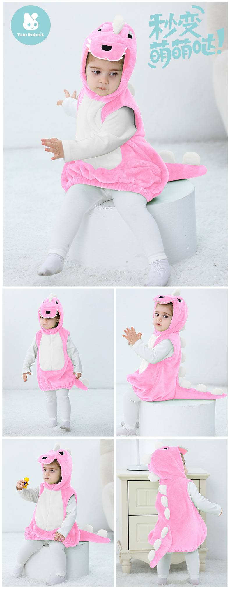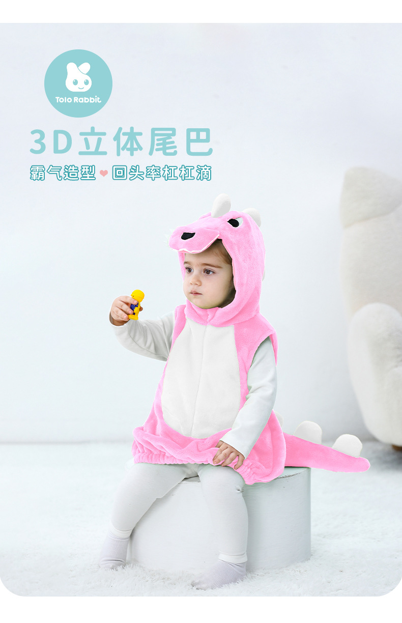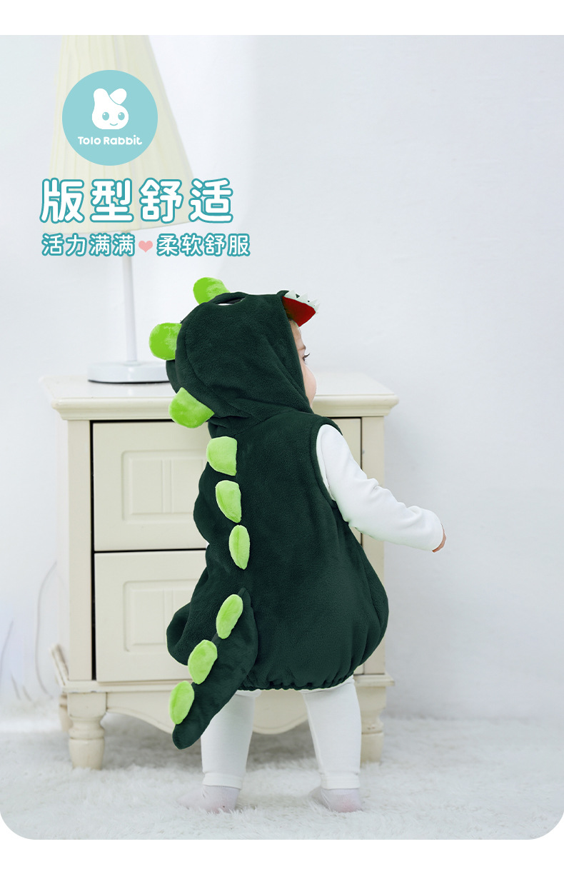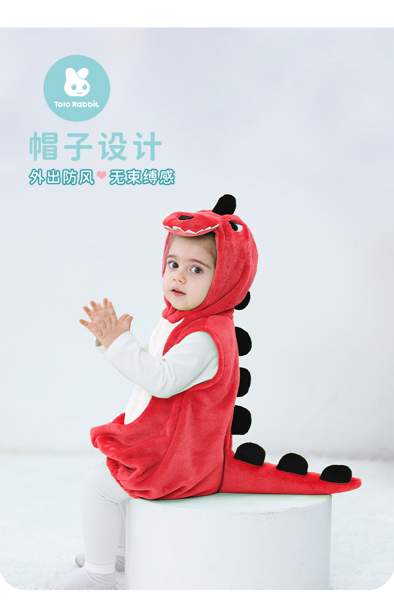 Qilo 토끼 가을 새로운 0-3 세 아기 플란넬 싱글 레이어 모양의 하이 만화 공룡 모양의 조끼
