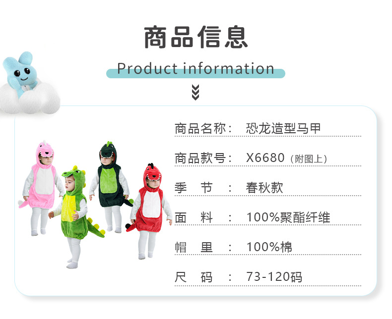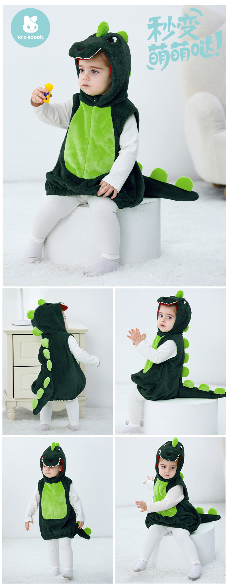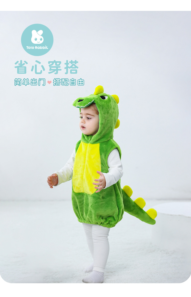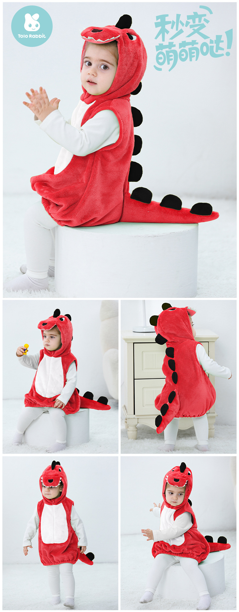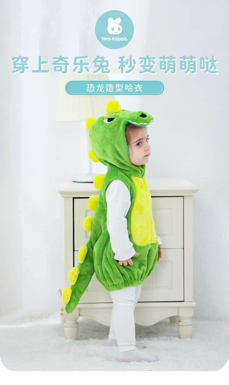 Qilo 토끼 가을 새로운 0-3 세 아기 플란넬 싱글 레이어 모양의 하이 만화 공룡 모양의 조끼
