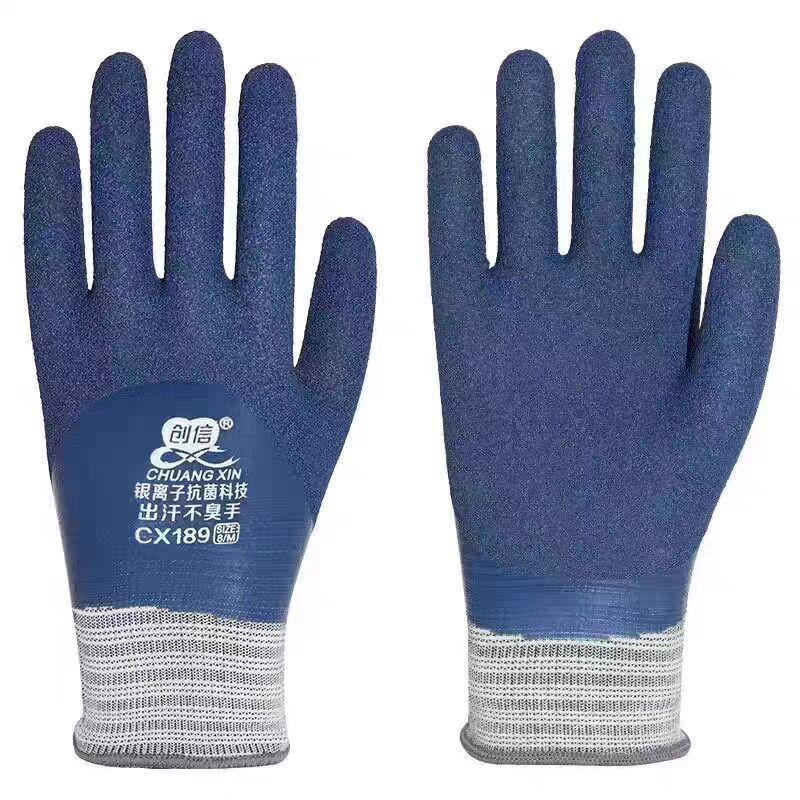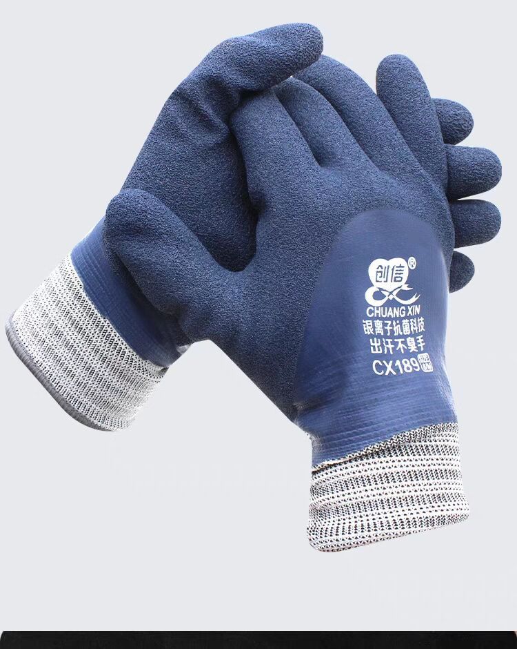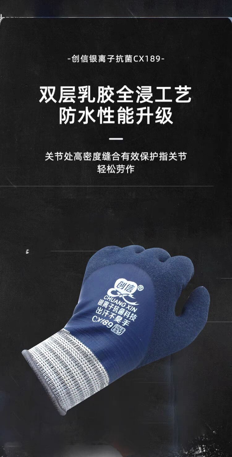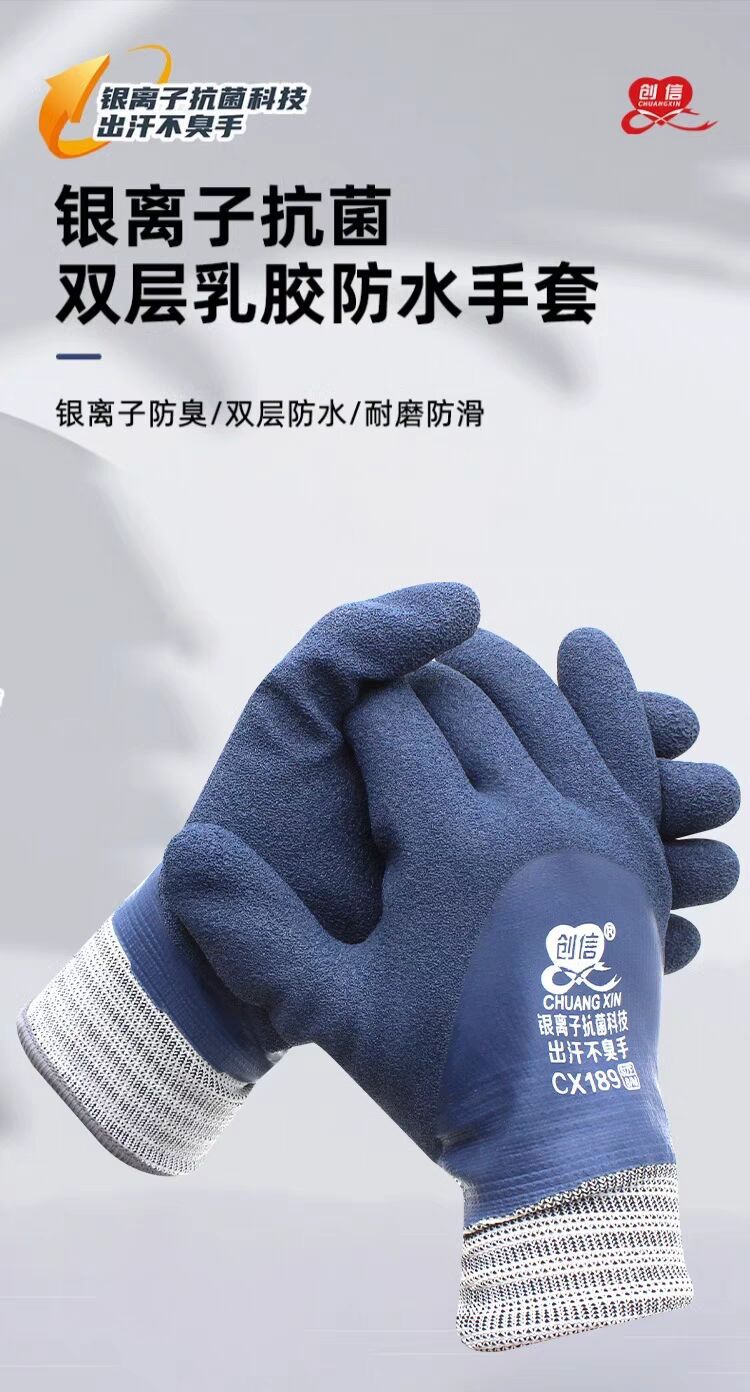 Chuangxin CX189 더블 라텍스 딥 방수 높은 탄성 내마모성 미끄럼 방지 창고 포터 노동 보호 장갑스토어 가기