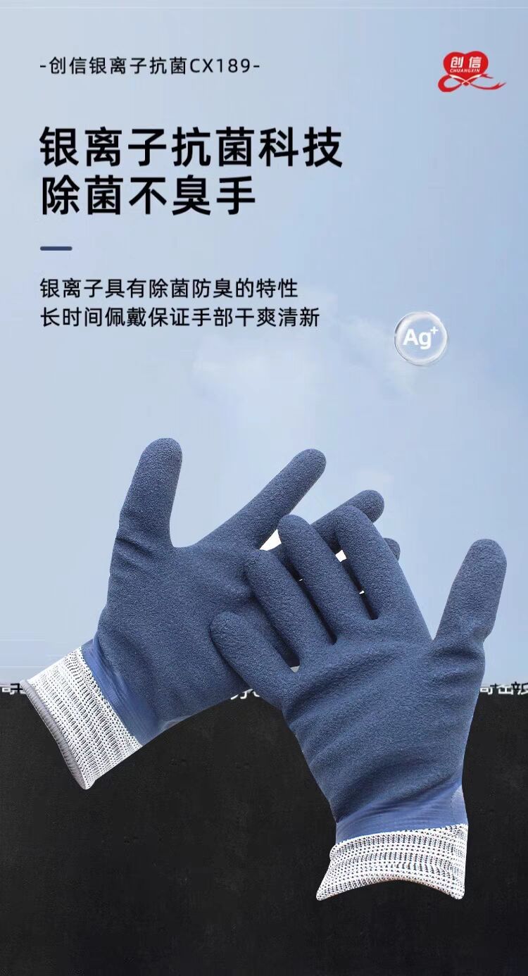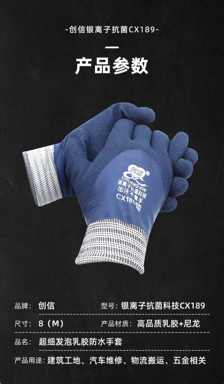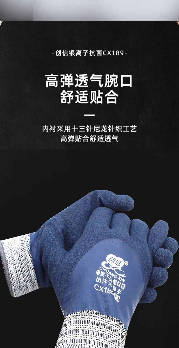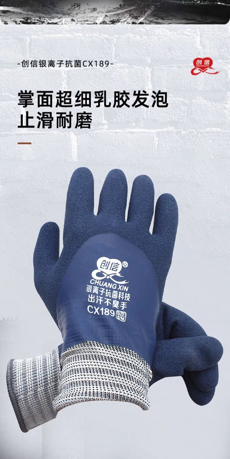 Chuangxin CX189 더블 라텍스 딥 방수 높은 탄성 내마모성 미끄럼 방지 창고 포터 노동 보호 장갑스토어 가기