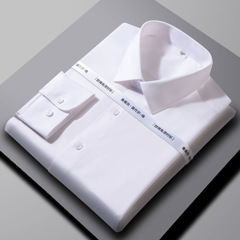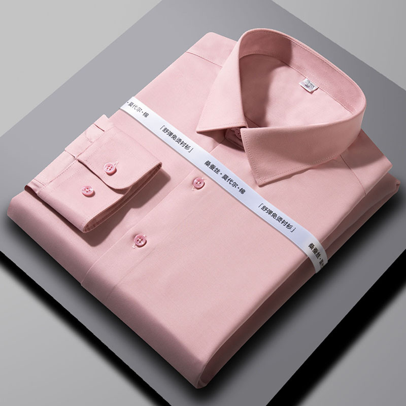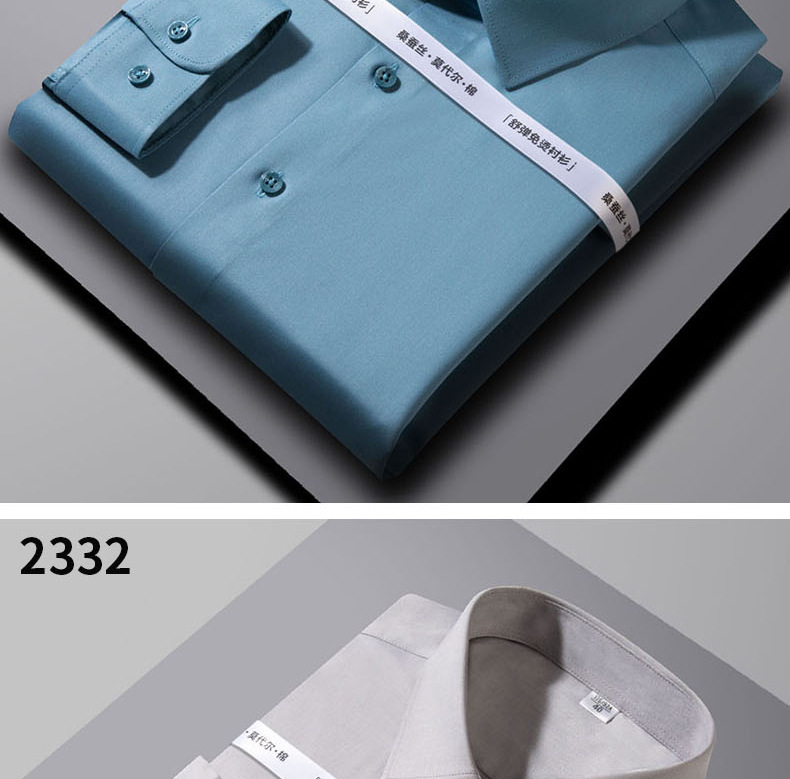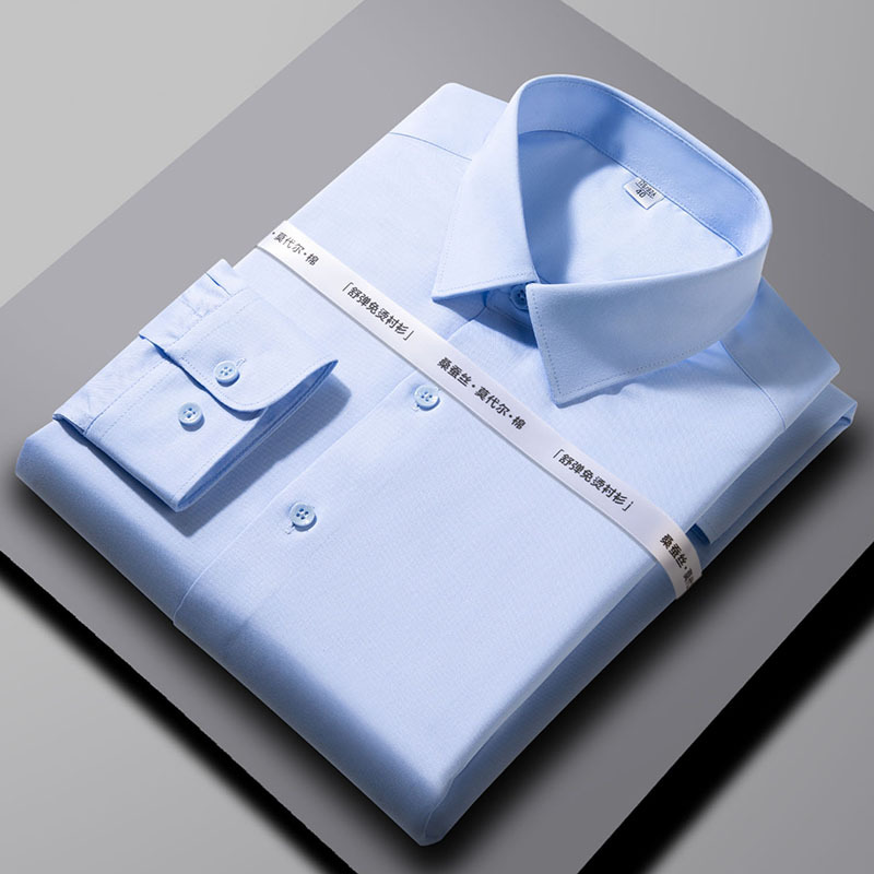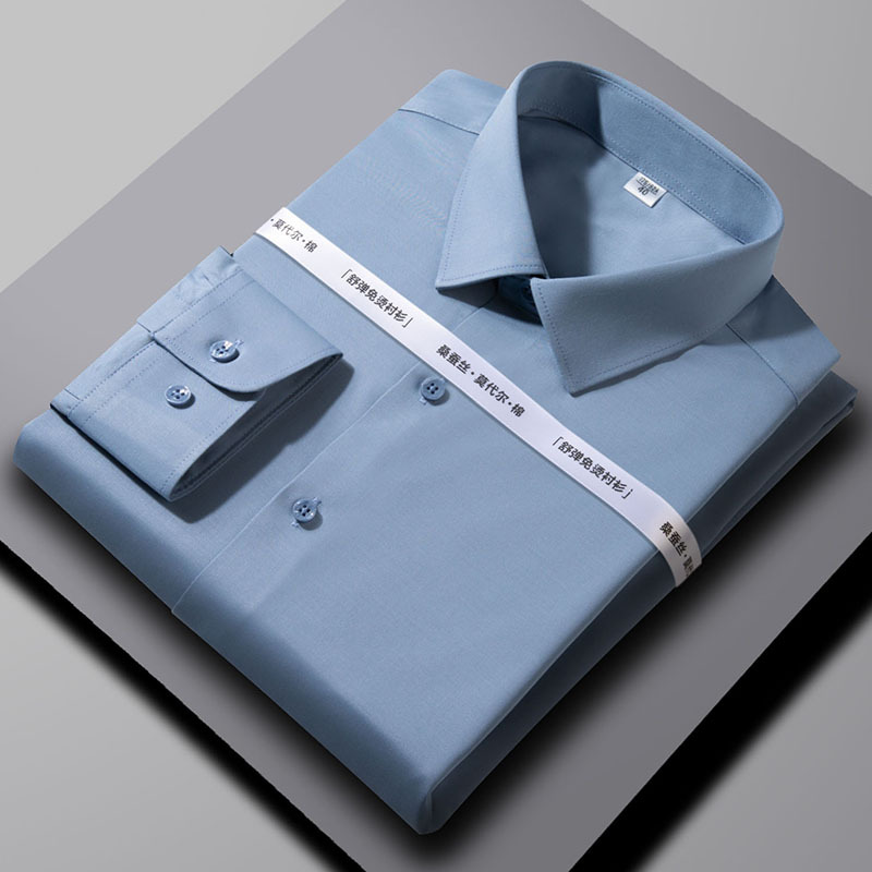 2024 뽕나무 실크 모달 긴팔 셔츠 남성 비즈니스 캐주얼 작업 전문 셔츠 단색 마이크로 탄성 주름 방지스토어 가기
