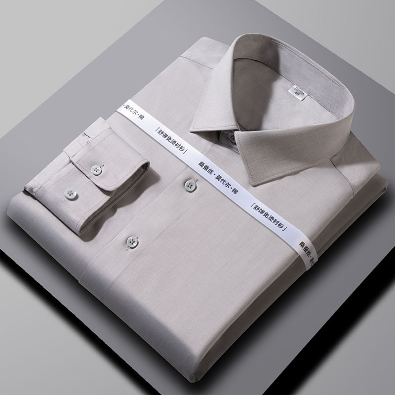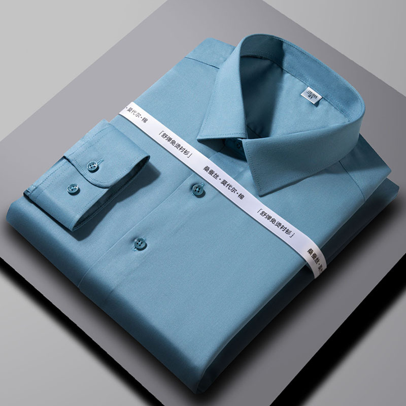 2024 뽕나무 실크 모달 긴팔 셔츠 남성 비즈니스 캐주얼 작업 전문 셔츠 단색 마이크로 탄성 주름 방지