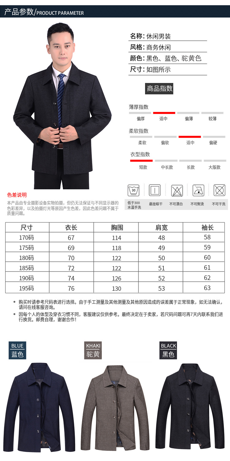 중년 남성 의류 봄과 가을 비즈니스 캐주얼 코트 가을과 겨울 아빠의 옷 남성 재킷 느슨한 옷깃 탑스토어 가기