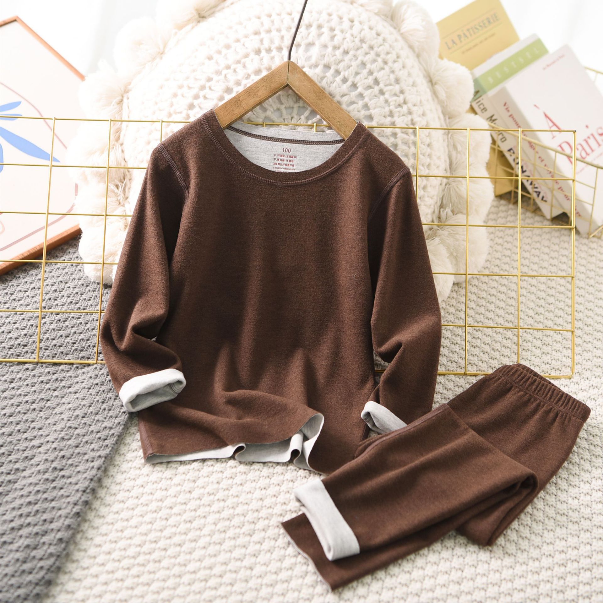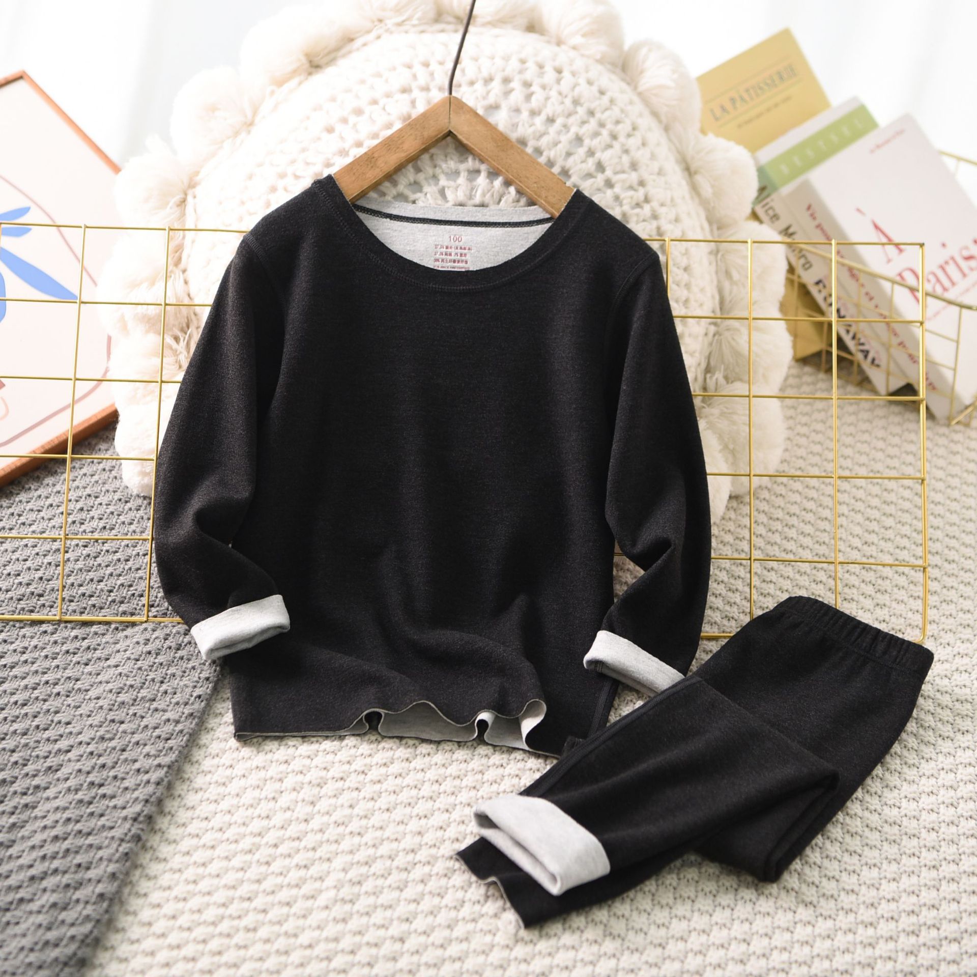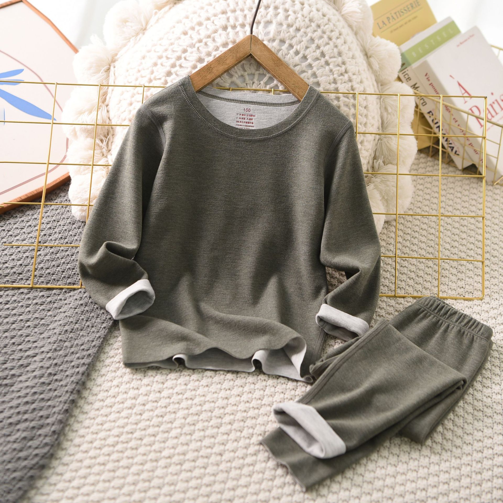 어린이 벨벳 열 속옷 소년 소녀 가을 옷과 바지 세트 가을 겨울 기모 두꺼운 양모 실크 세트