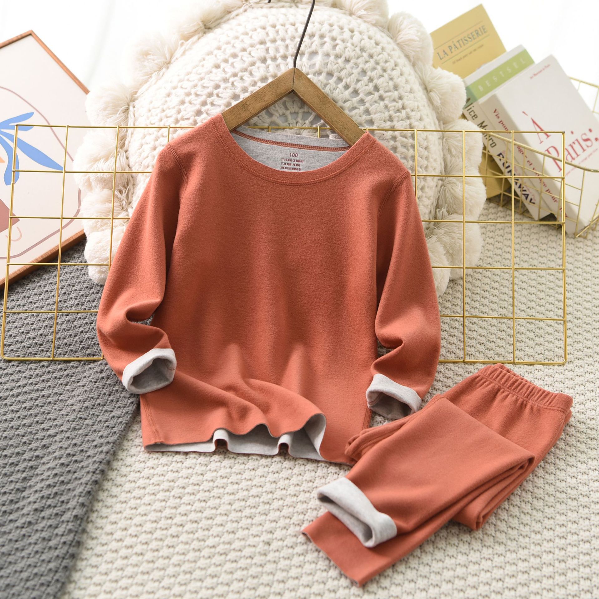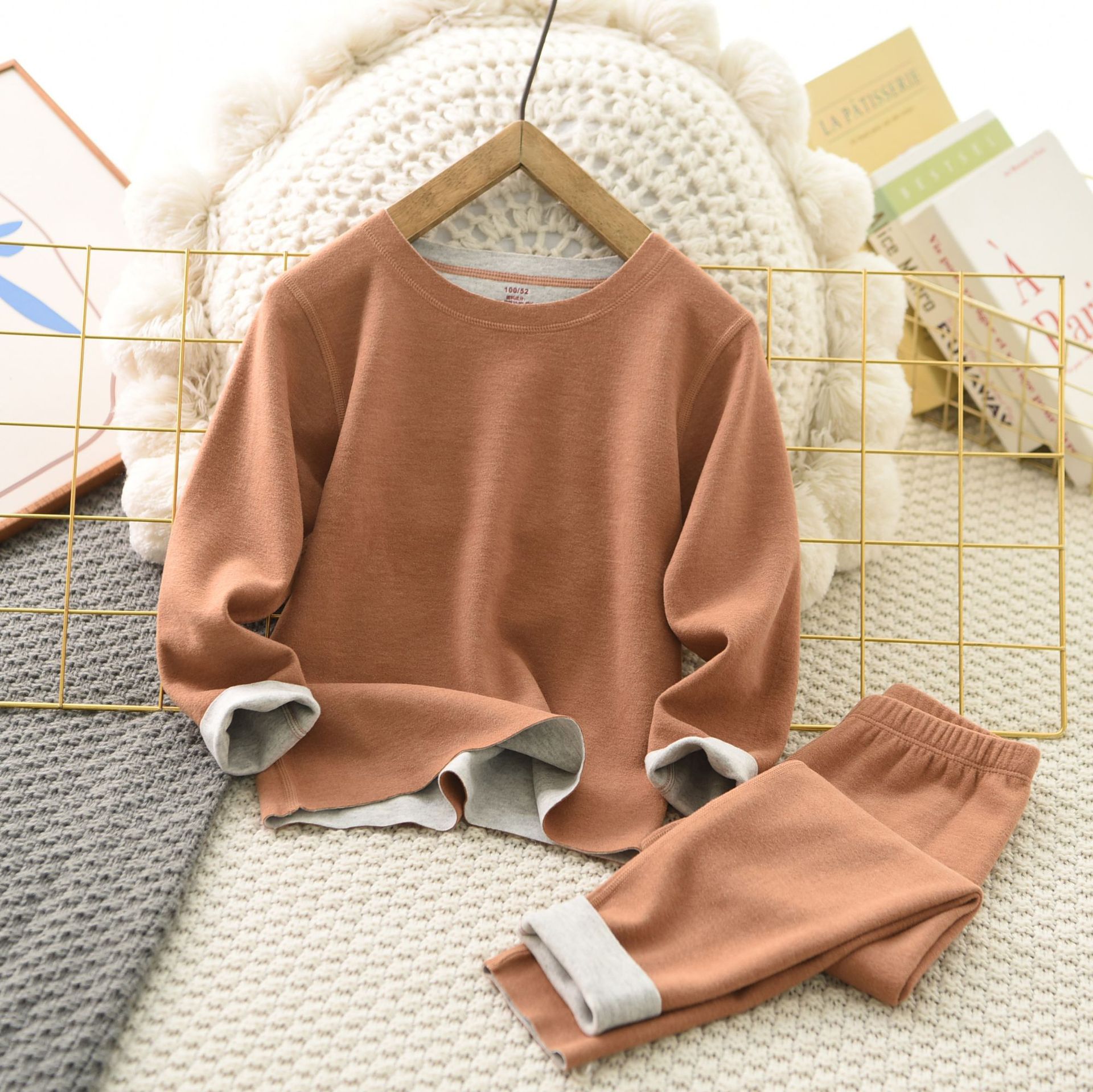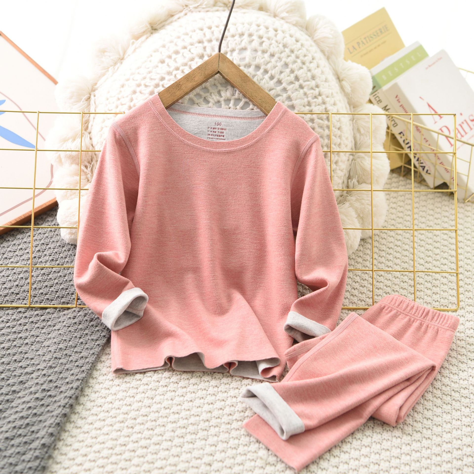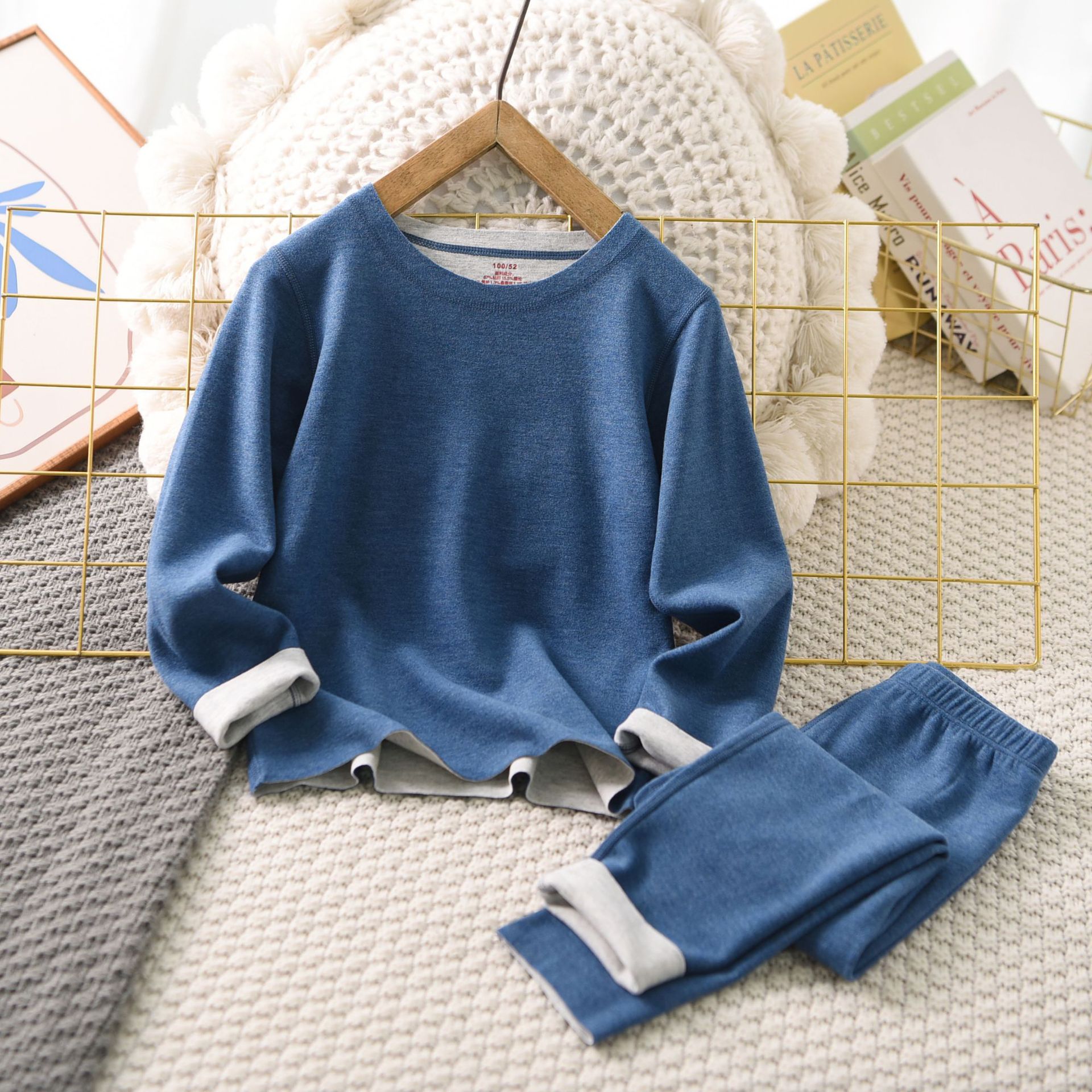어린이 벨벳 열 속옷 소년 소녀 가을 옷과 바지 세트 가을 겨울 기모 두꺼운 양모 실크 세트