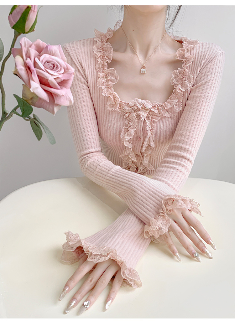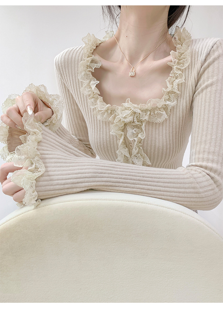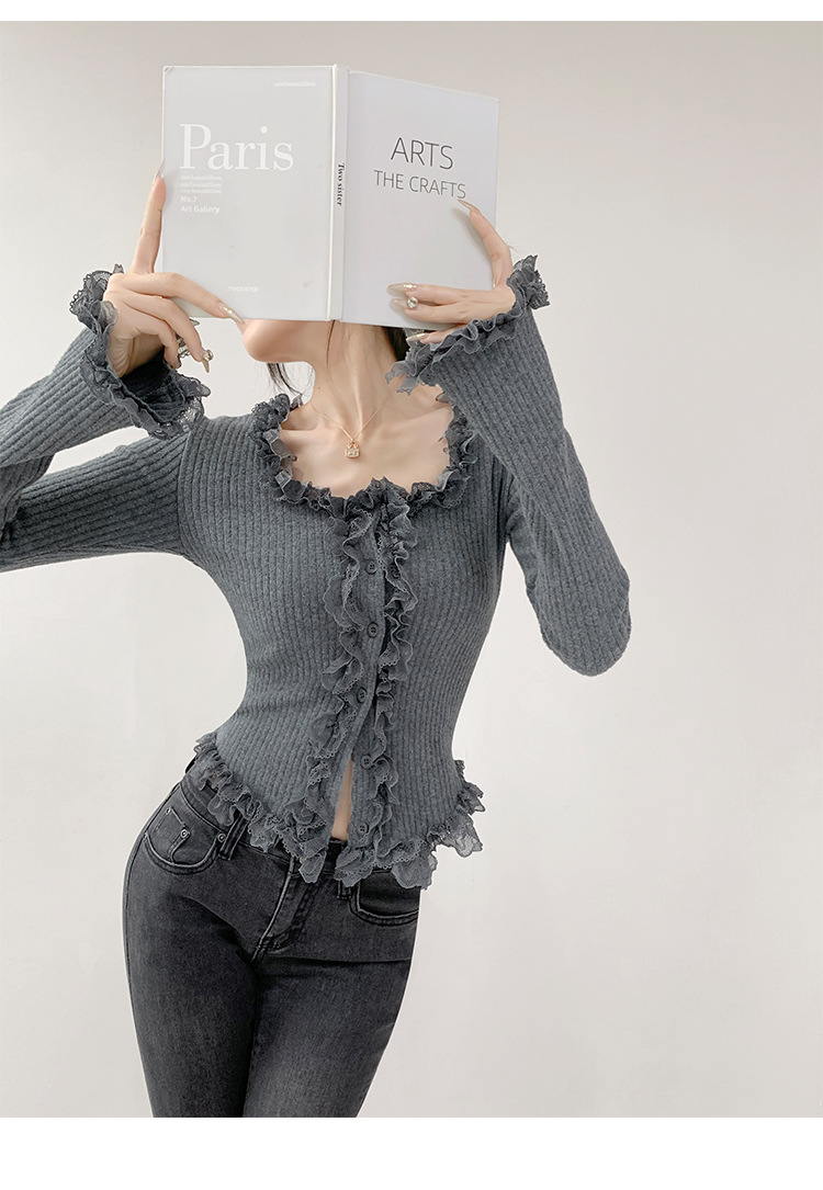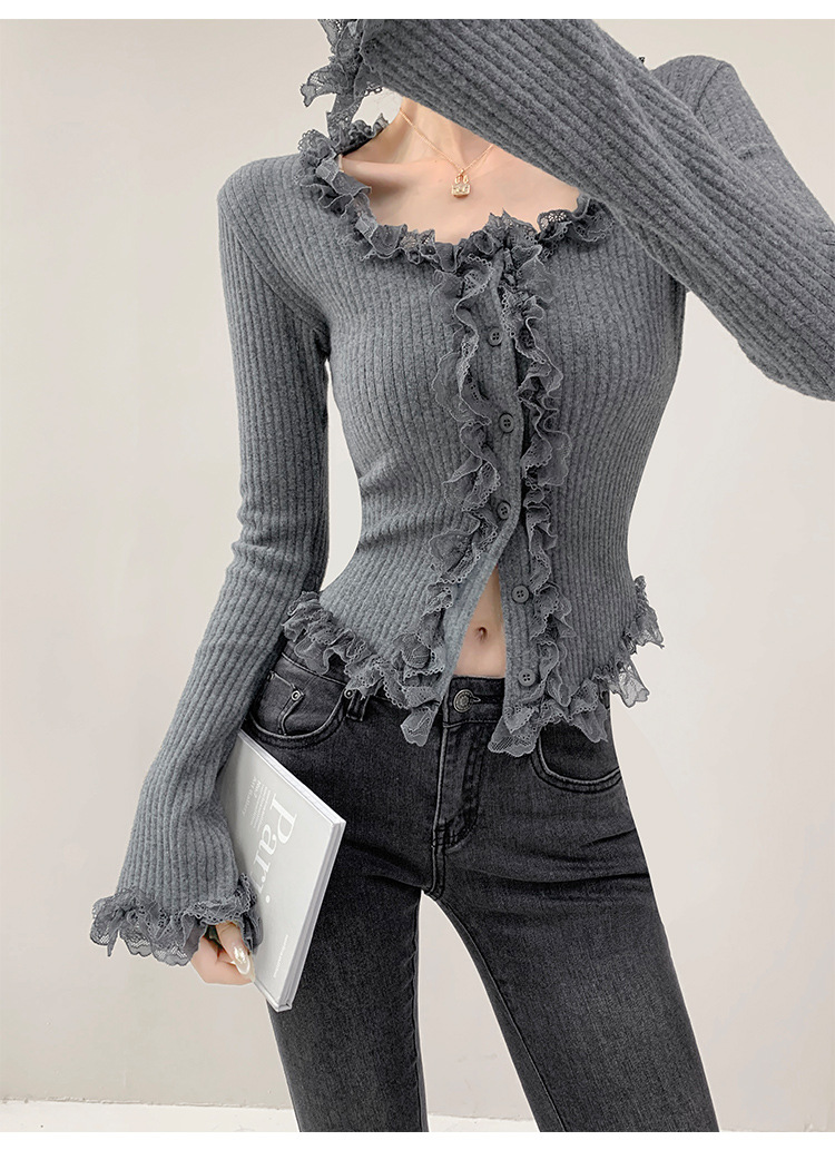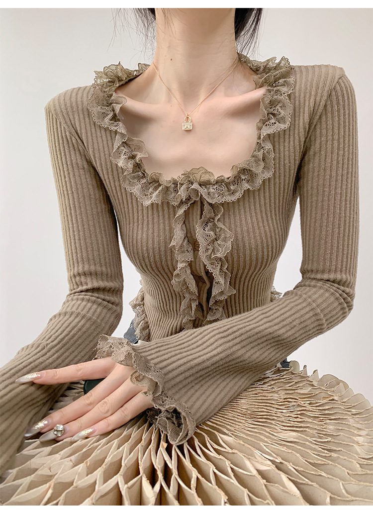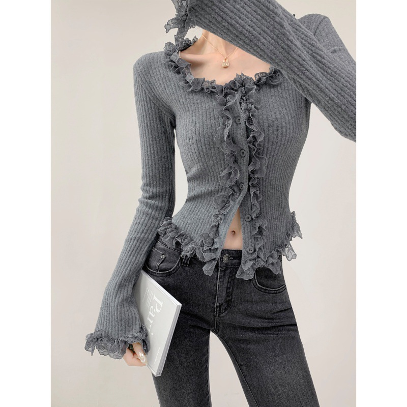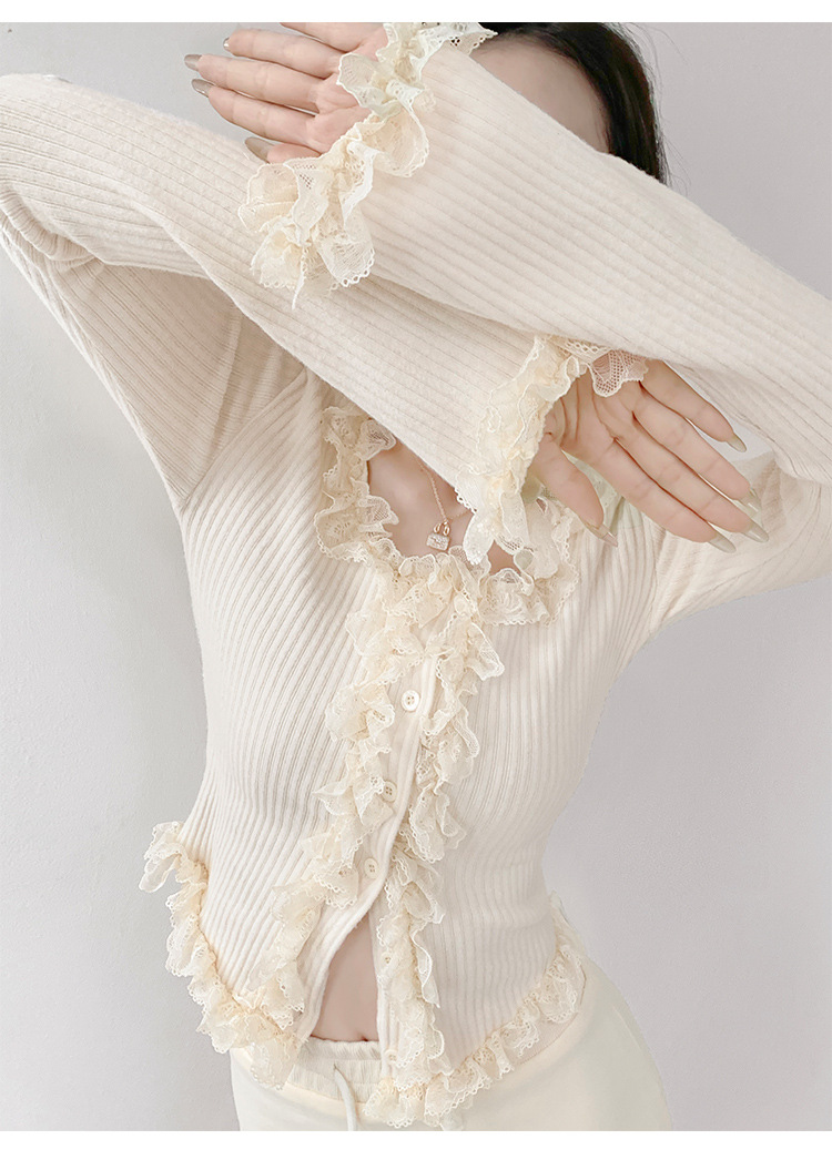 프랑스 스타일 퓨어 V 넥 레이스 니트 카디건 여성의 봄과 가을 새로운 솔리드 컬러 슬림 핏 슬리밍 아우터웨어 탑