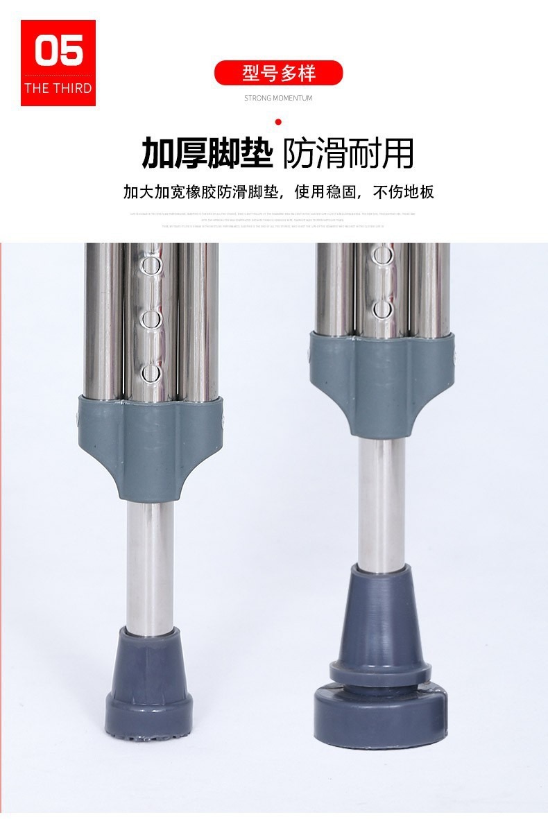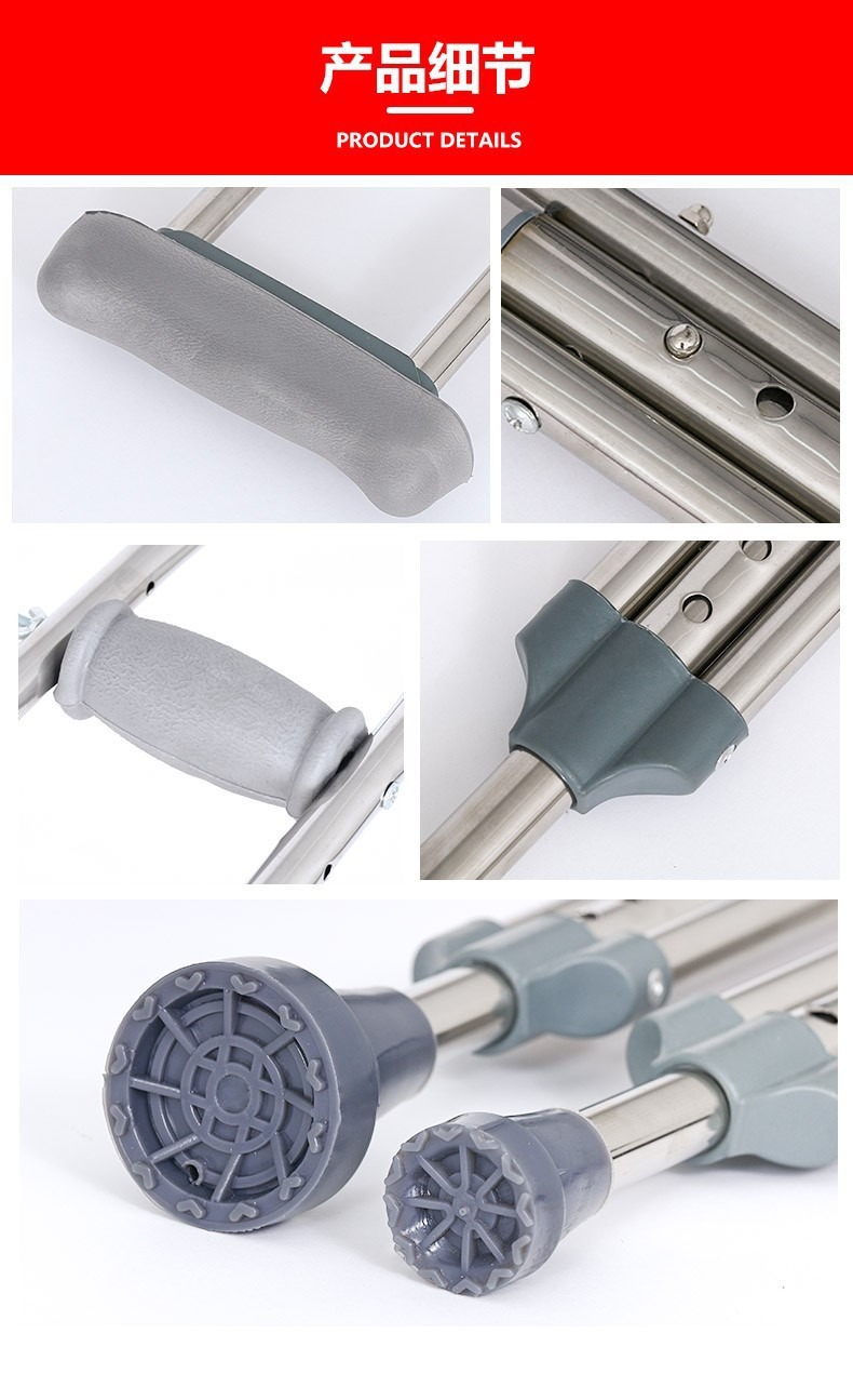 노인 겨드랑이 이중 목발 워커 재활 워커를위한 의료용 스테인레스 스틸 목발 겨드랑이 골절 미끄럼 겨드랑이 목발