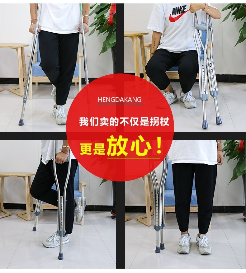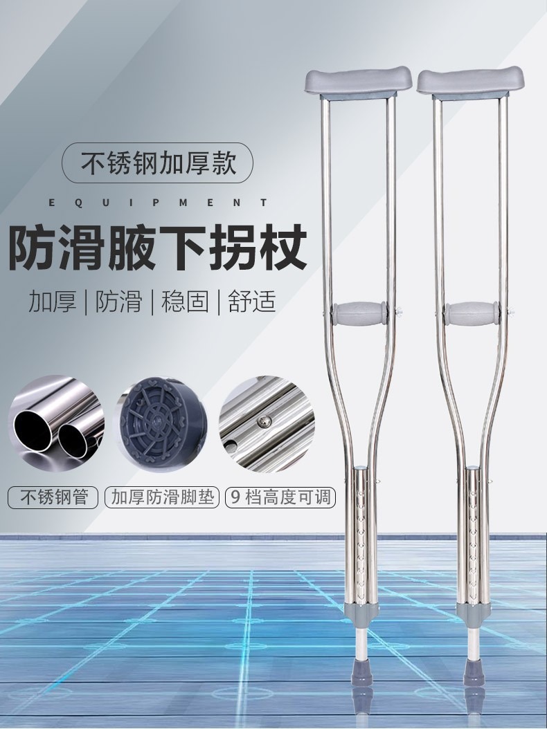 노인 겨드랑이 이중 목발 워커 재활 워커를위한 의료용 스테인레스 스틸 목발 겨드랑이 골절 미끄럼 겨드랑이 목발스토어 가기