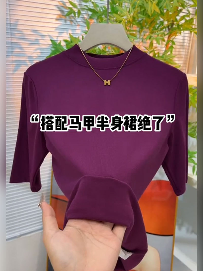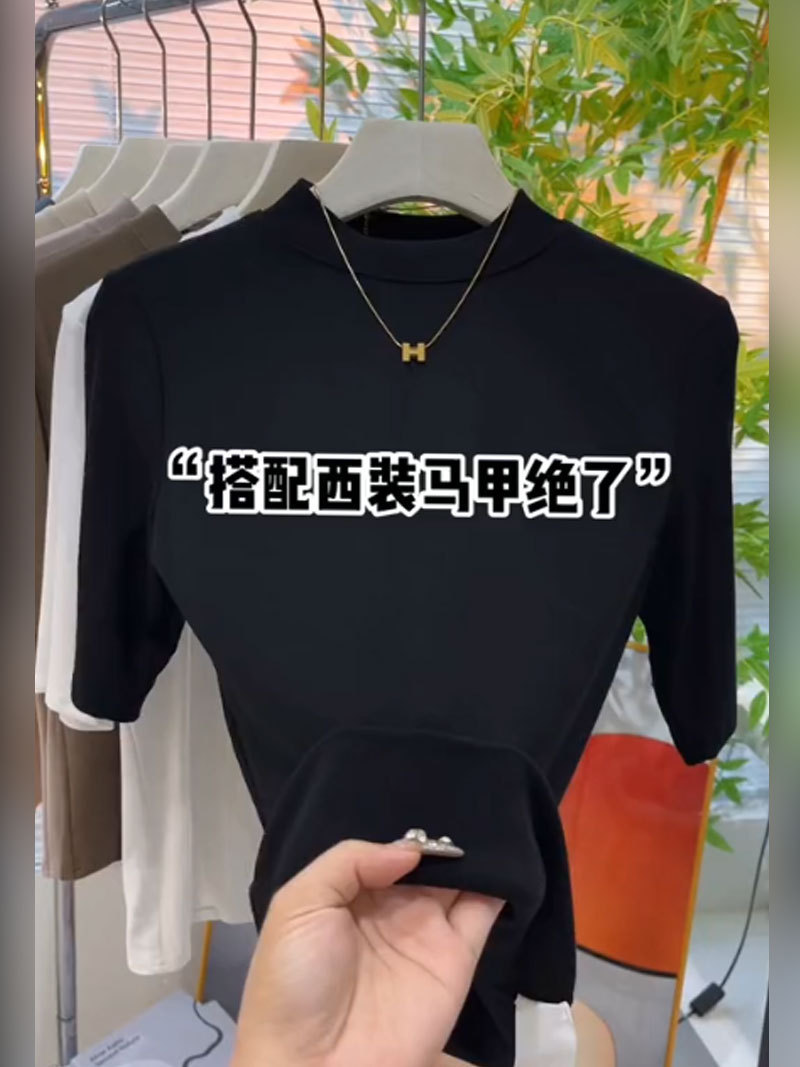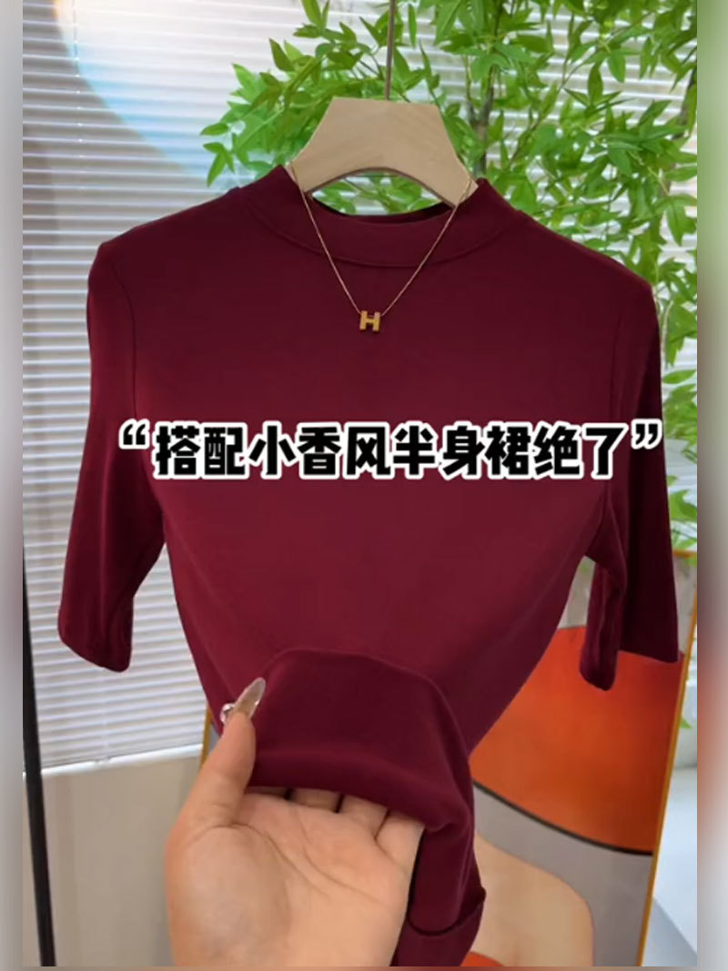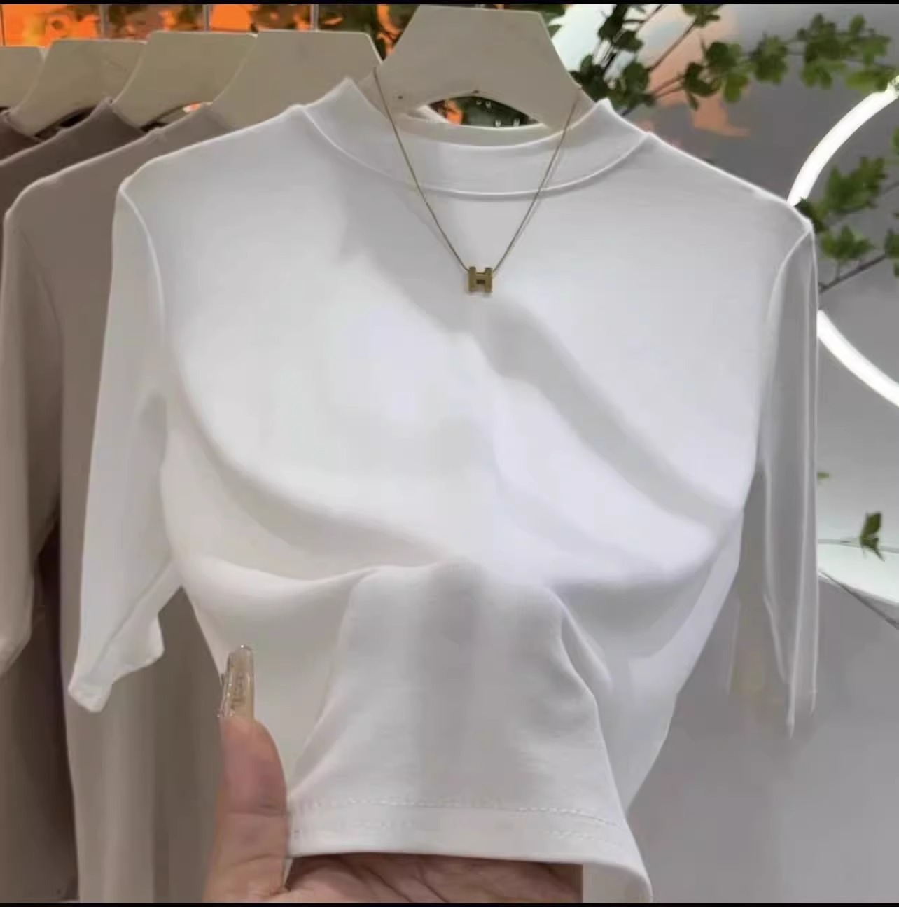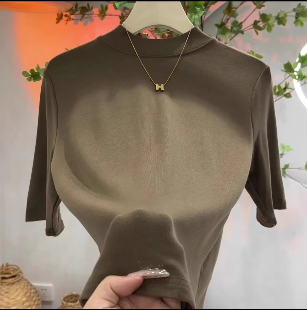2024新款半高领纯色五分袖内搭打底衫女春季百搭显瘦气质上衣T恤