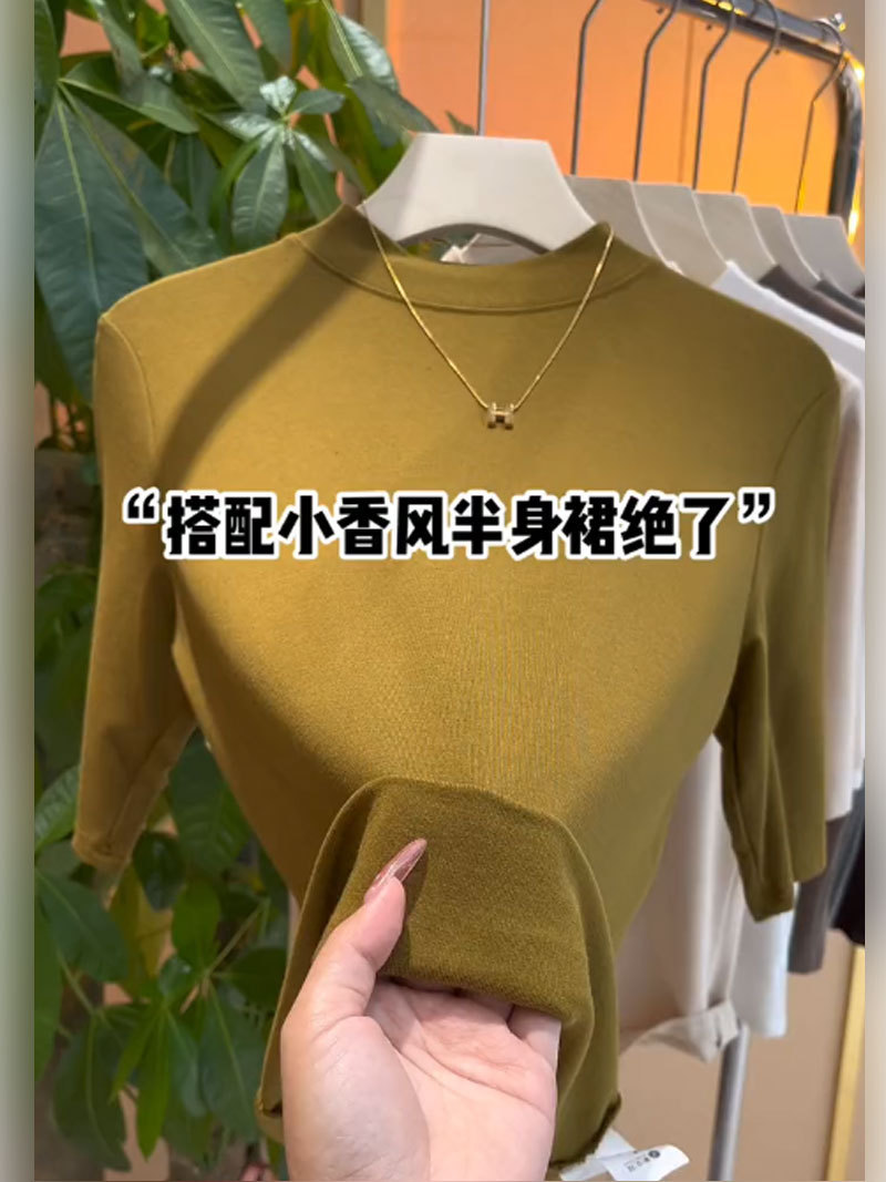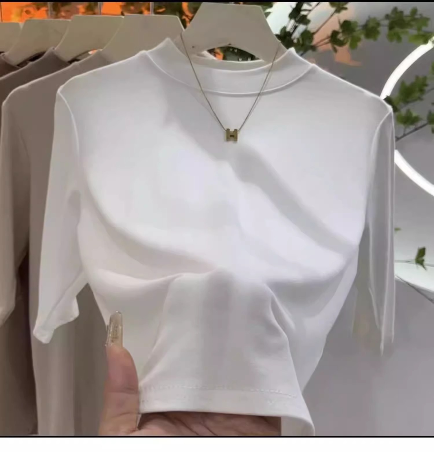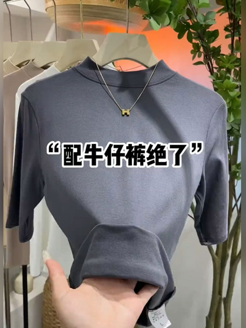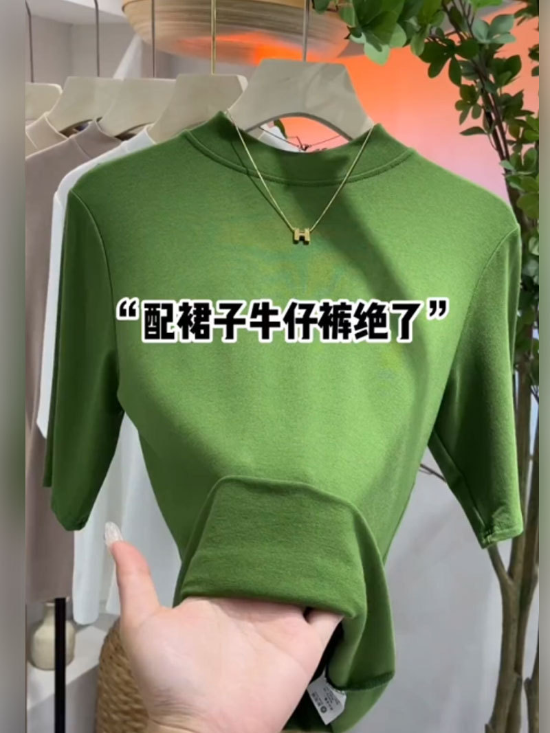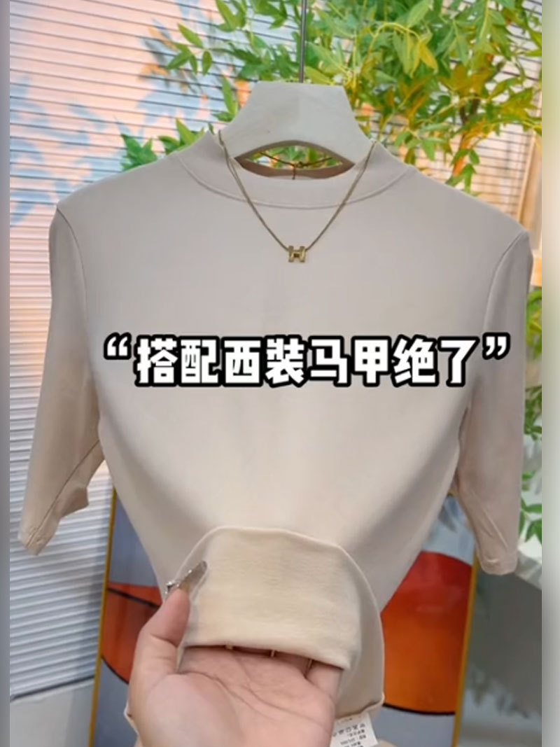 2024新款半高领纯色五分袖内搭打底衫女春季百搭显瘦气质上衣T恤