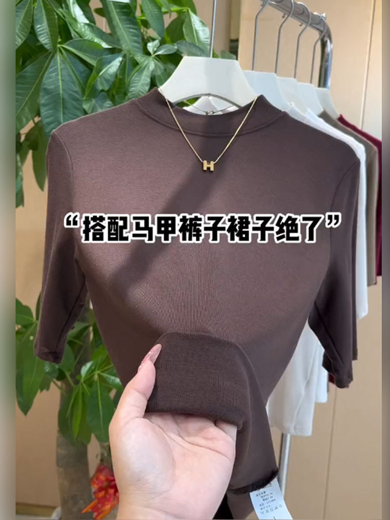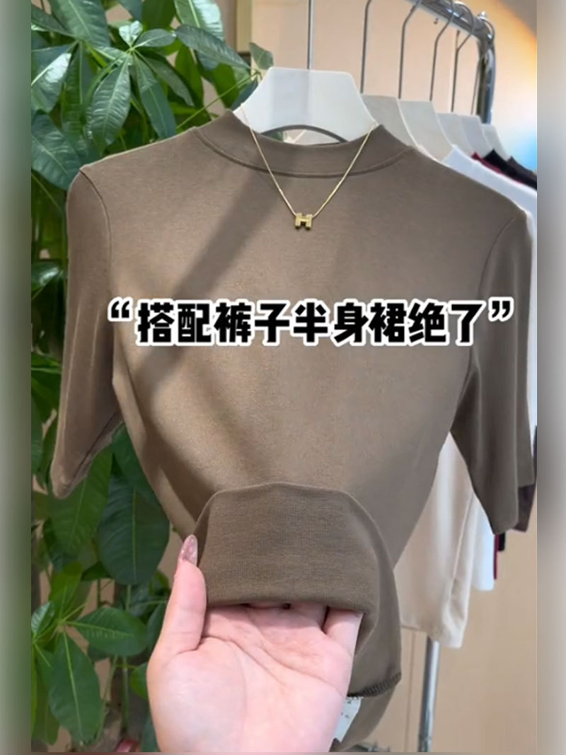 设计弹力打底衫春秋短袖半高领短袖打底代尔莫代尔修身T恤高领