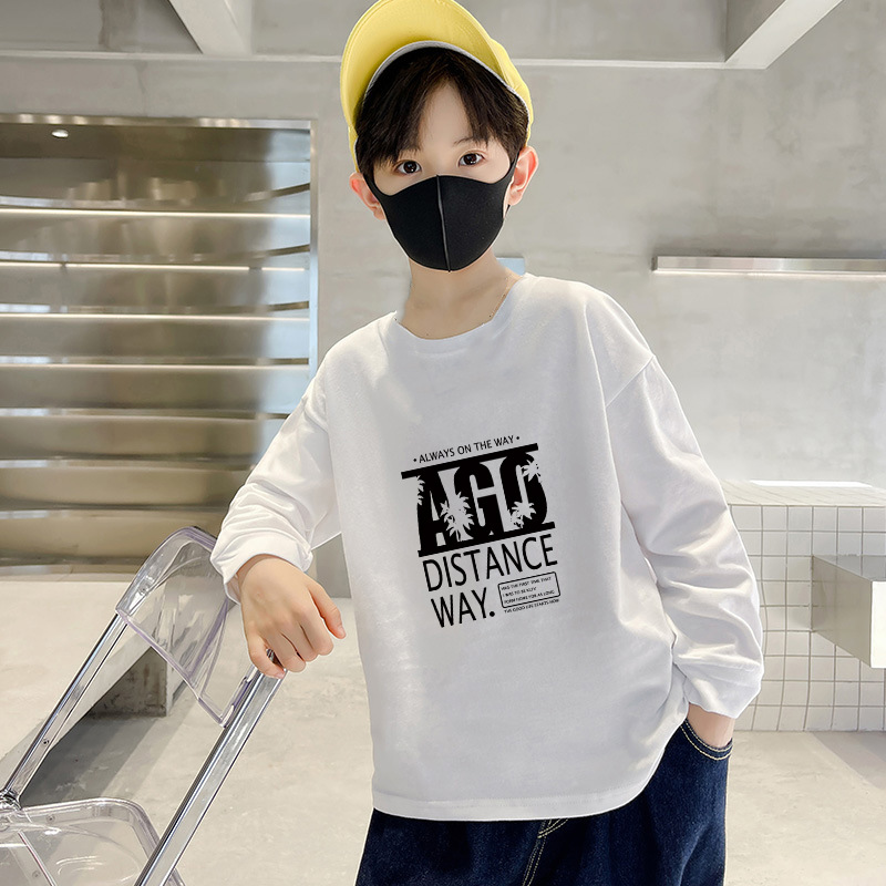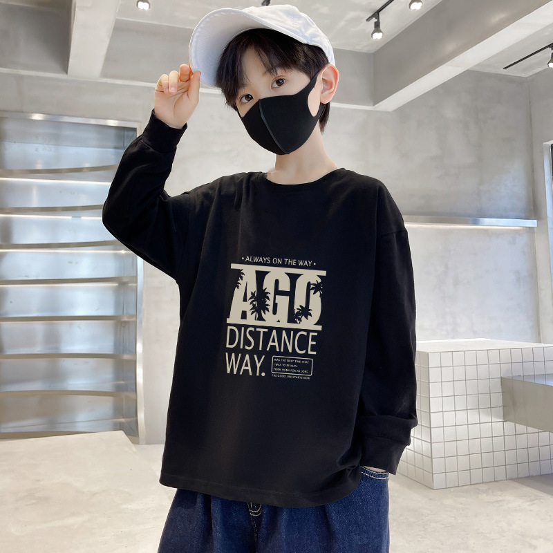 220g 순면 무거운 무게 아동복 소년 티셔츠 긴 소매 가을 어린이 큰 소년 코트 반소매 바닥 셔츠스토어 가기