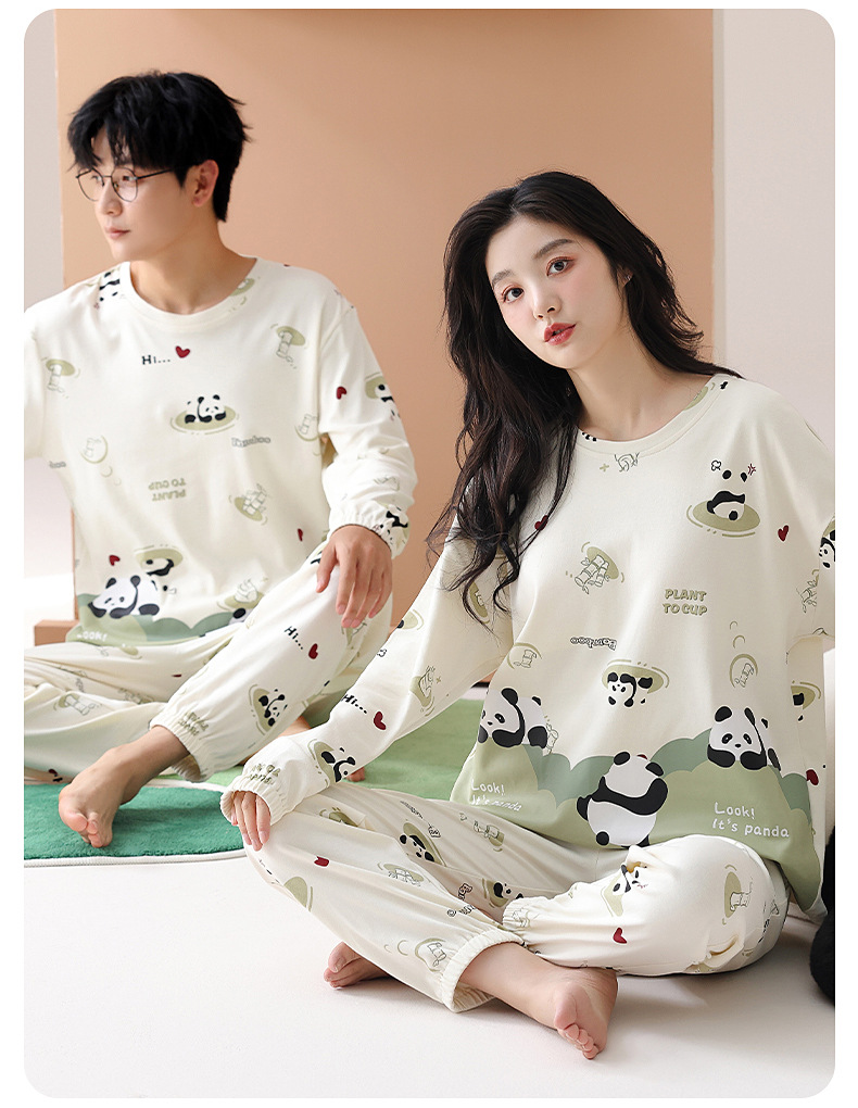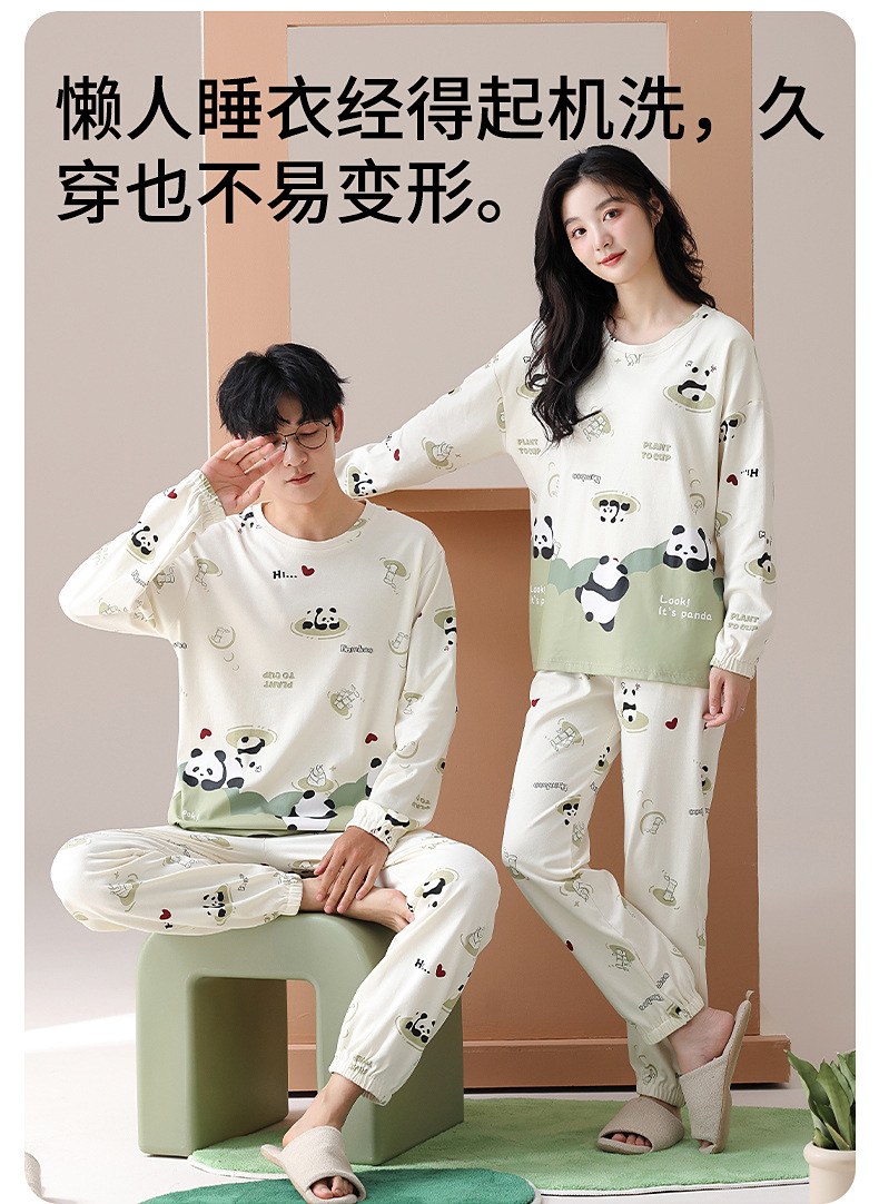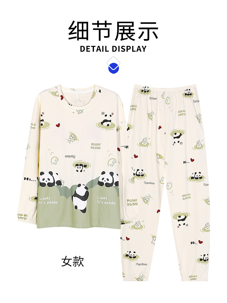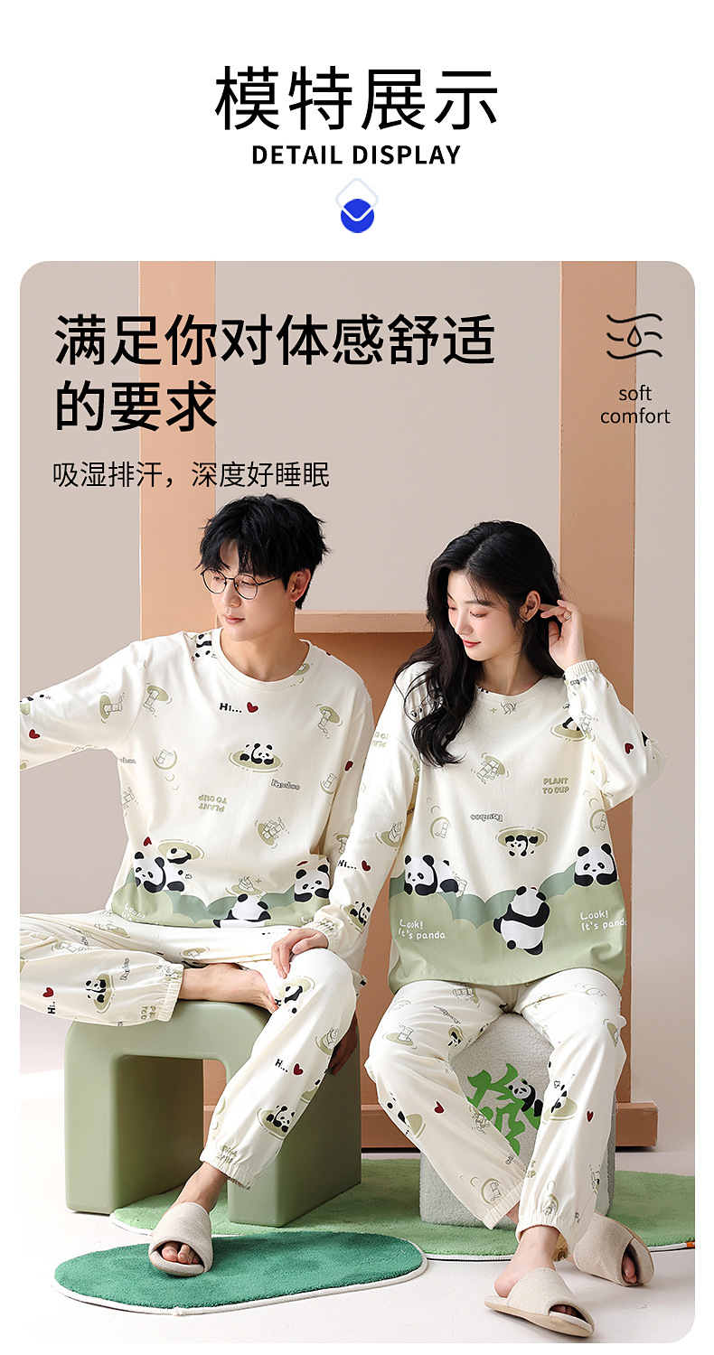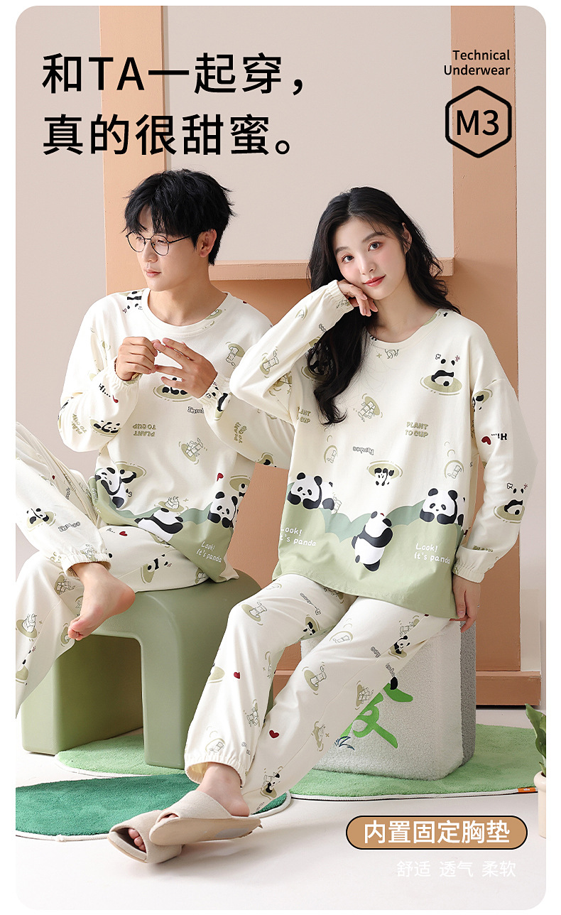 [순면] 커플 잠옷 여성용 가슴 패드 포함 봄 가을 2025년 가을 겨울 신상 홈웨어 긴팔 남성용스토어 가기