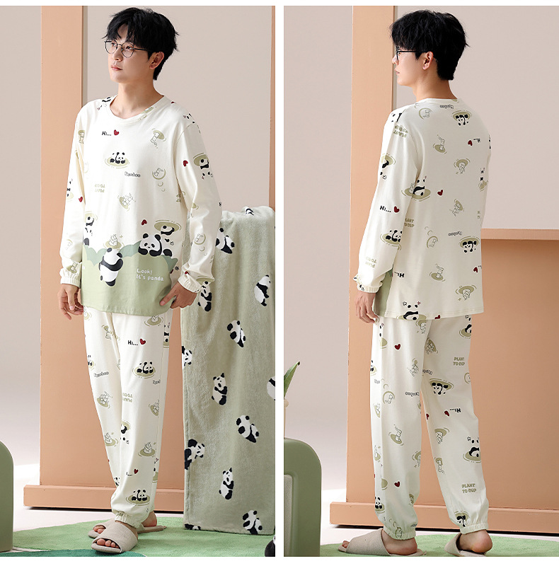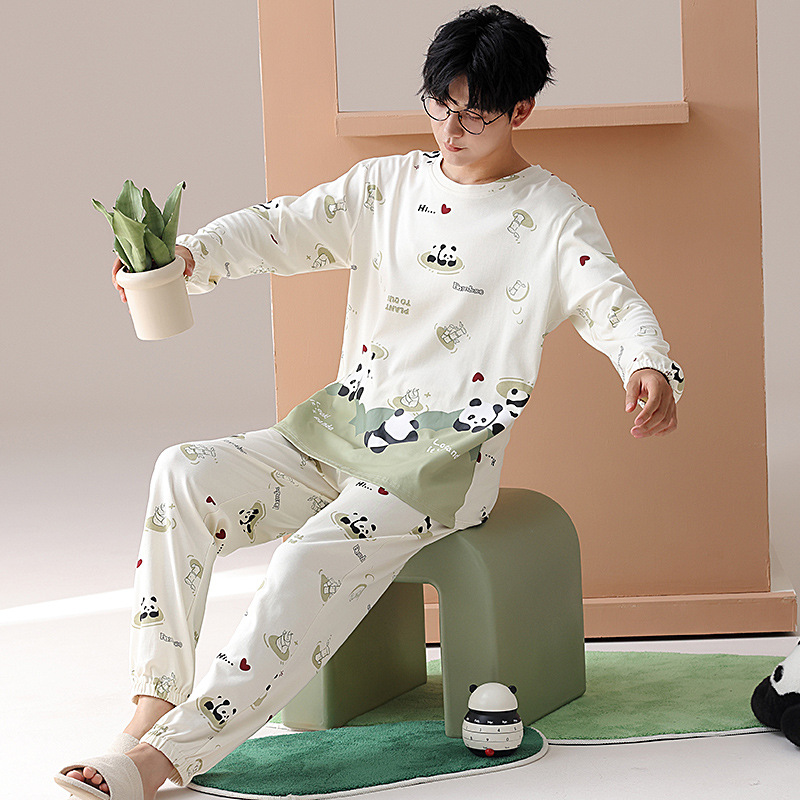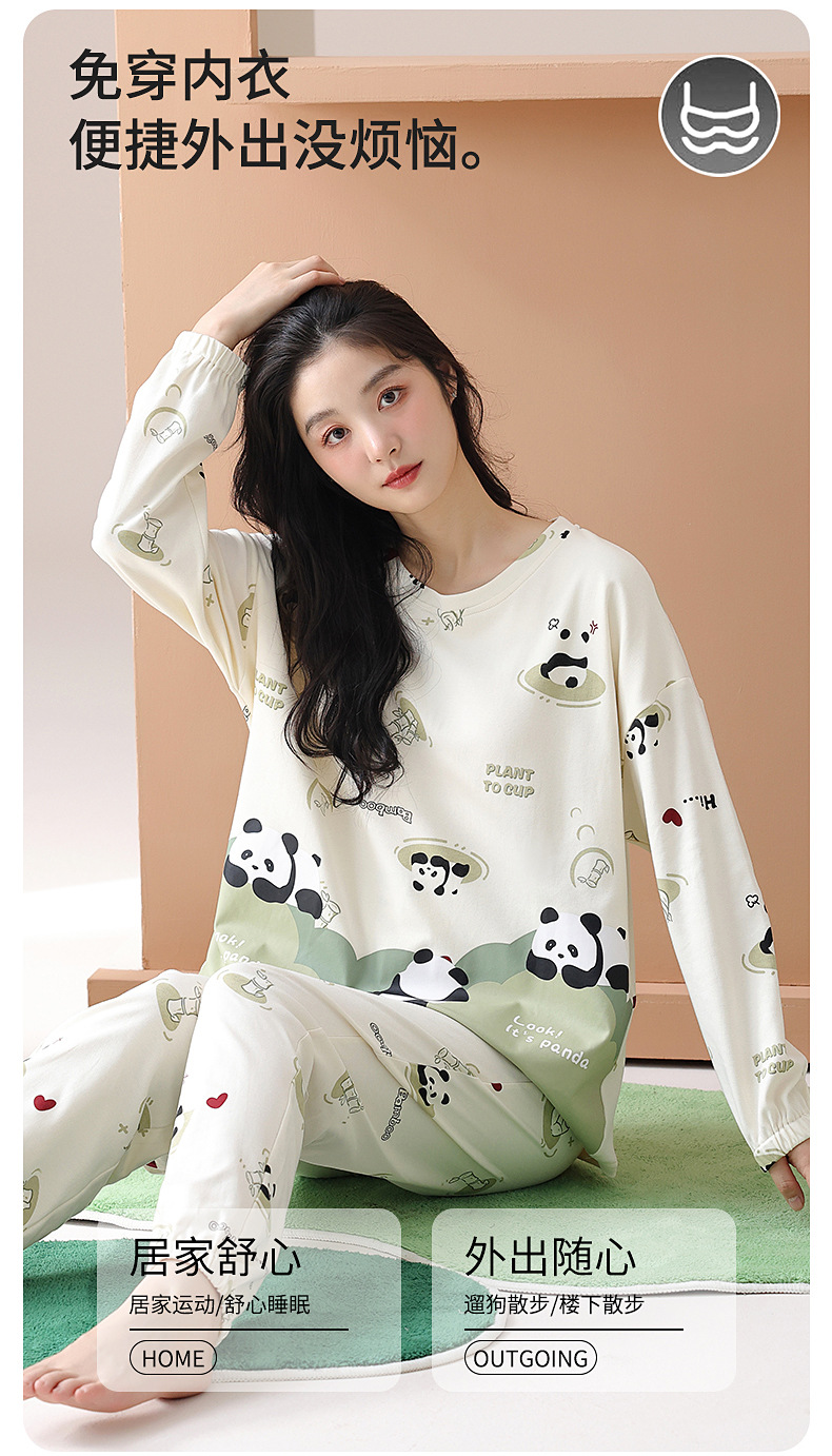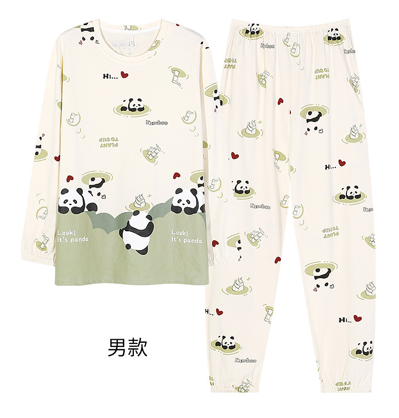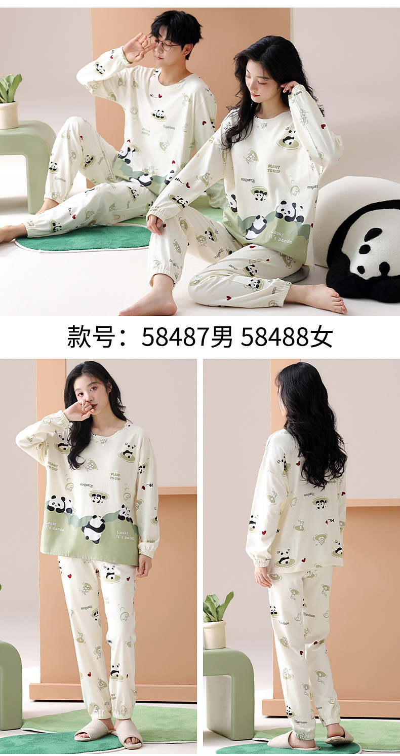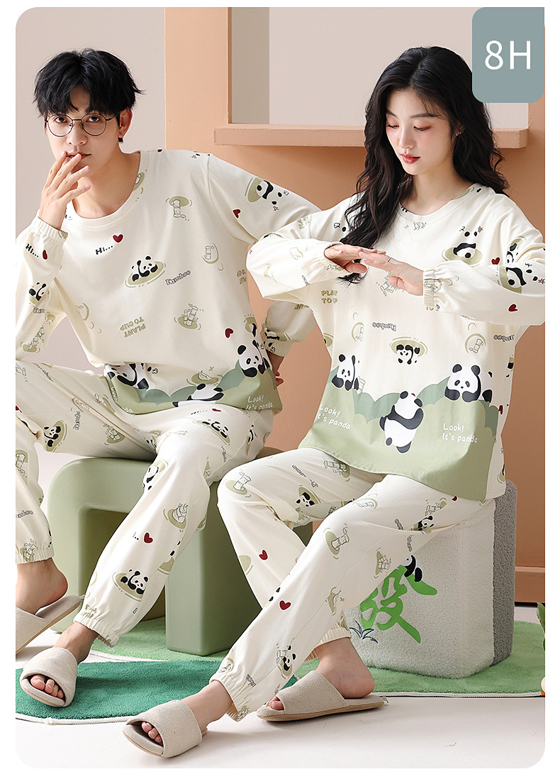[순면] 커플 잠옷 여성용 가슴 패드 포함 봄 가을 2025년 가을 겨울 신상 홈웨어 긴팔 남성용스토어 가기