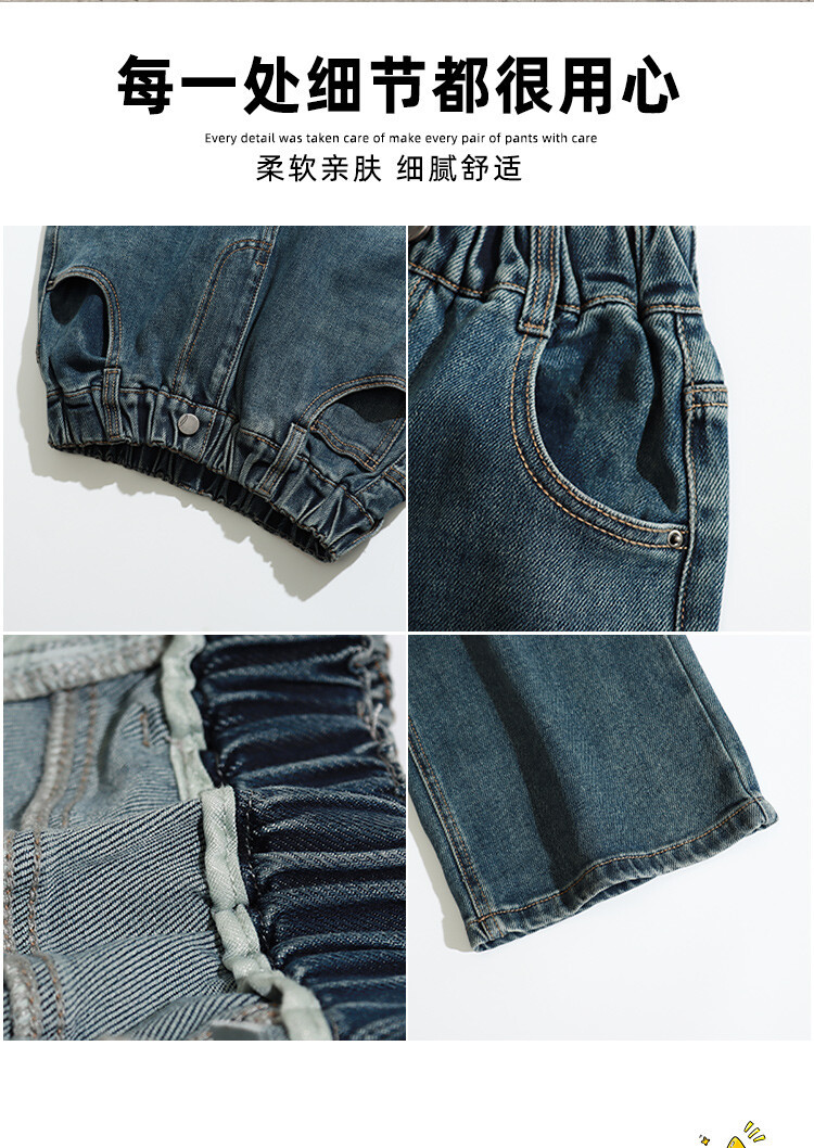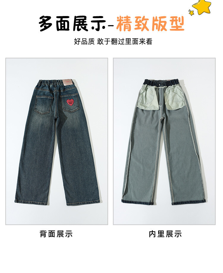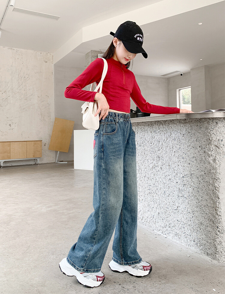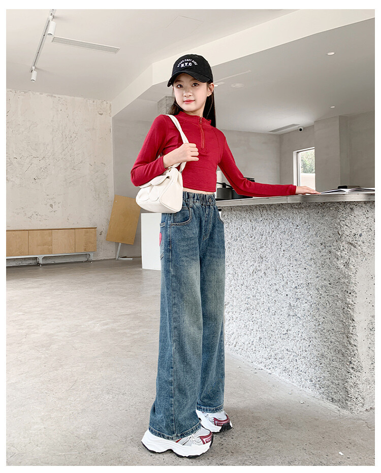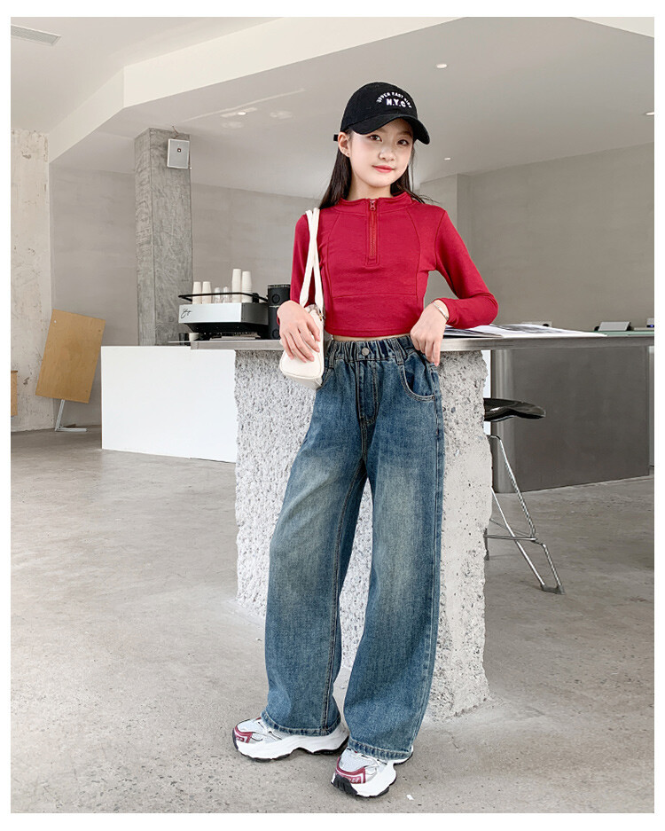 소녀 청바지 봄과 가을 어린이 2024 새로운 스타일 소녀의 Styky Straight Wide Leg Pants 소녀 가을 바지