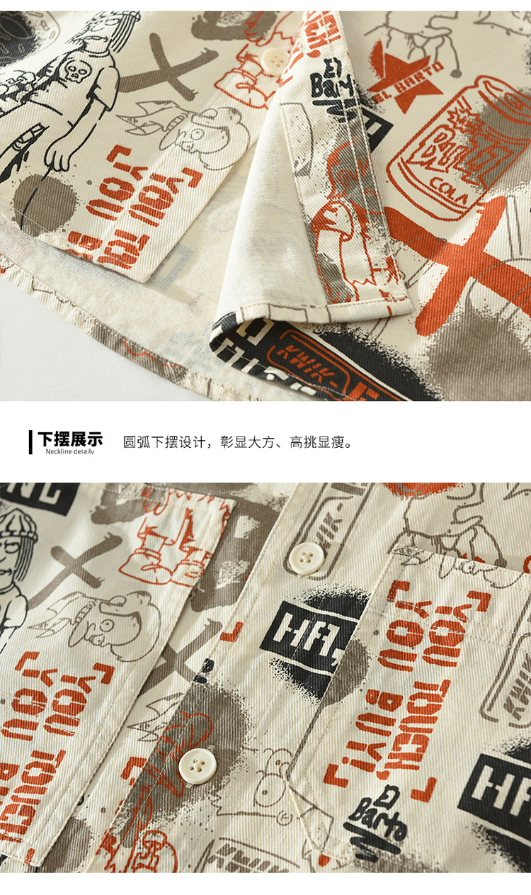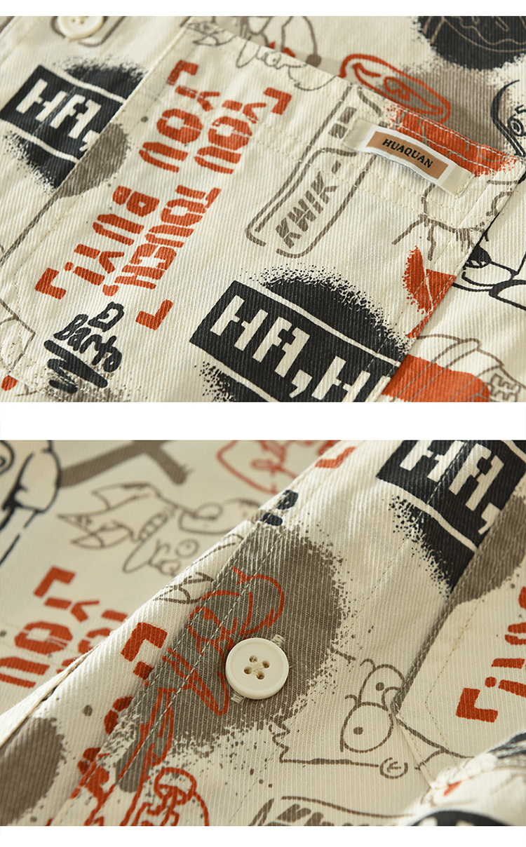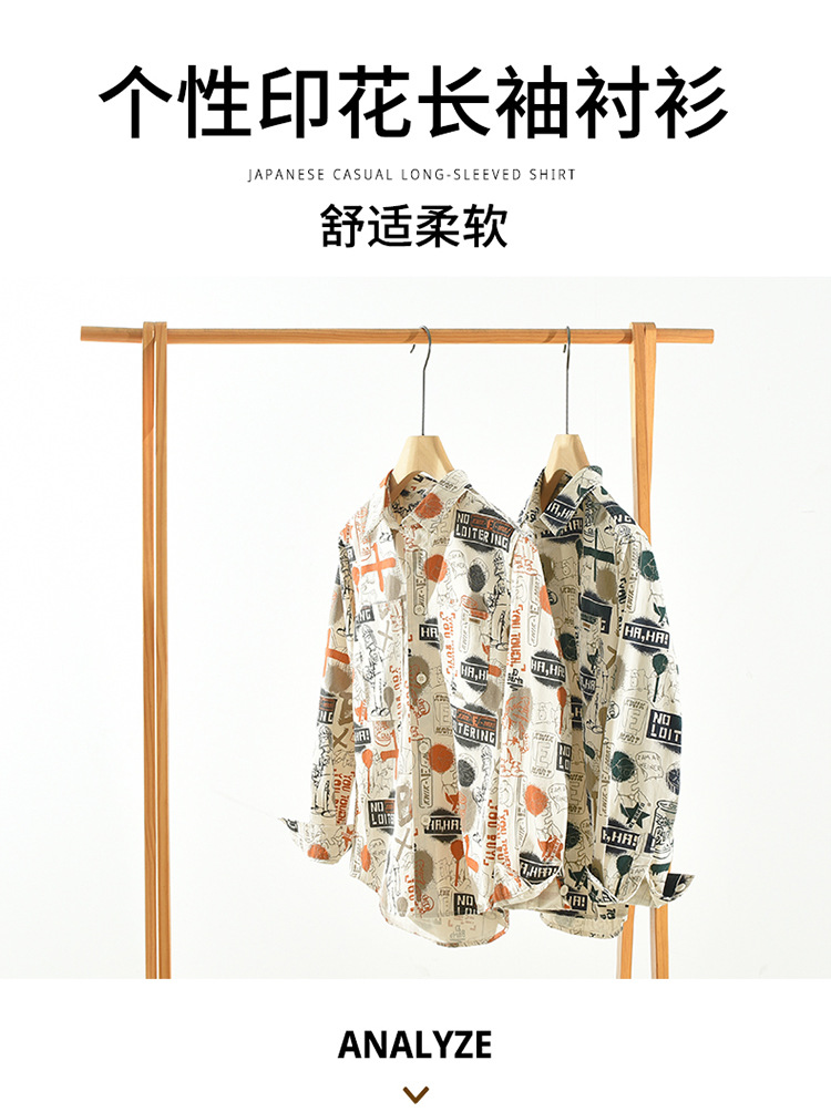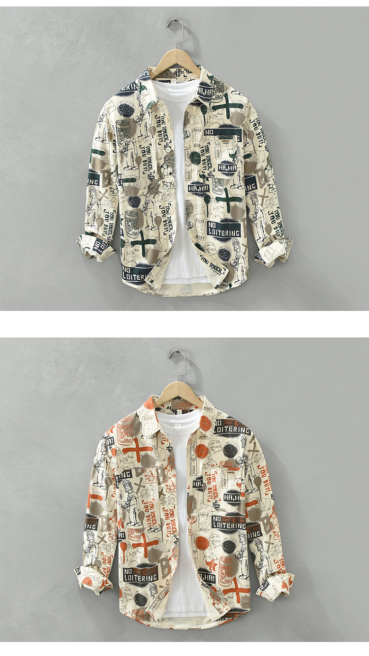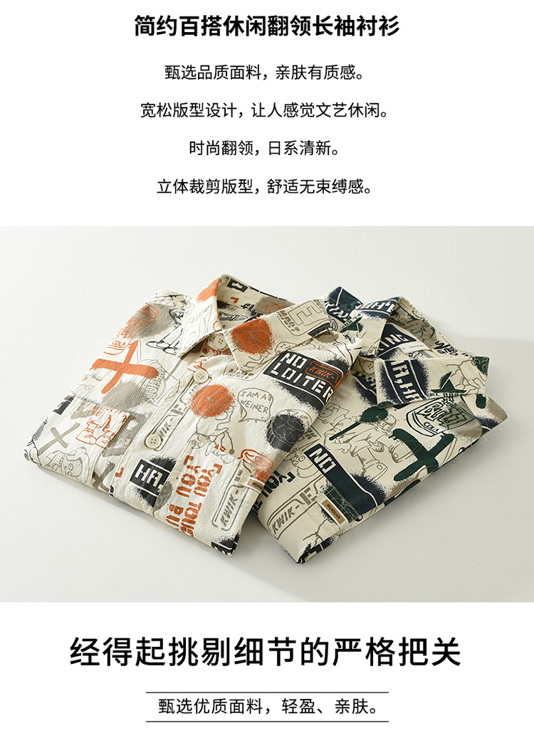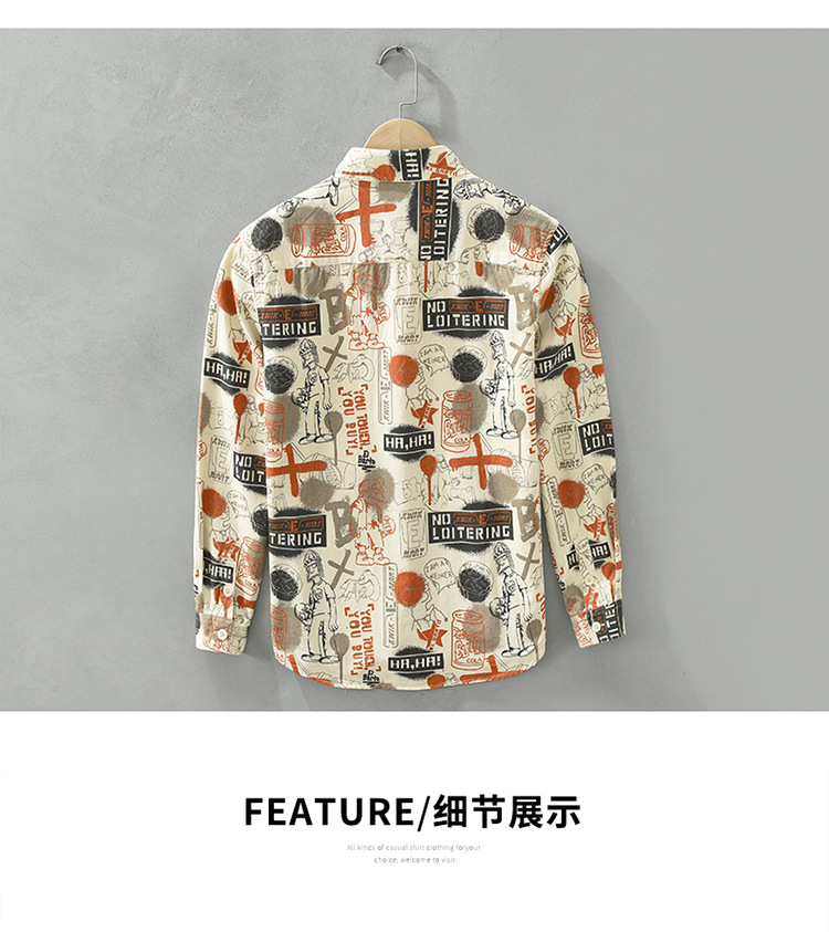 전체 인쇄 패션 디자인 센스 긴 소매 셔츠 남자의 봄과 가을 새로운 독특한 인쇄 캐주얼 셔츠 느슨한 손잡이스토어 가기