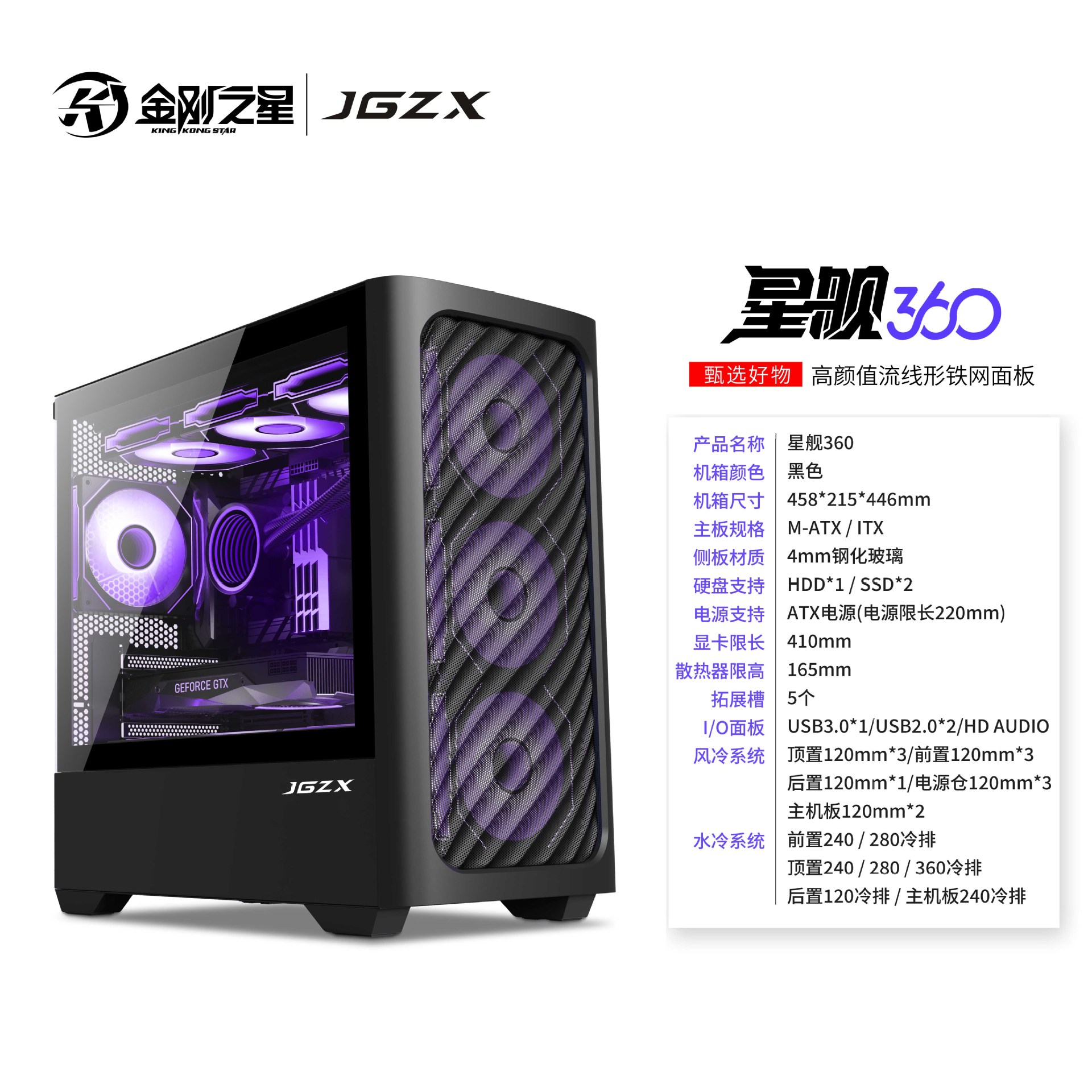 스타쉽 e스포츠 게임 케이스 360도 전면 투명 강화유리 데스크탑 컴퓨터 케이스 해외배송 블랙 mATX