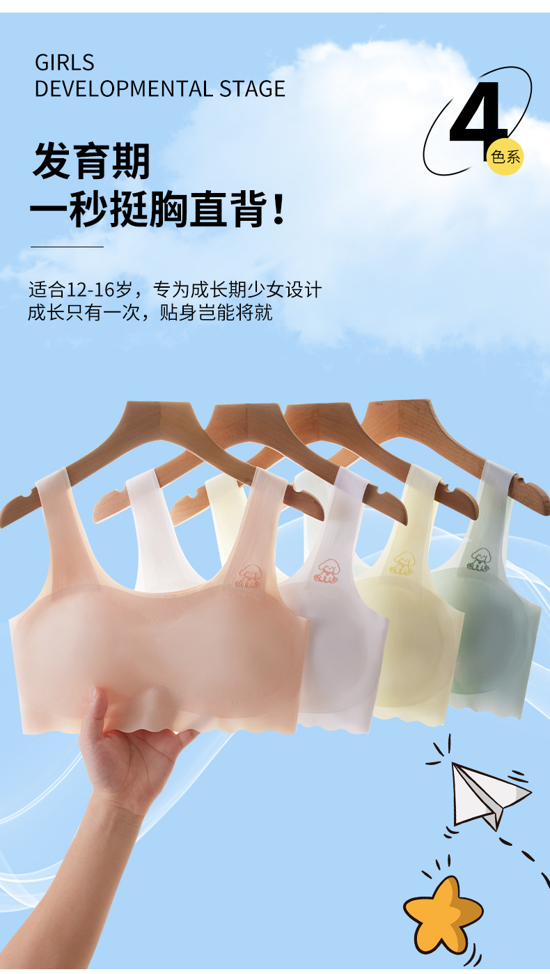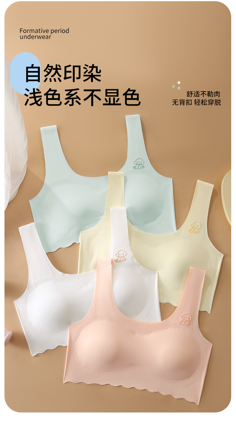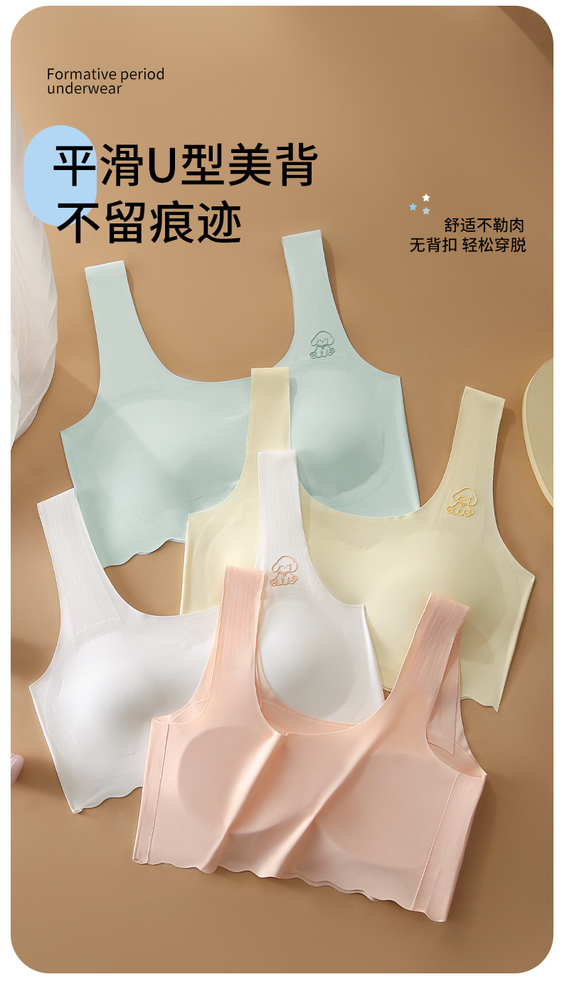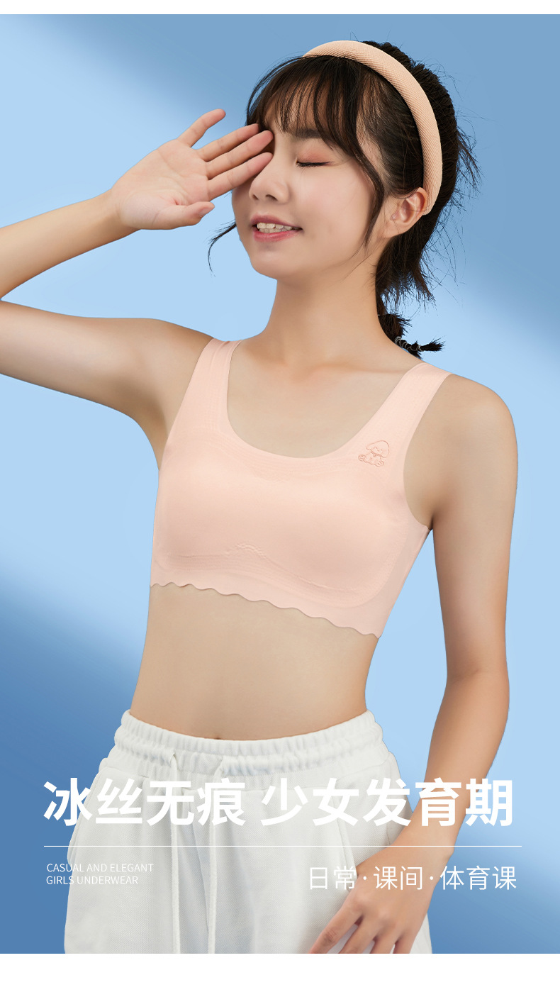 발달 소녀 속옷 여아 튜브 탑 아이스 실크 추적없는 조끼 초등 및 중등 학교 학생을위한 통기성 고정 속옷