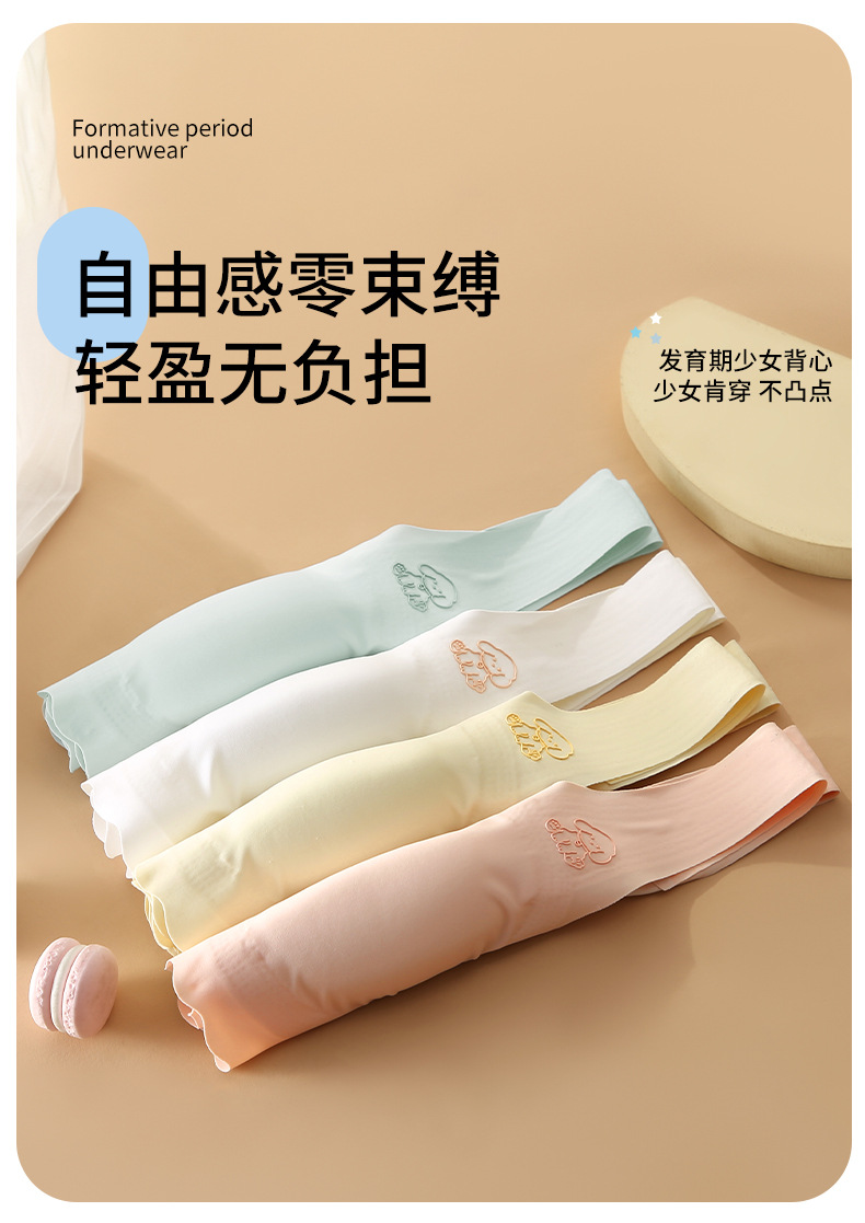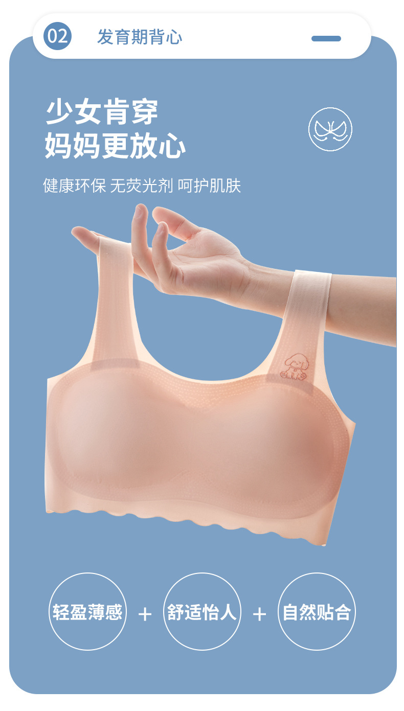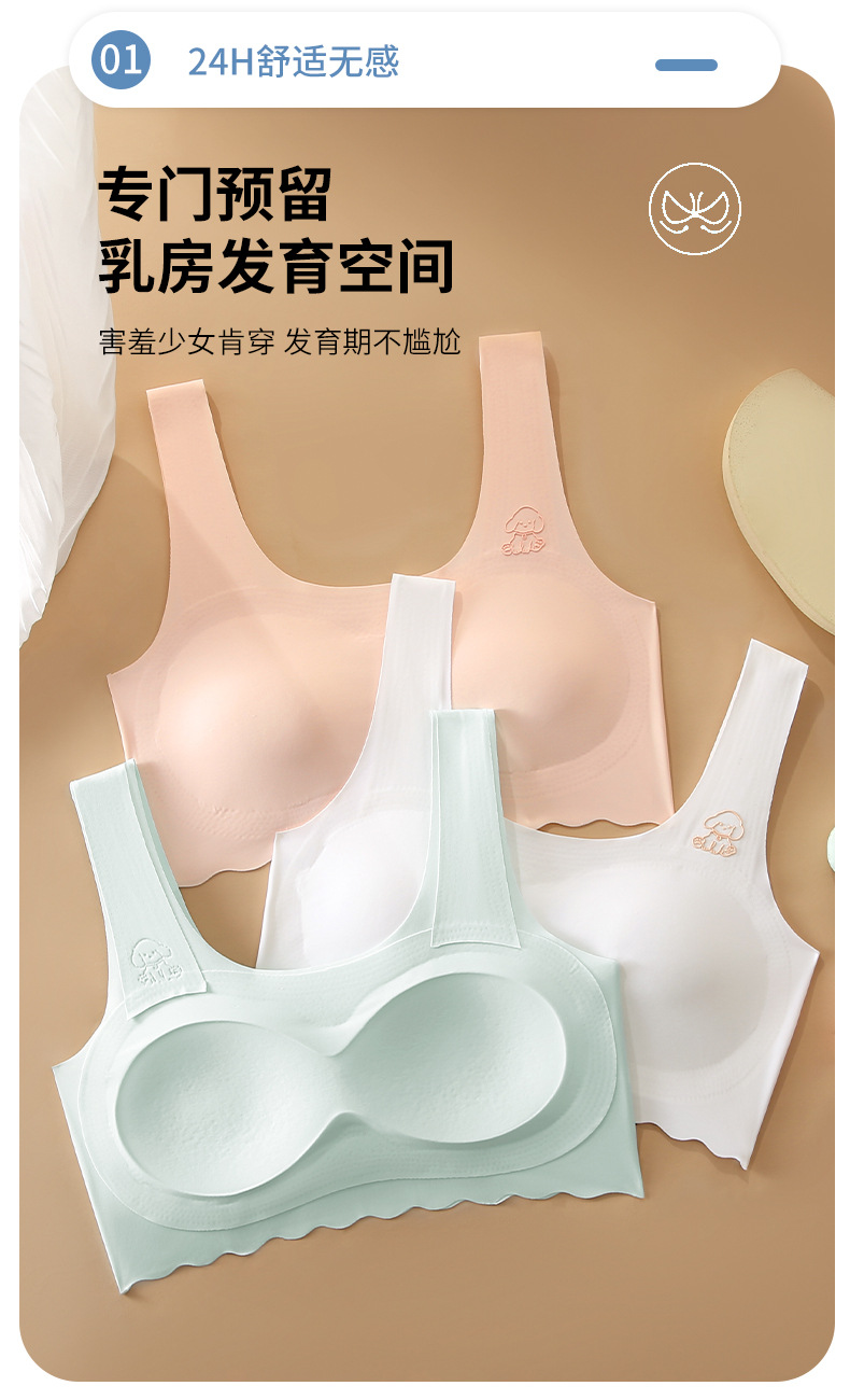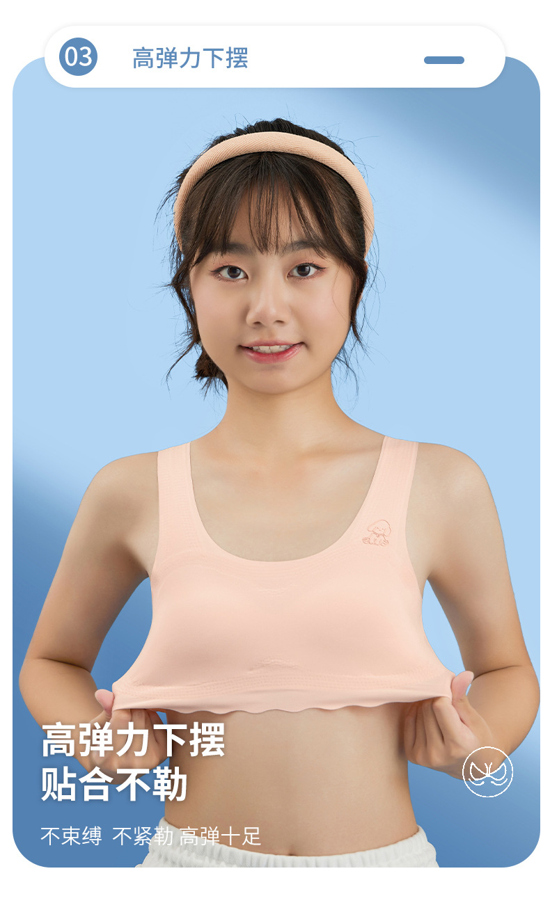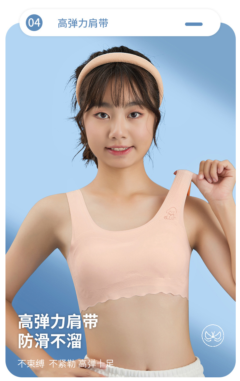 발달 소녀 속옷 여아 튜브 탑 아이스 실크 추적없는 조끼 초등 및 중등 학교 학생을위한 통기성 고정 속옷
