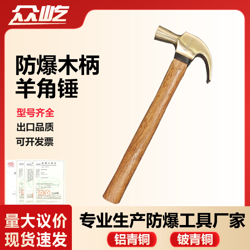 공장용 특수 금속 수공구 알루미늄 청동 베릴륨 청동 망치 햄머 헤드 무화염 방폭 목재 손잡이 망치스토어 가기