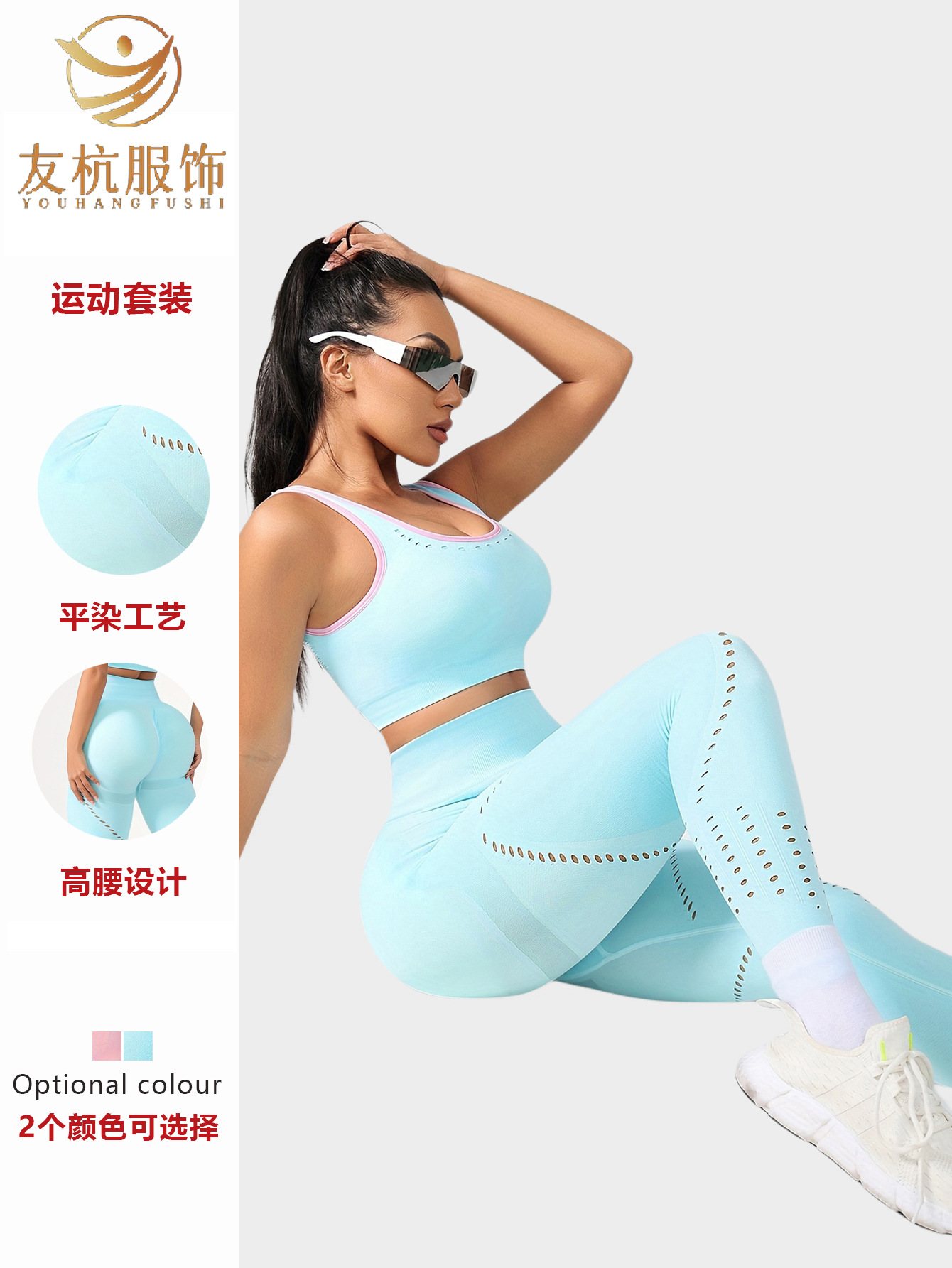 제조업체의 심리스 요가 세트, 여성용 스포츠 브라, 타이트한 피트니스 요가 팬츠, 힙업 레깅스, 피치힙, 솔리드 컬러