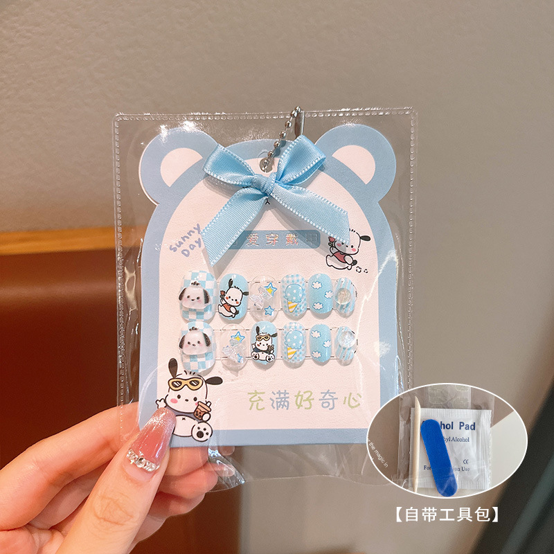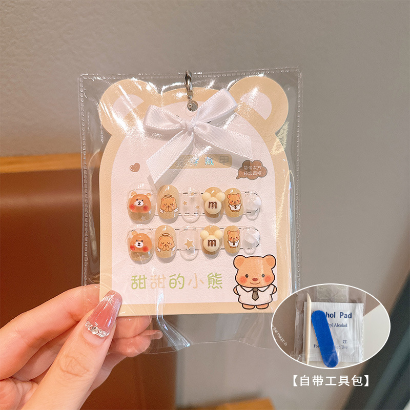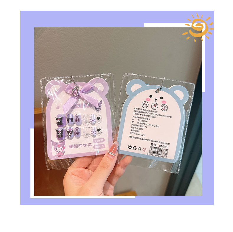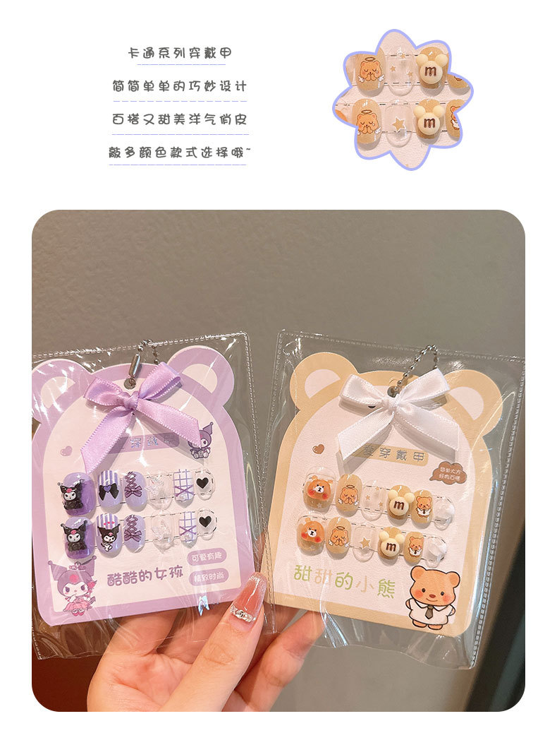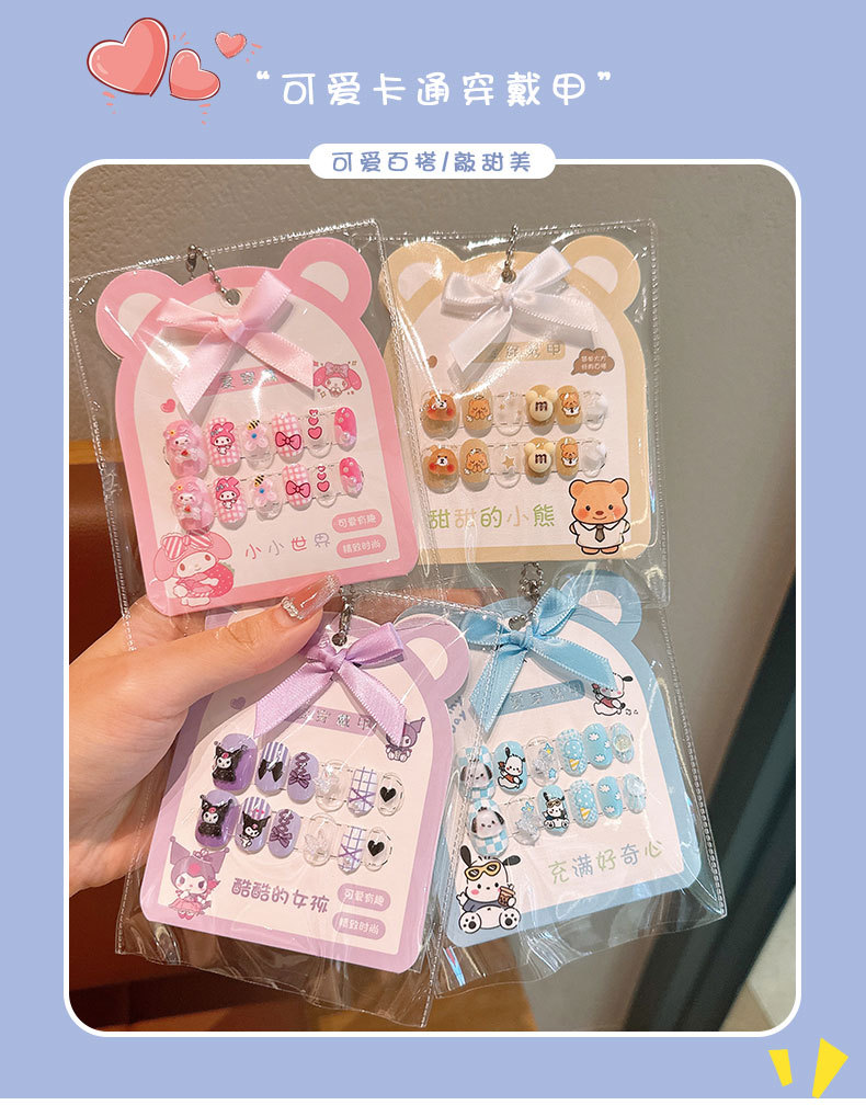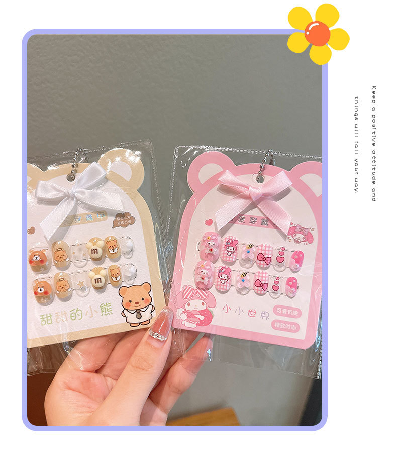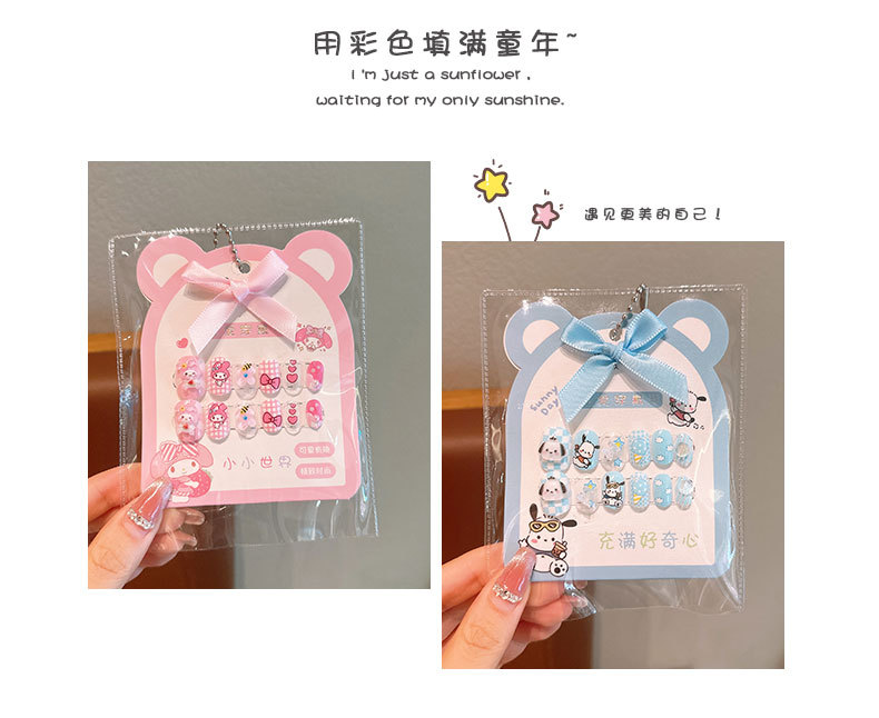 어린이 만화 프린트 달콤한 네일 스티커 학생 소녀용 탈부착 가능한 네일 12개 소녀 네일 액세서리