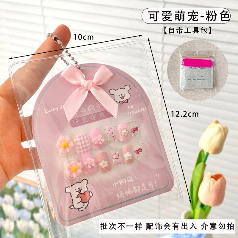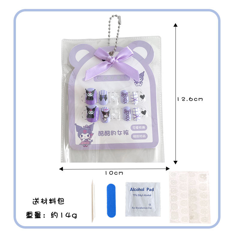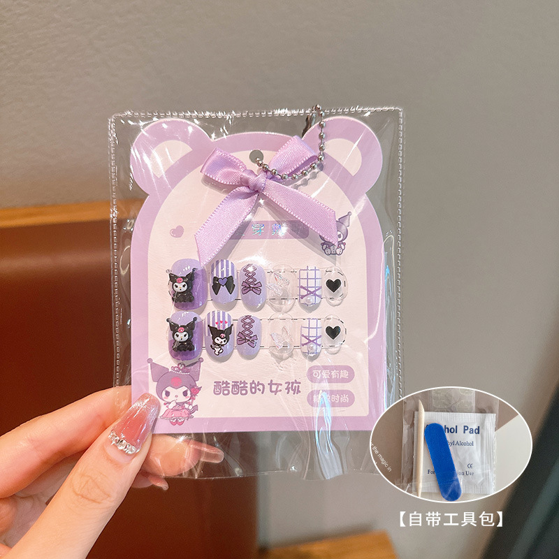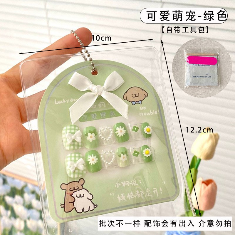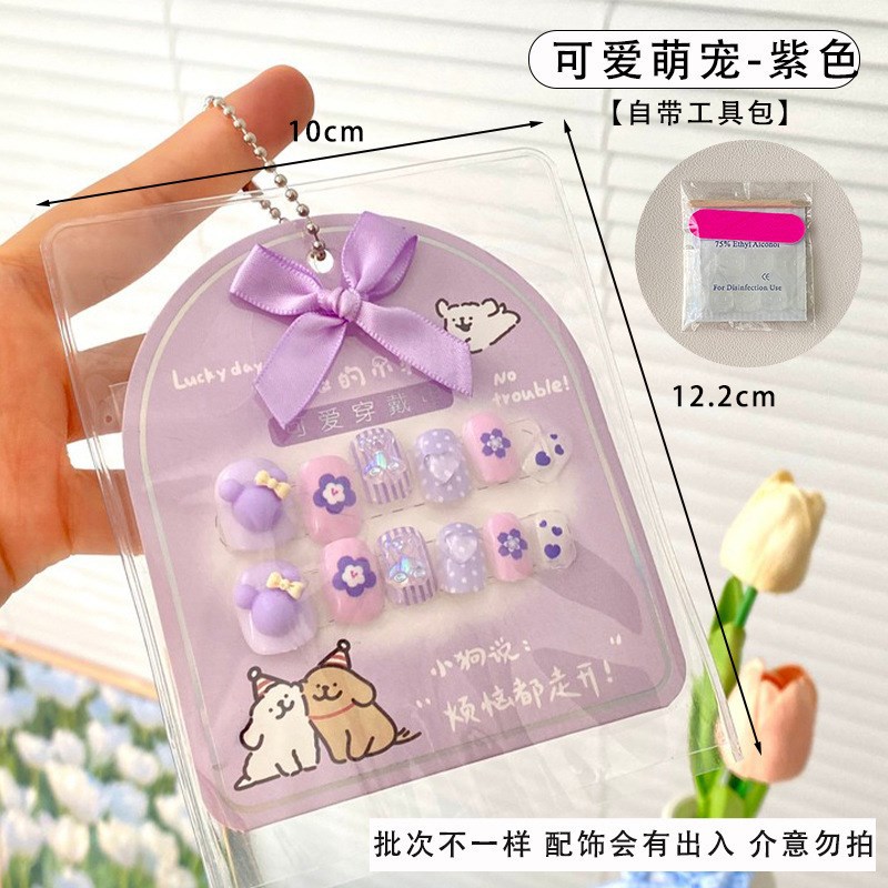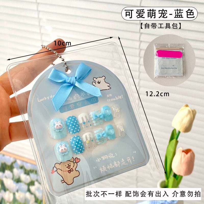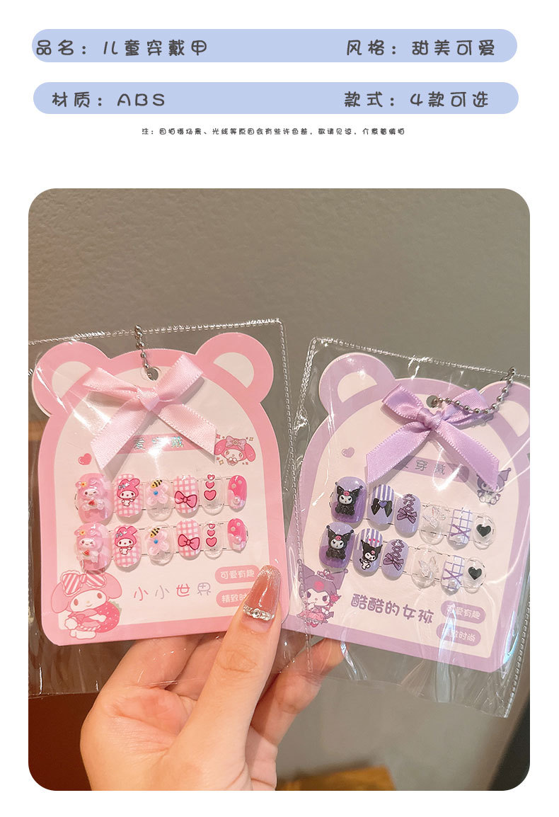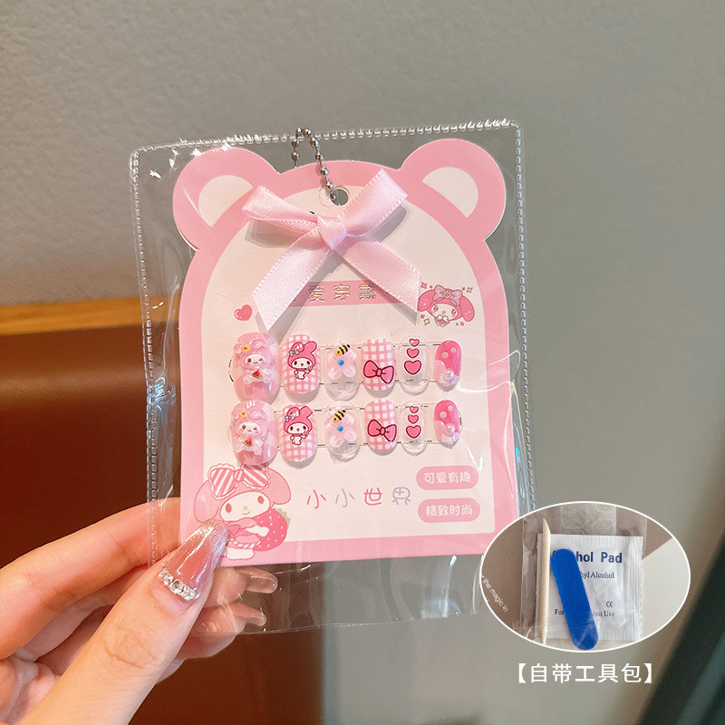 어린이 만화 프린트 달콤한 네일 스티커 학생 소녀용 탈부착 가능한 네일 12개 소녀 네일 액세서리