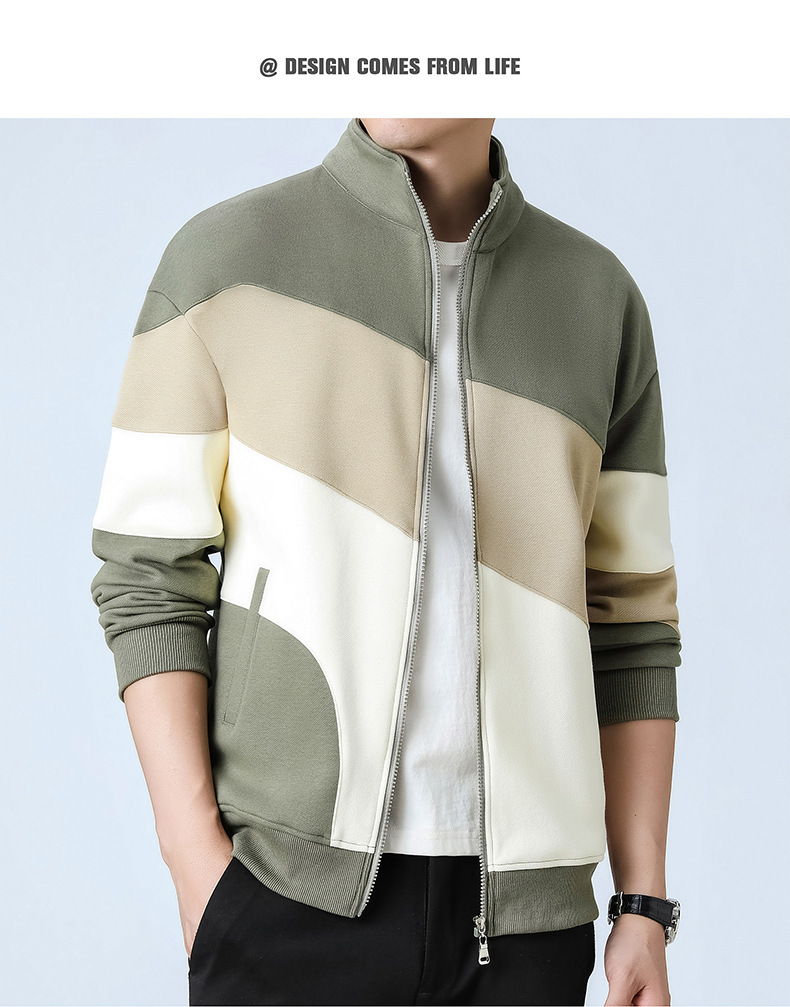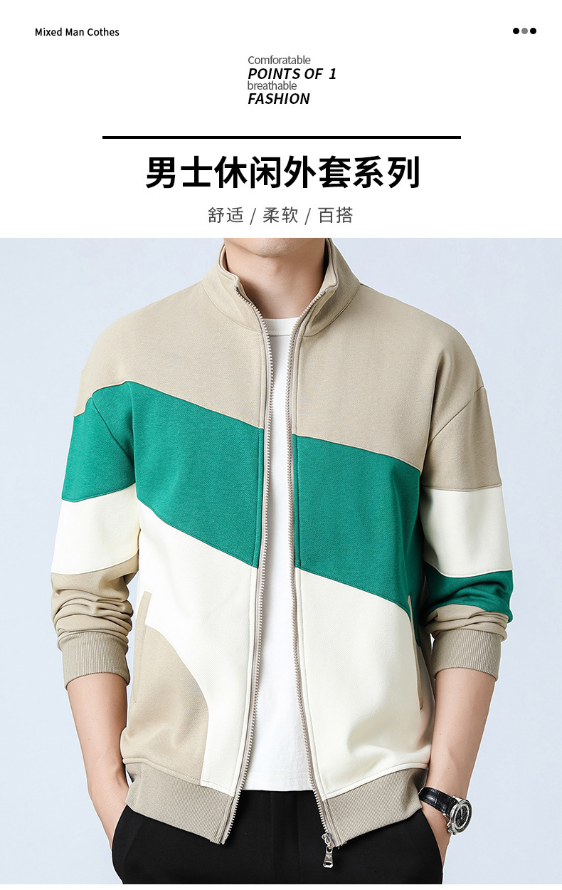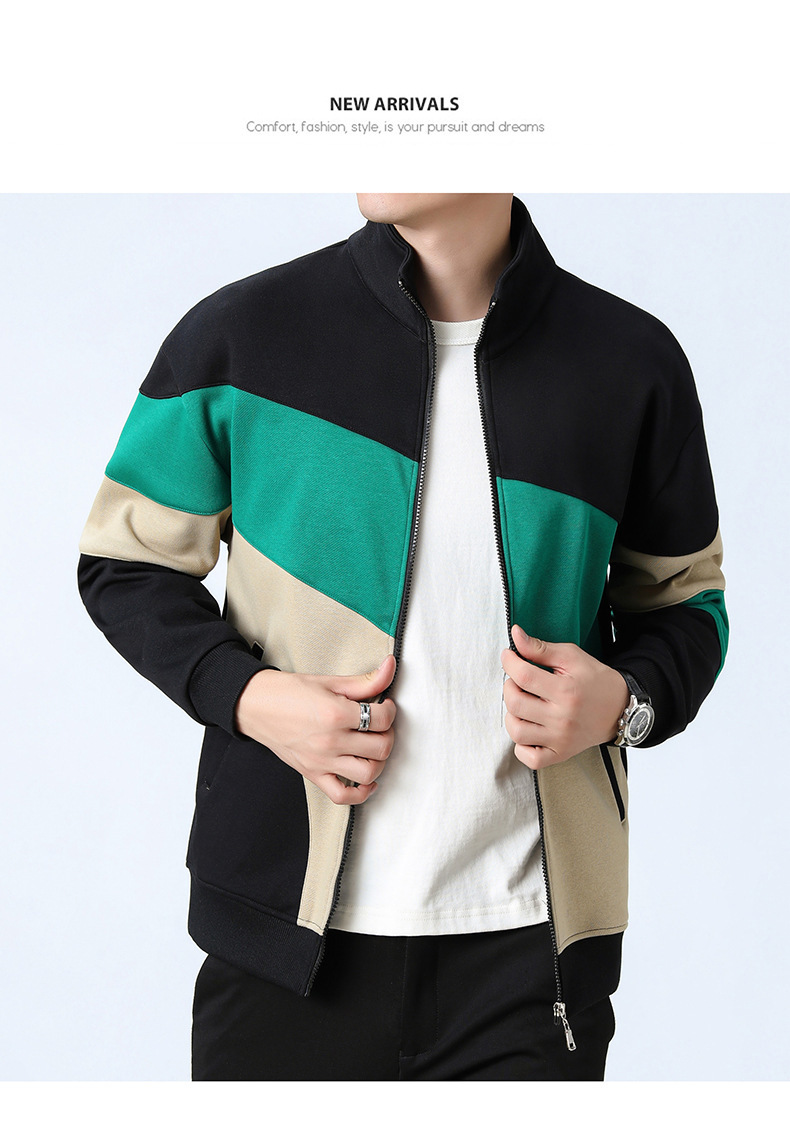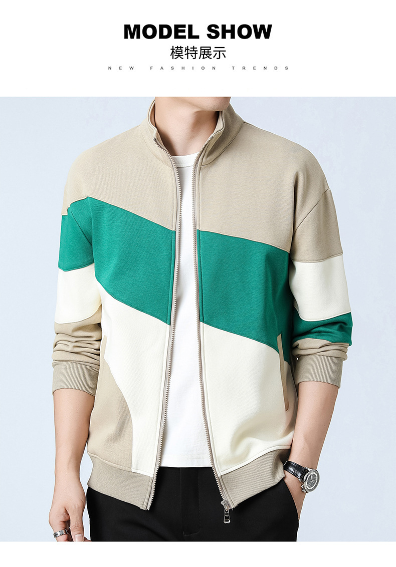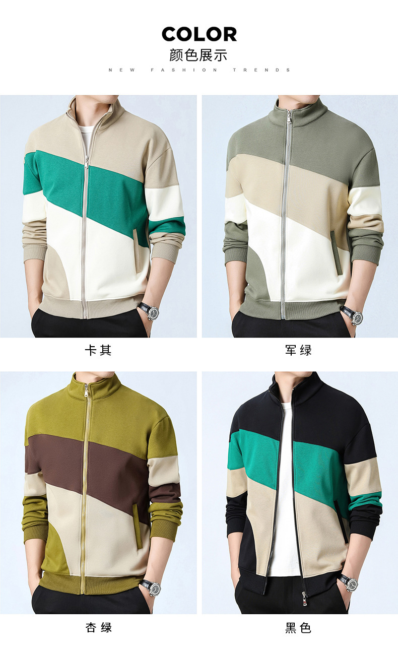 2023新款卫衣男士开衫运动休闲潮款外套日系拼色外套立领男外套