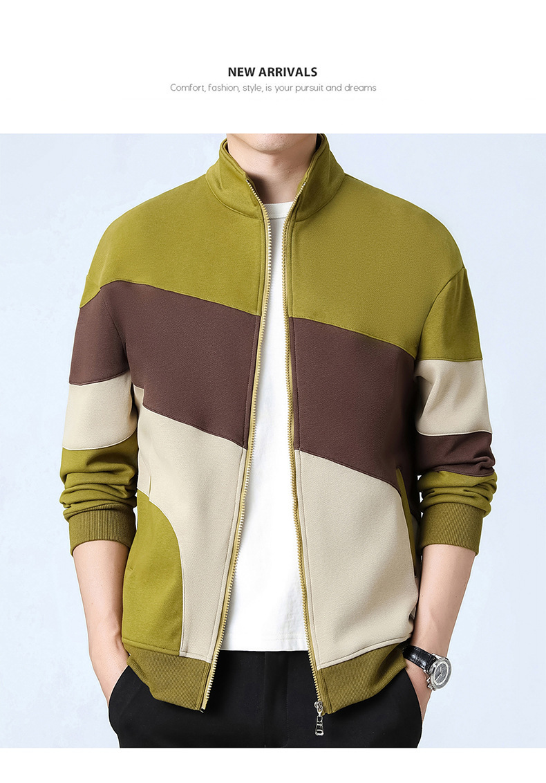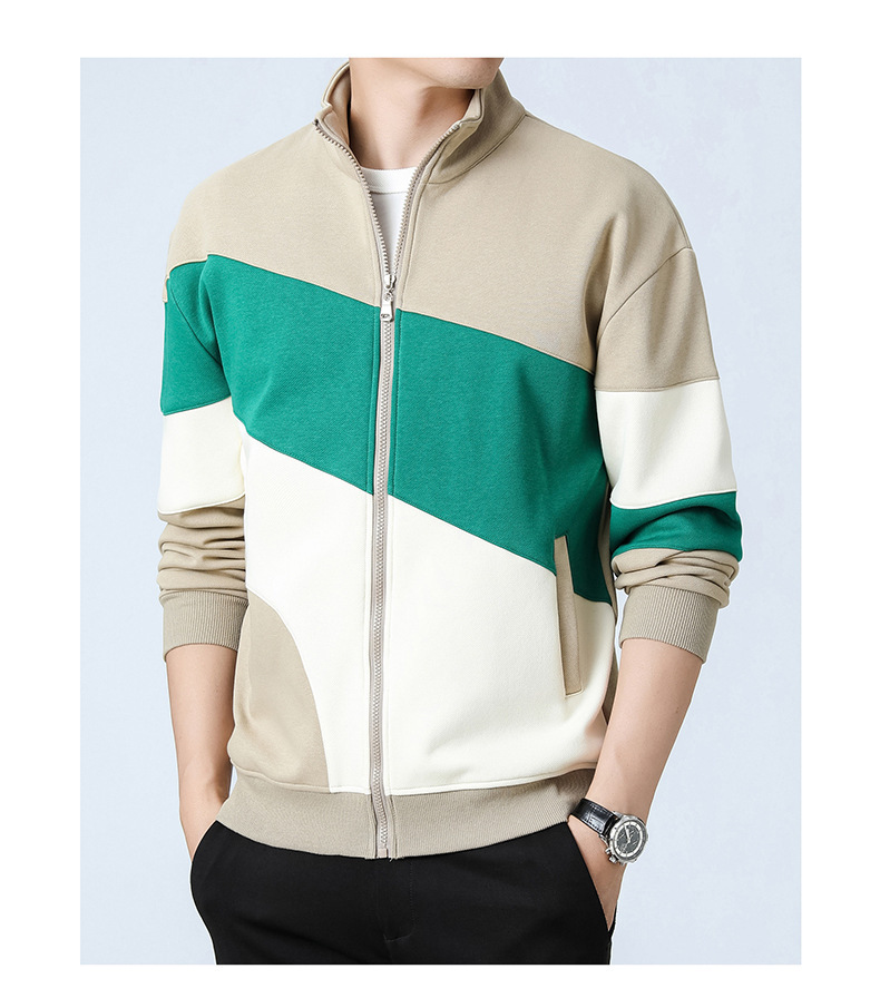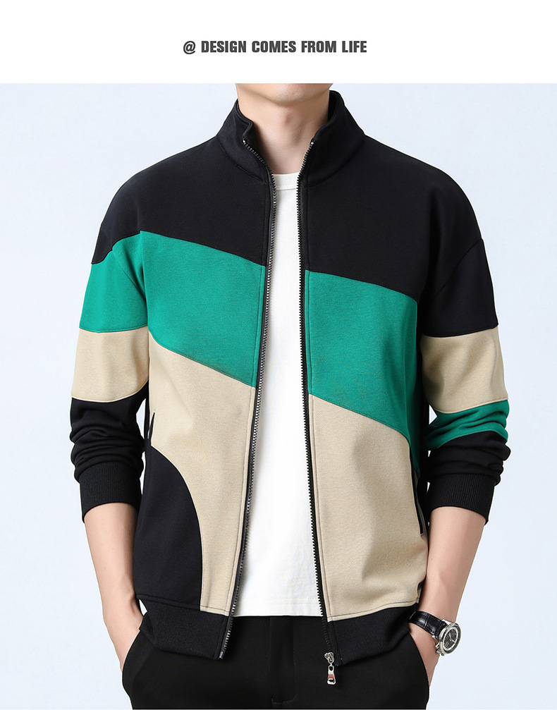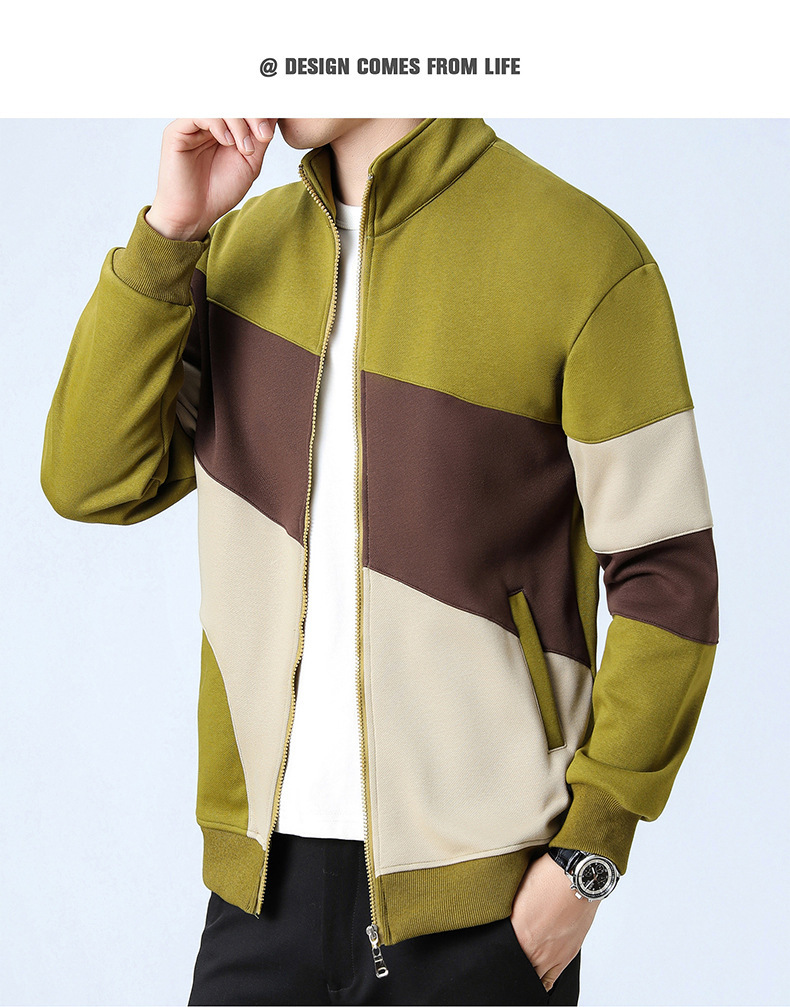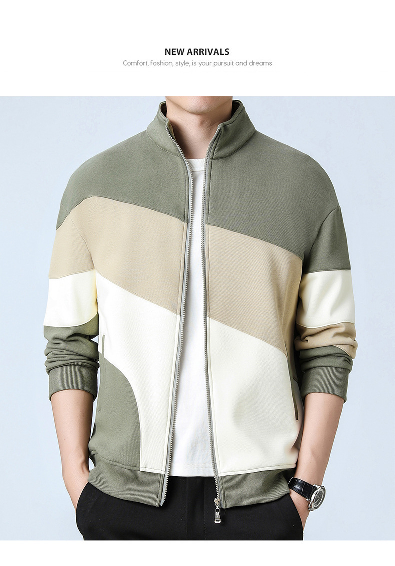 2023新款卫衣男士开衫运动休闲潮款外套日系拼色外套立领男外套