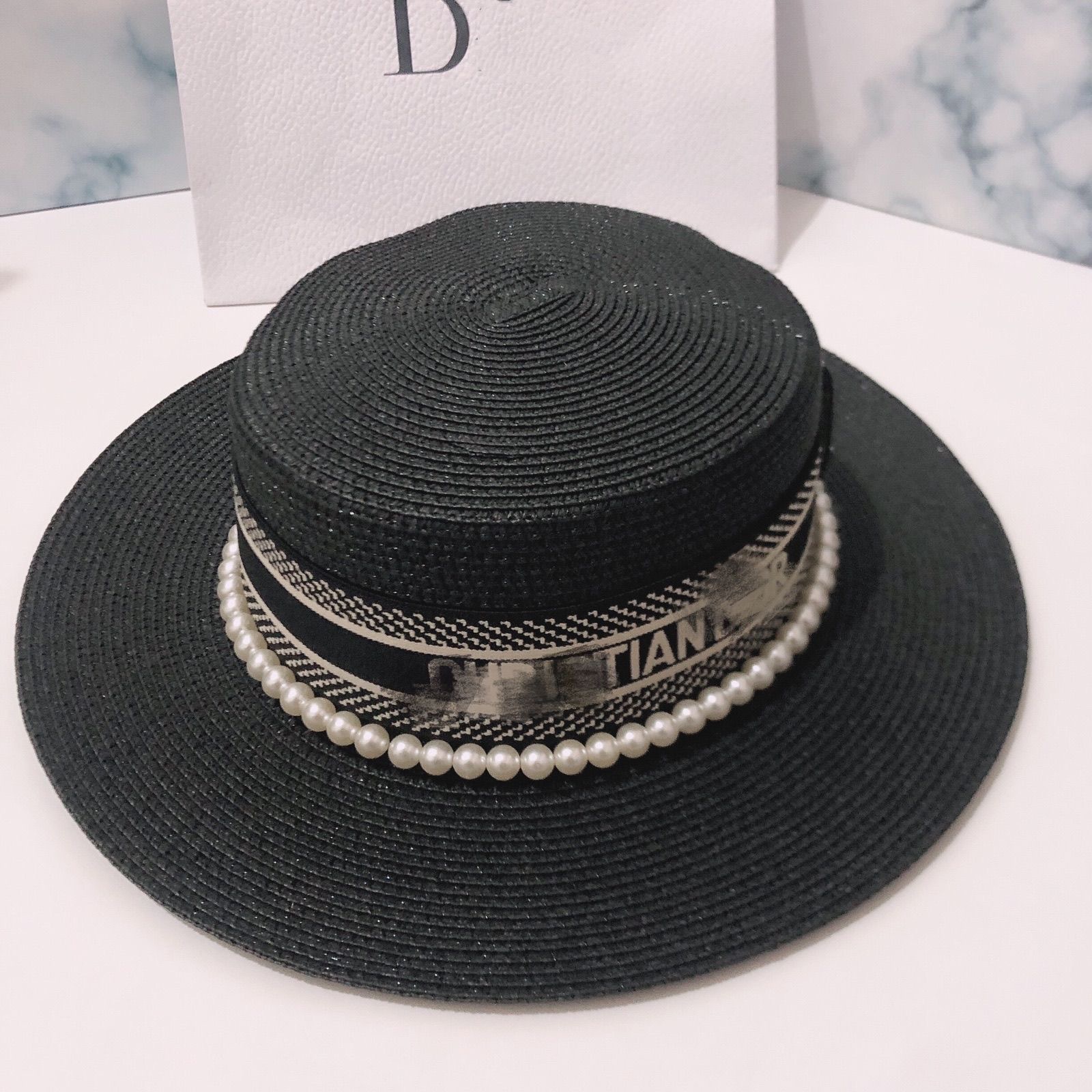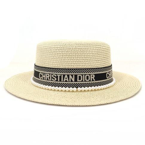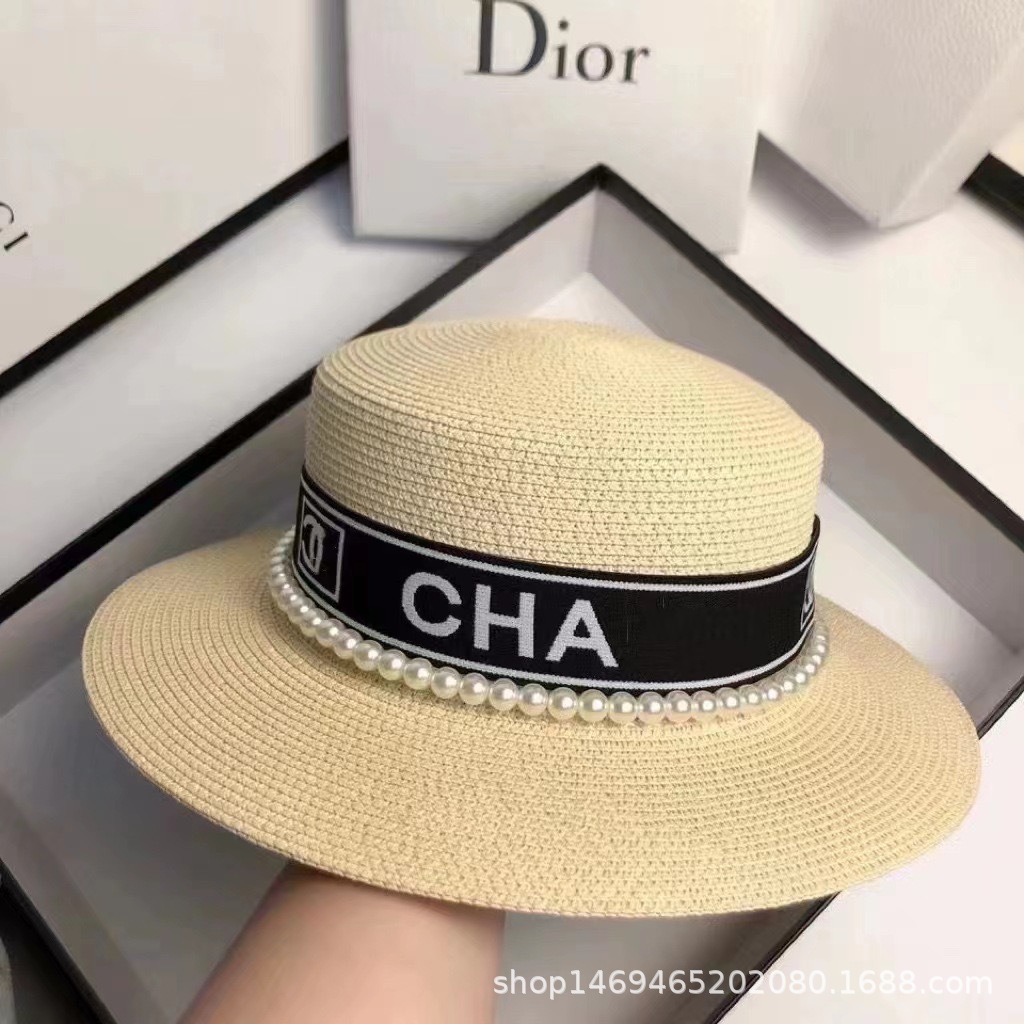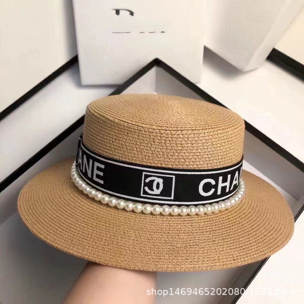 여성용 봄여름 모자, 패셔너블하고 다용도로 활용 가능한 레트로 진주 장식 휴가용 밀짚모자, 평평한 상단, 자외선 차단, 해변 여행에 적합스토어 가기