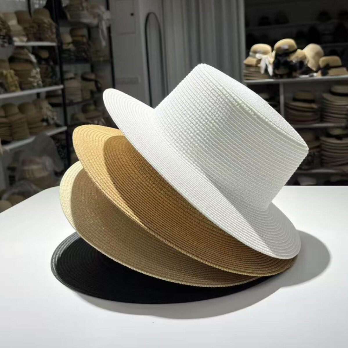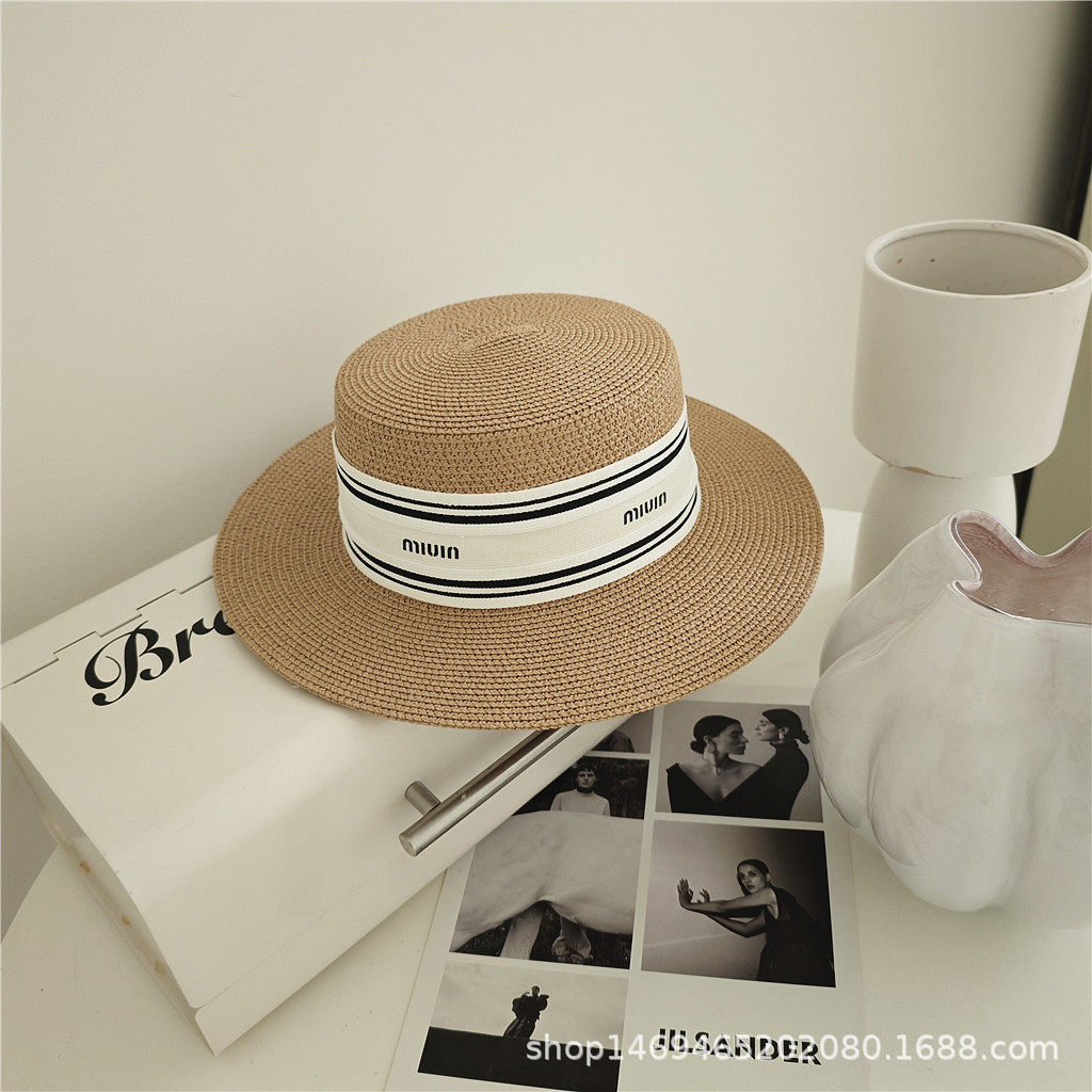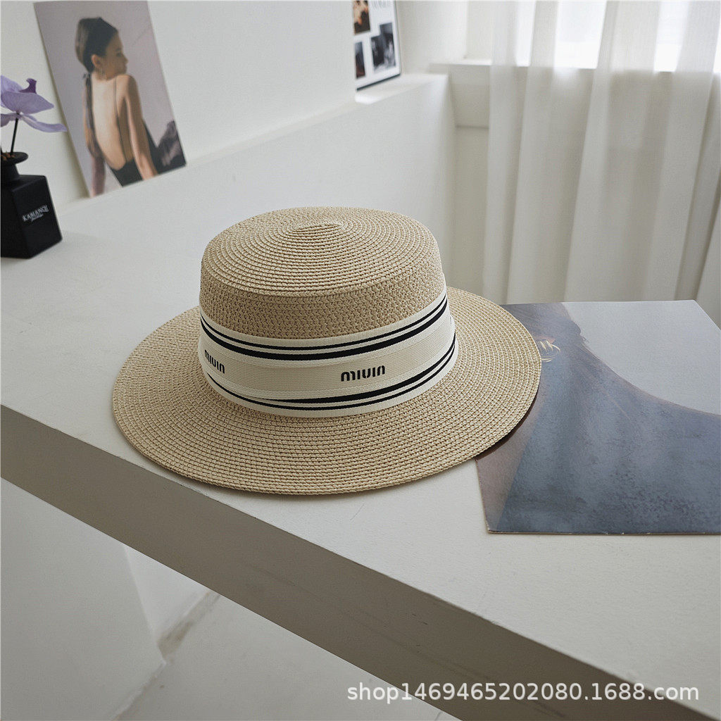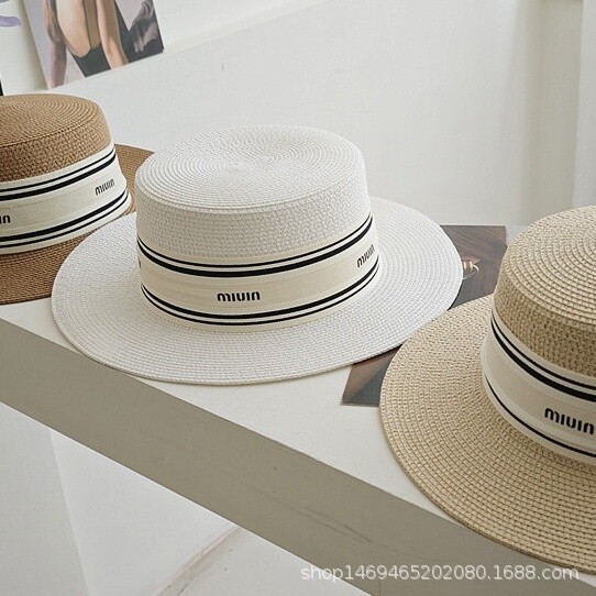 여성용 봄여름 모자, 패셔너블하고 다용도로 활용 가능한 레트로 진주 장식 휴가용 밀짚모자, 평평한 상단, 자외선 차단, 해변 여행에 적합스토어 가기