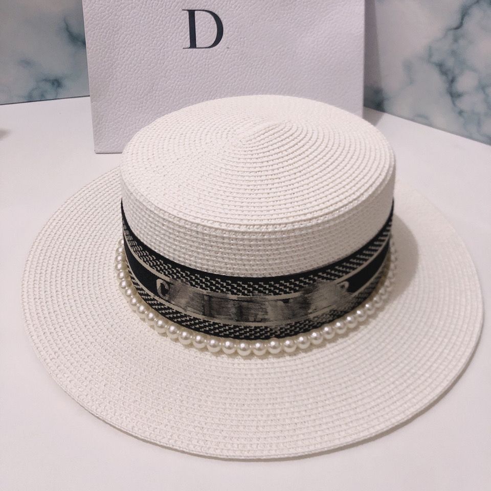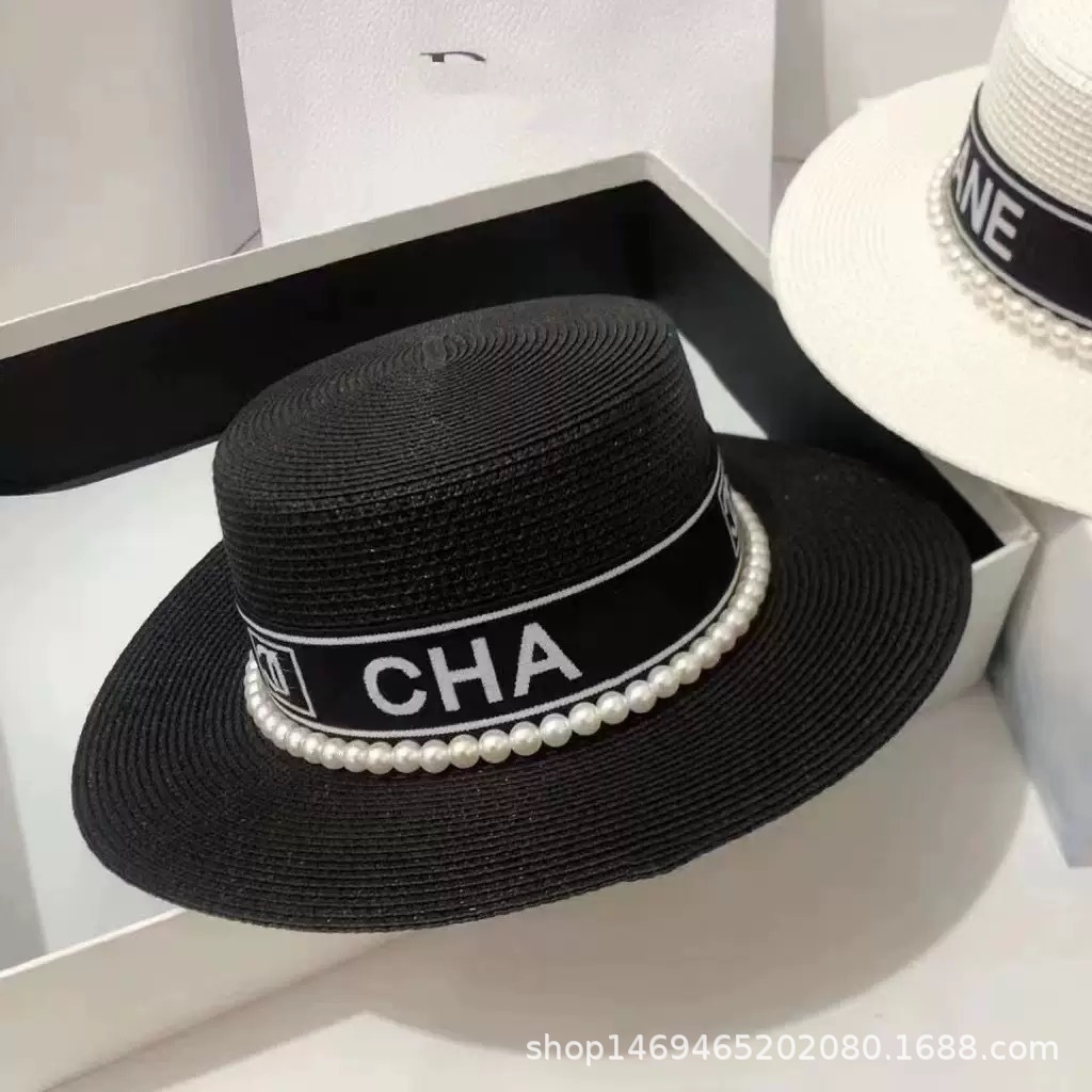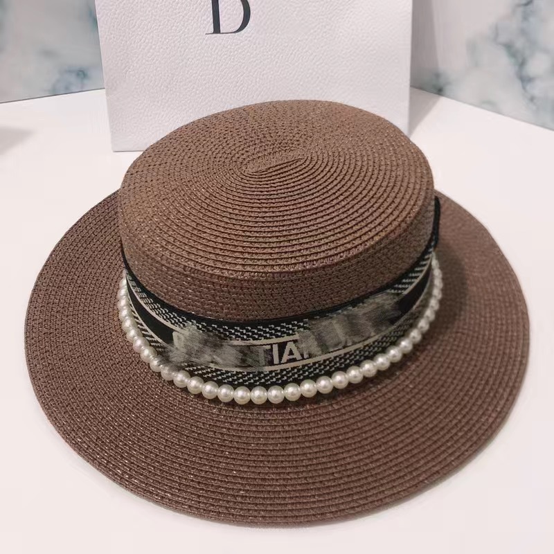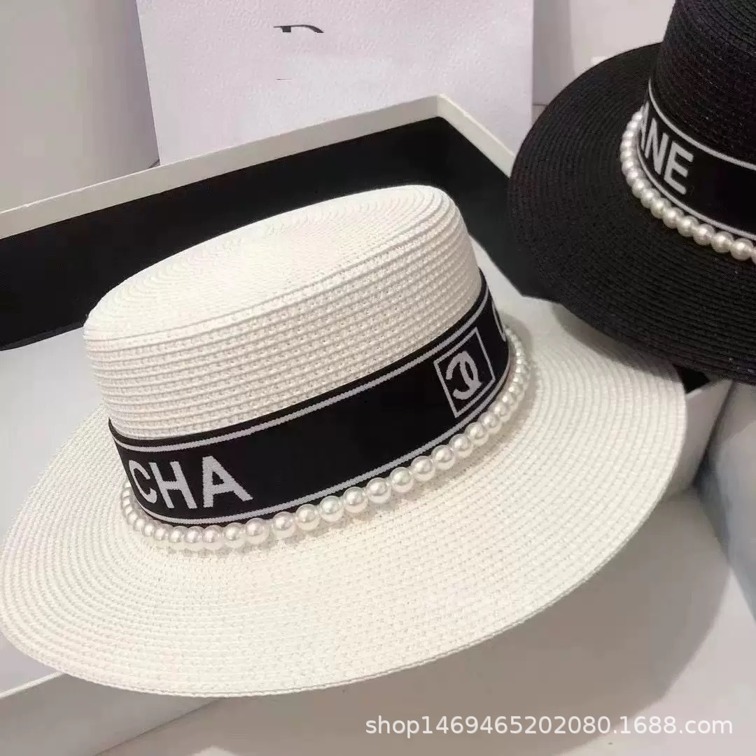 여성용 봄여름 모자, 패셔너블하고 다용도로 활용 가능한 레트로 진주 장식 휴가용 밀짚모자, 평평한 상단, 자외선 차단, 해변 여행에 적합