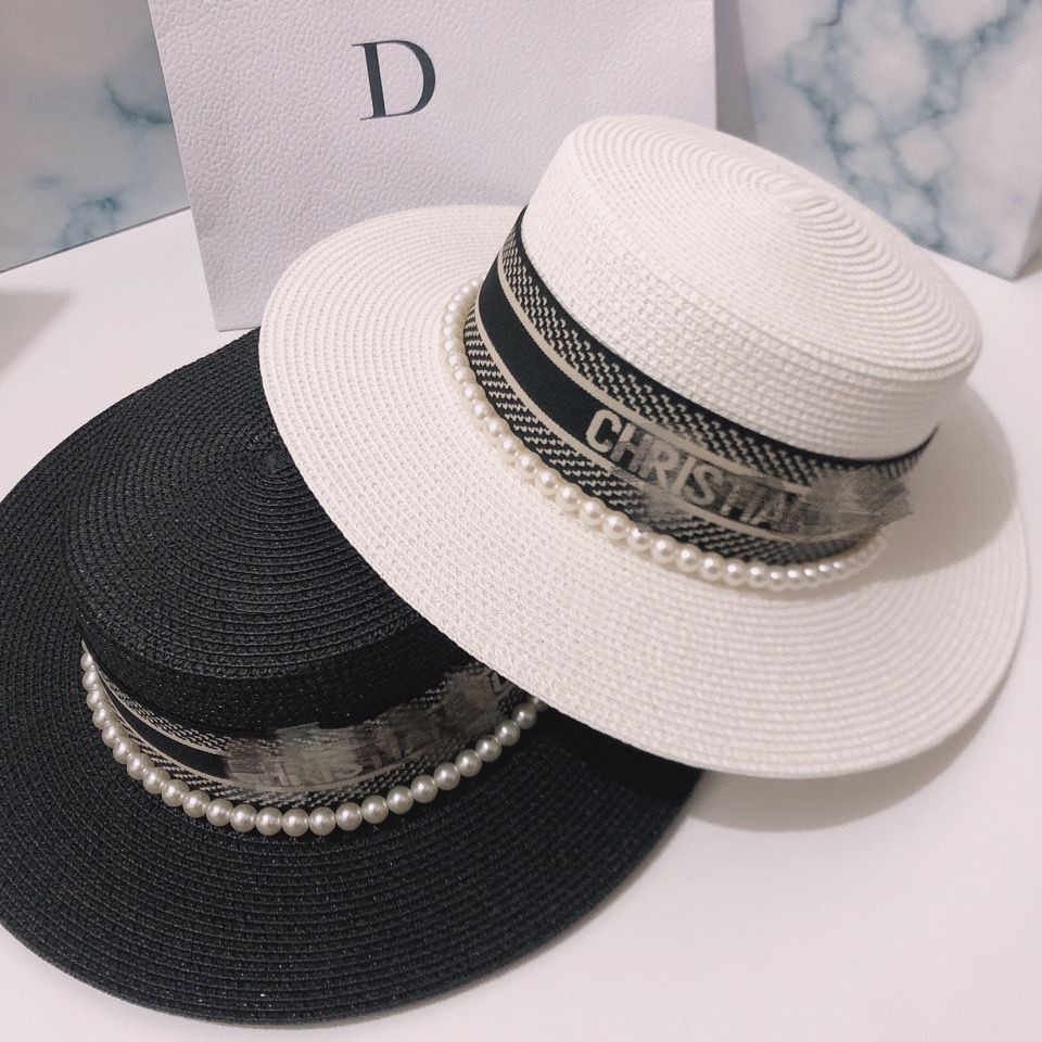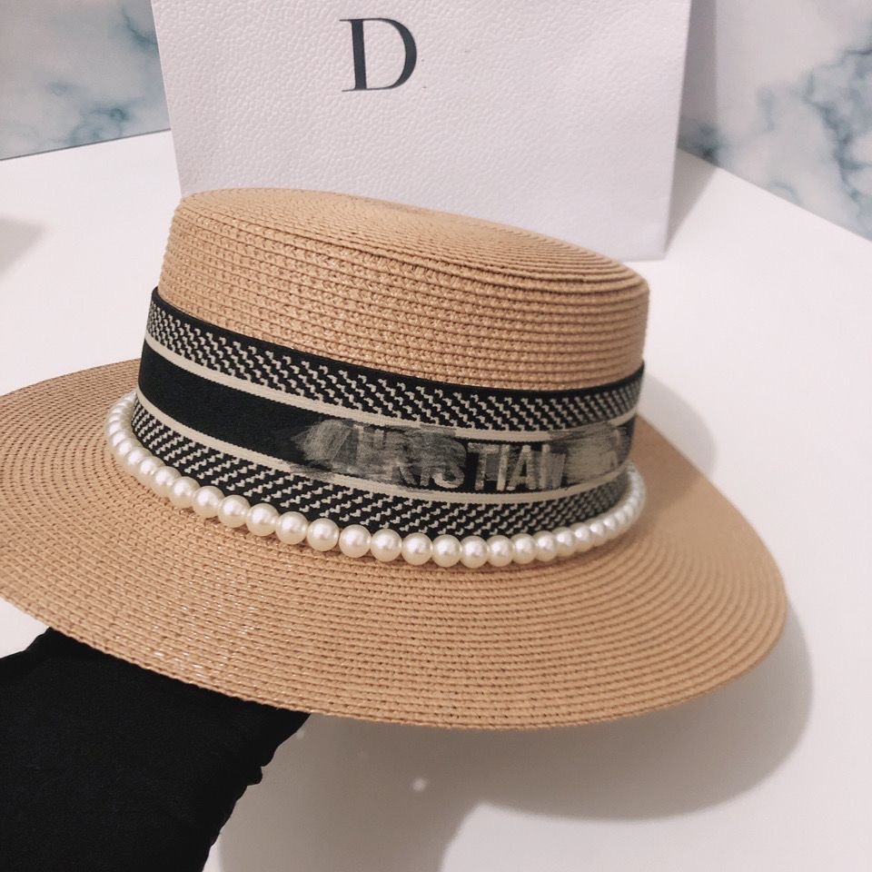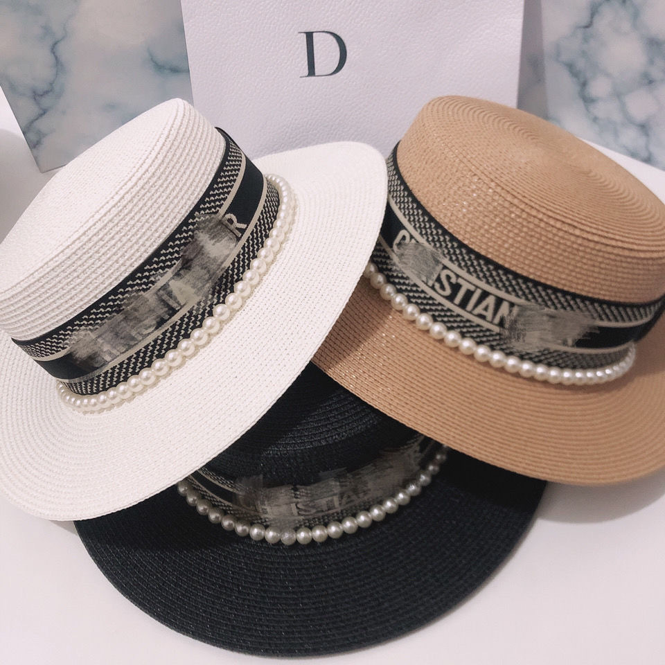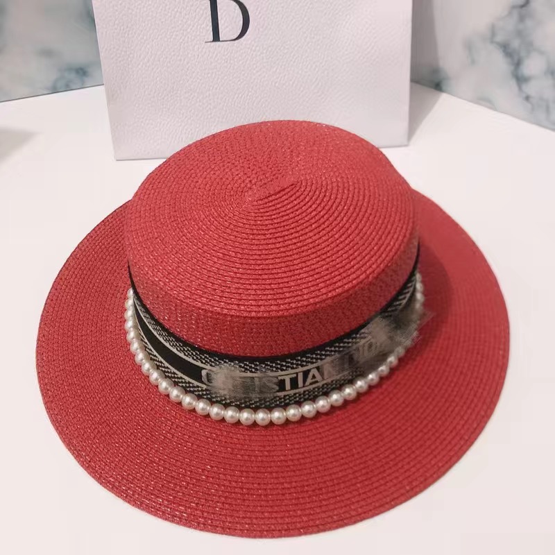 여성용 봄여름 모자, 패셔너블하고 다용도로 활용 가능한 레트로 진주 장식 휴가용 밀짚모자, 평평한 상단, 자외선 차단, 해변 여행에 적합