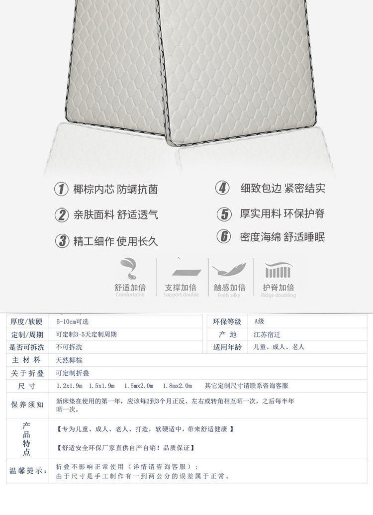 환경 보호 코코넛 팜 매트리스 더블 팜 매트 1.8m 하드 1.5m 두께 야자 경제 간단한 0.9m 접이식 매트리스스토어 가기