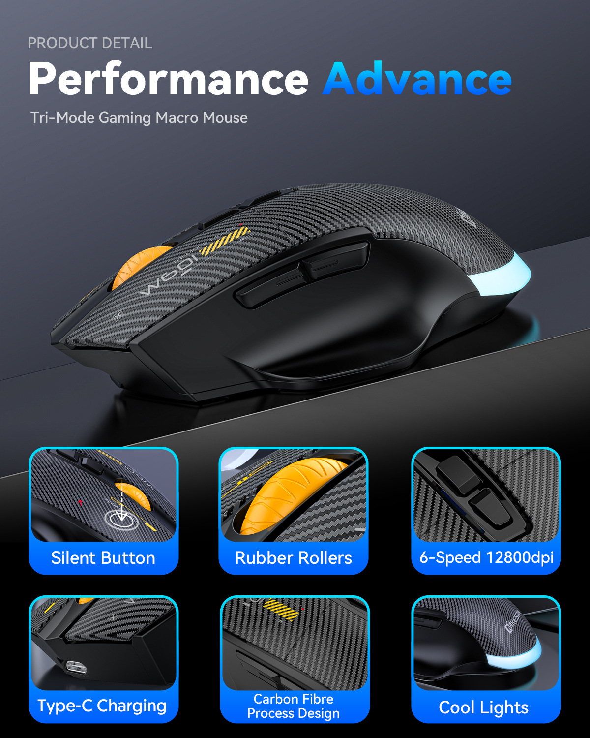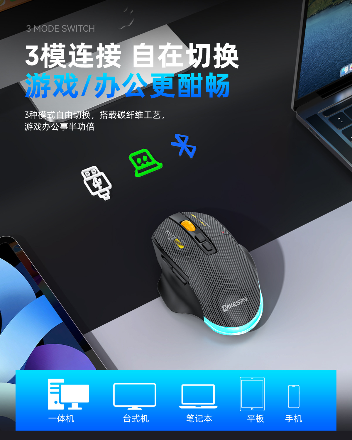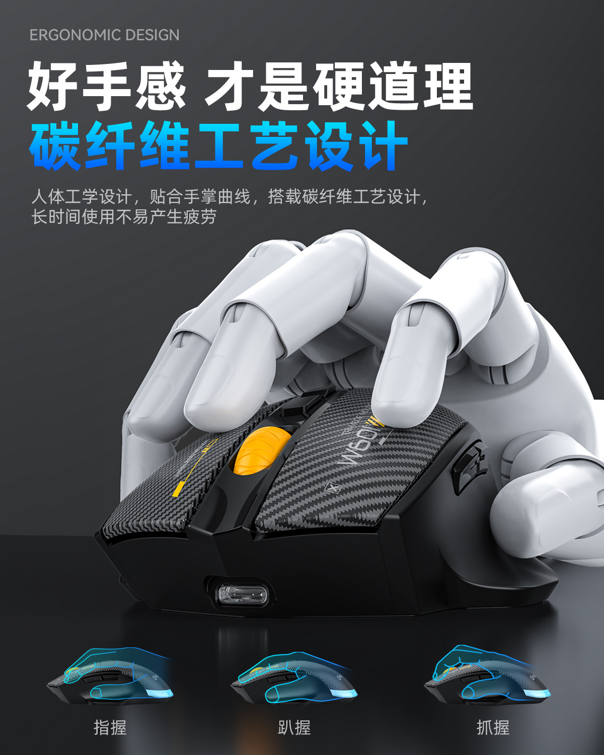 무선 3모드 마우스 하드웨어 매크로, 드라이버 프로그래밍 기능 탑재, TYPE-C 내장 충전, 탄소 섬유, 블루투스, 2.4G, 무소음
