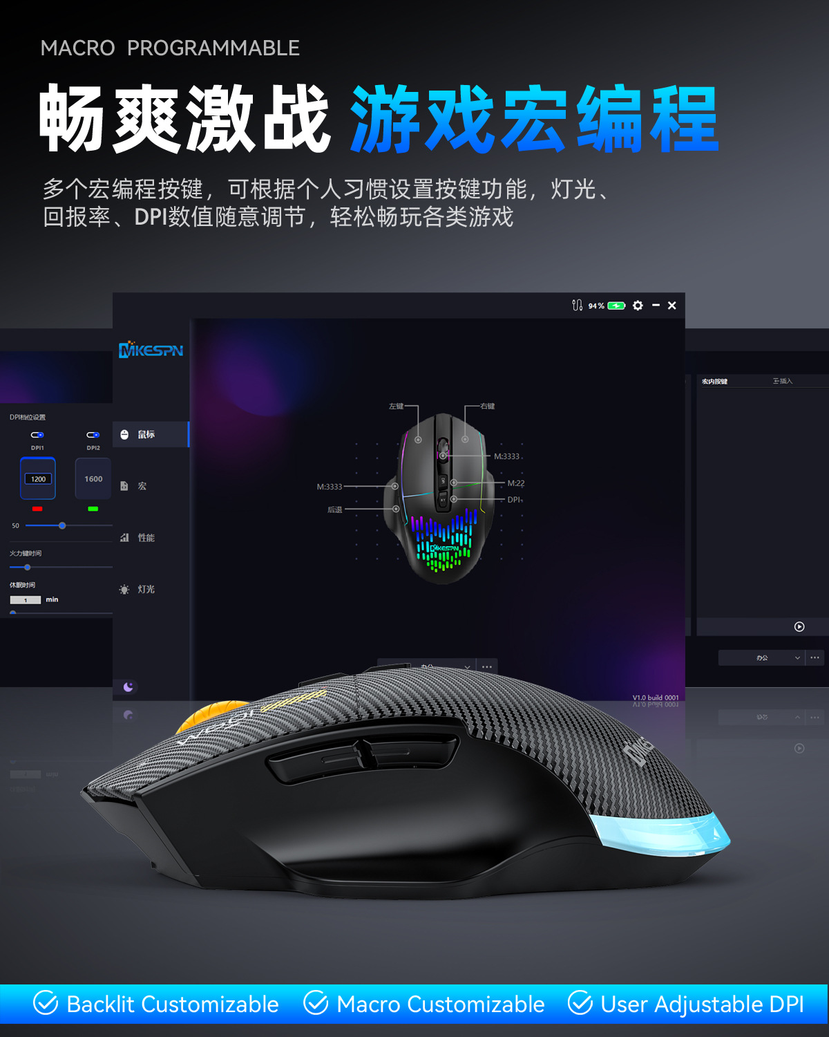 DP数值:最高12800DPI