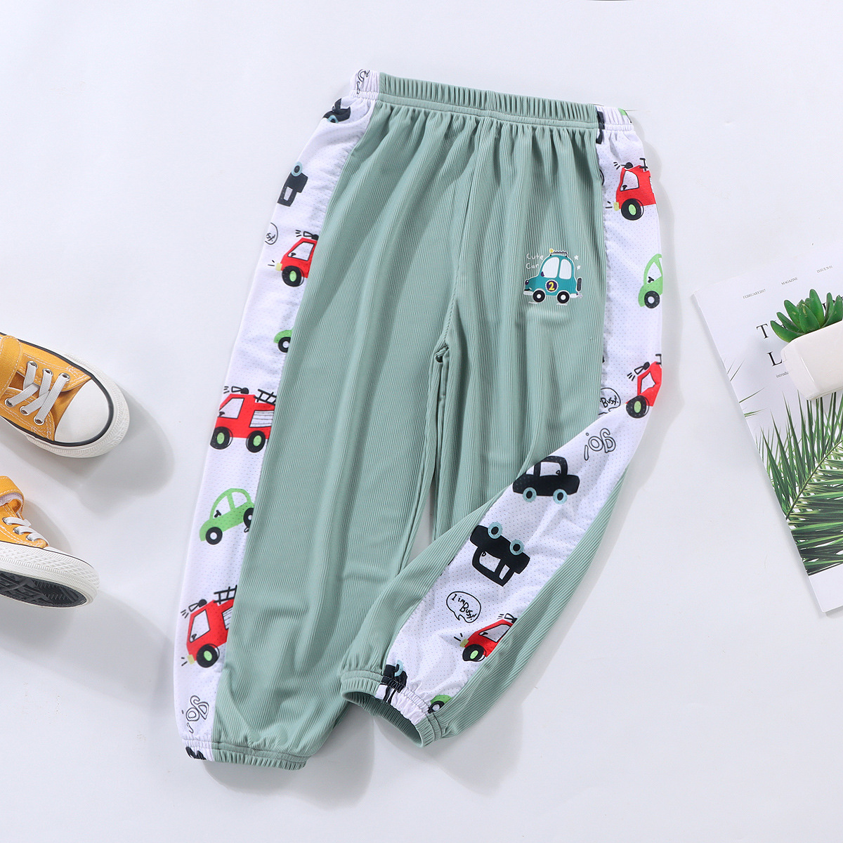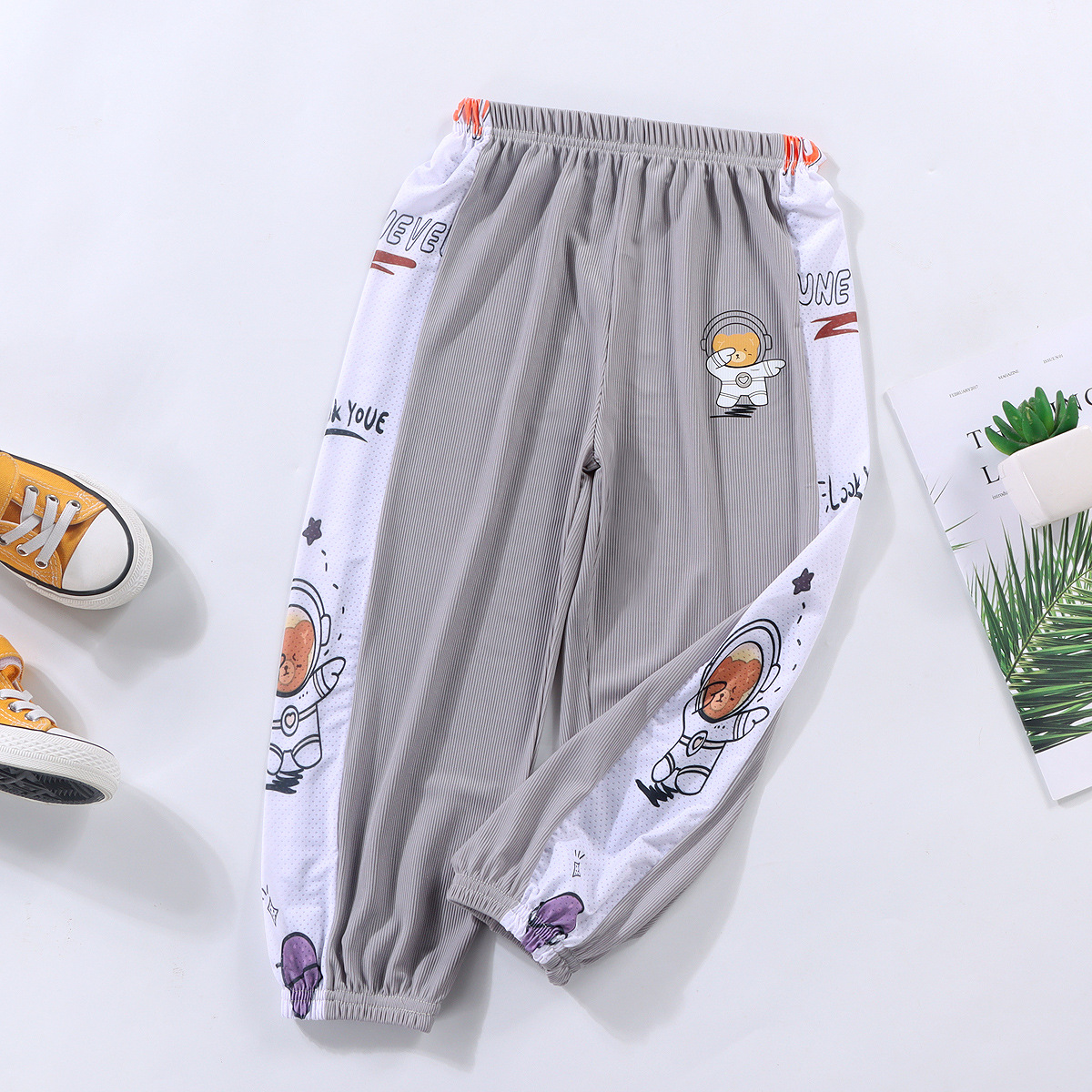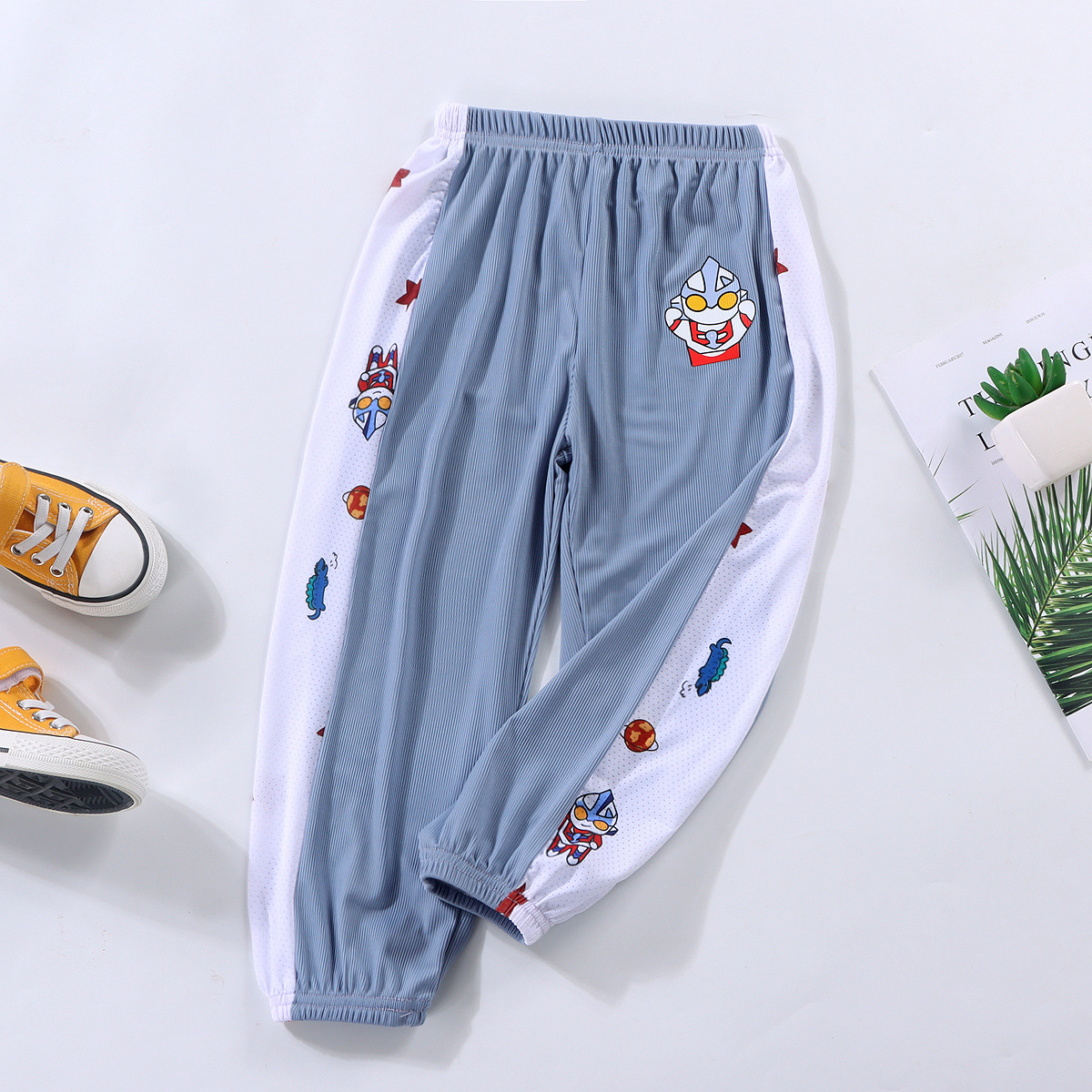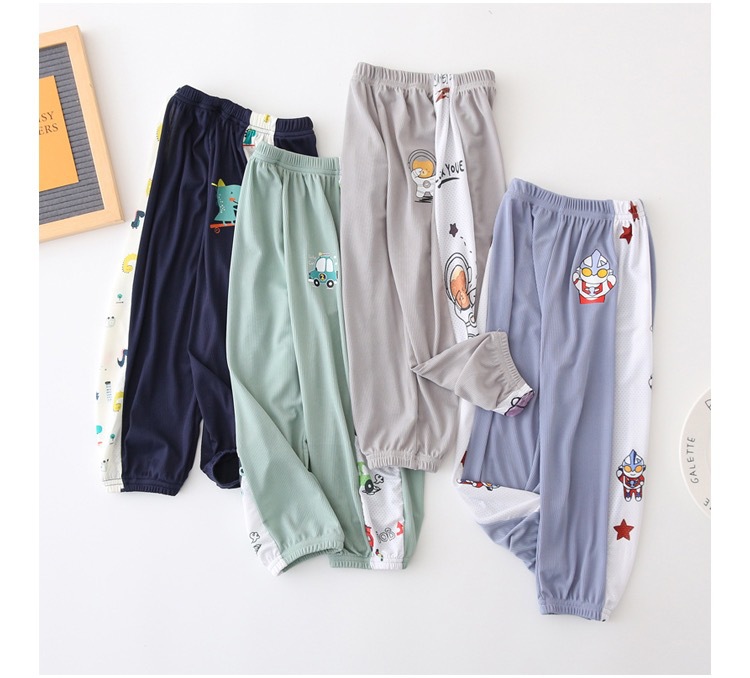 남자들의 여름 아이스 실크 안티 모기 바지 얇은 아기 바지 서양식 파자마 바지 만화 스포츠 바지 키즈 블루머스 트렌디