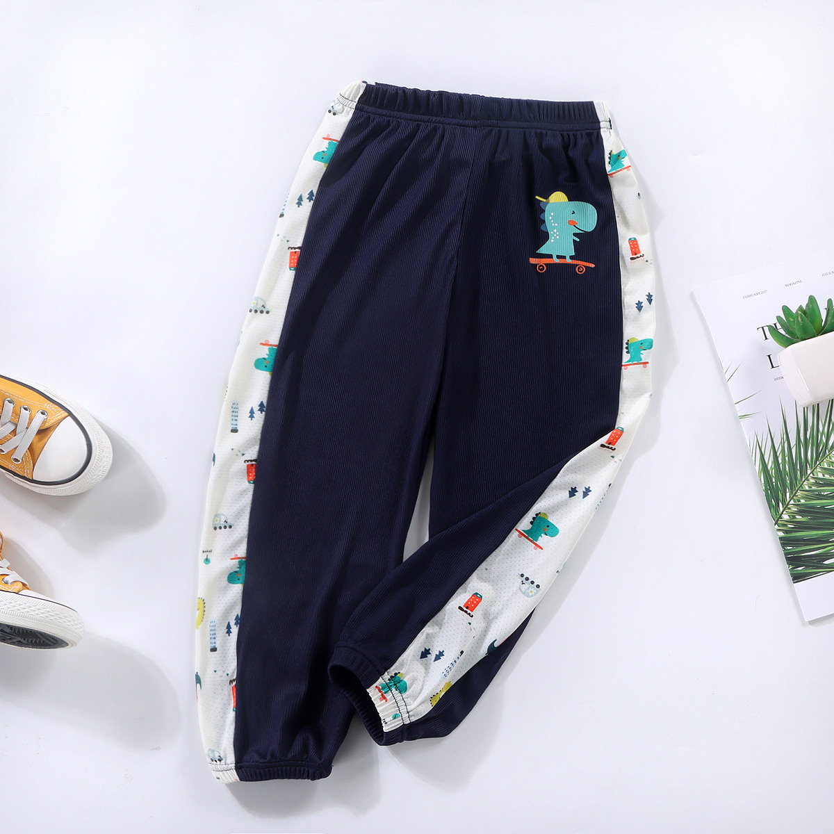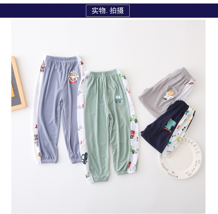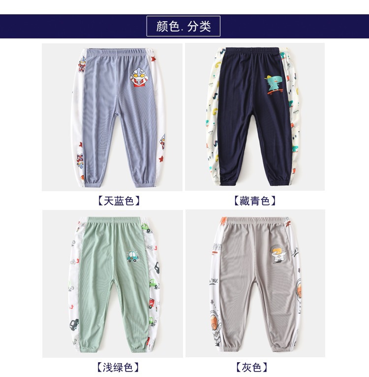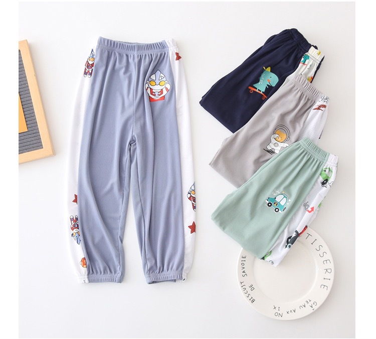 남자들의 여름 아이스 실크 안티 모기 바지 얇은 아기 바지 서양식 파자마 바지 만화 스포츠 바지 키즈 블루머스 트렌디스토어 가기