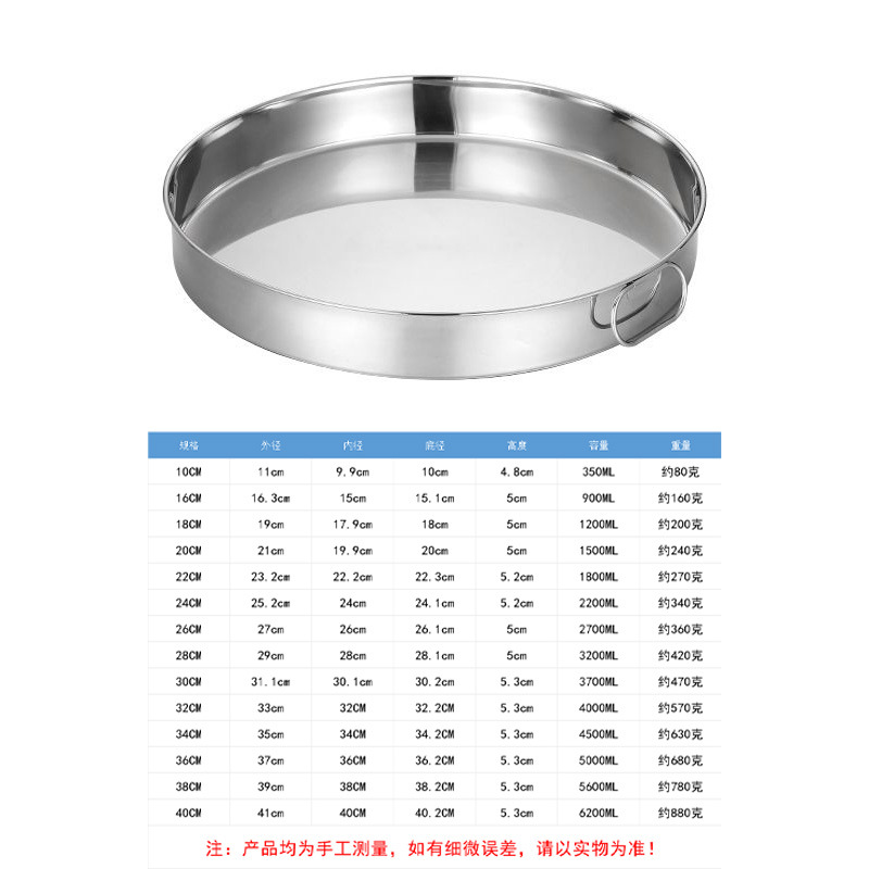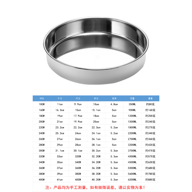스테인레스 스틸 콜드 스킨 플레이트 콜드 파이 루오 플랫 바닥 디스크 케이크 플레이트 요리 가정용 찐 쌀 그릇 파우더 플레이트 찐 쌀 플레이트스토어 가기